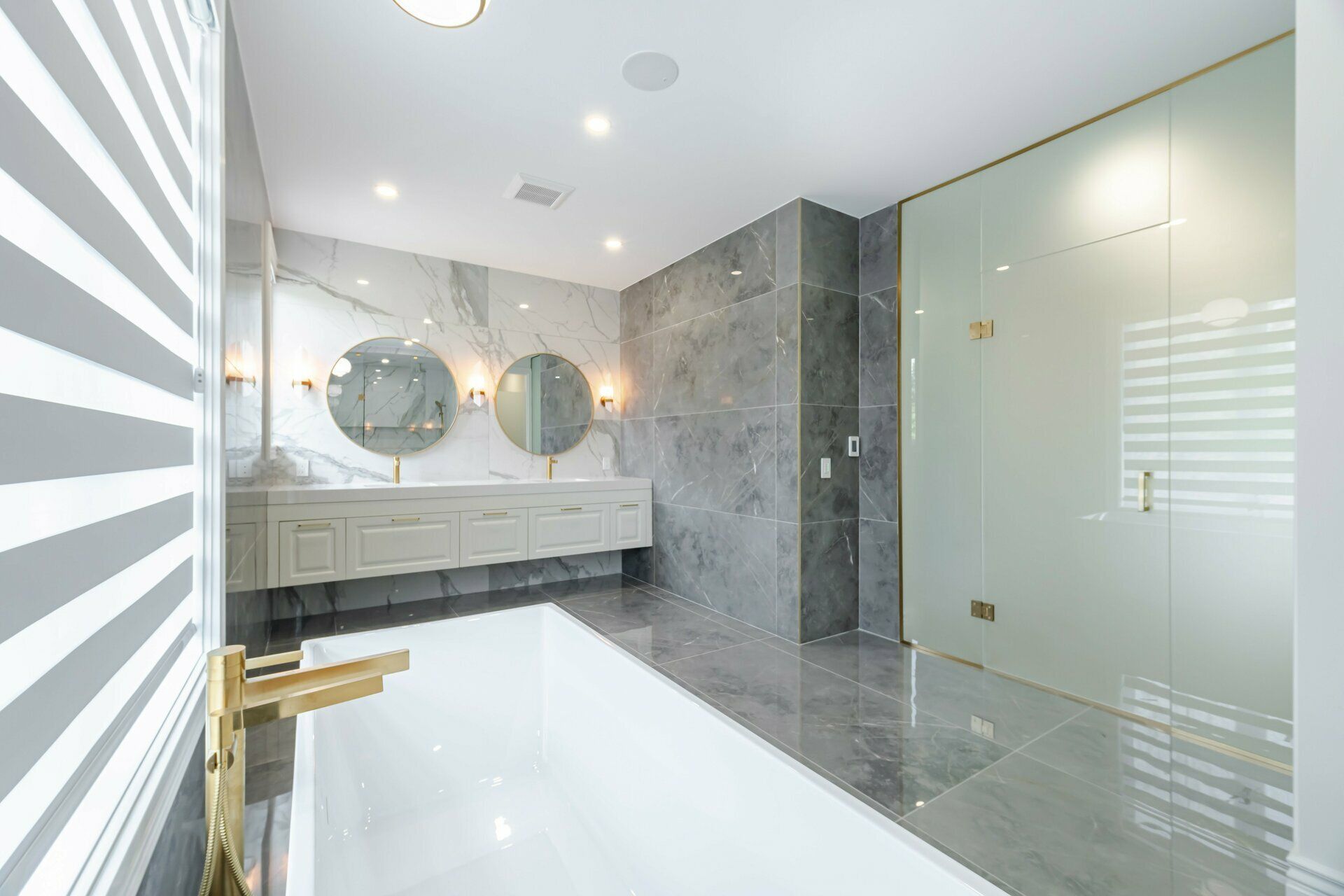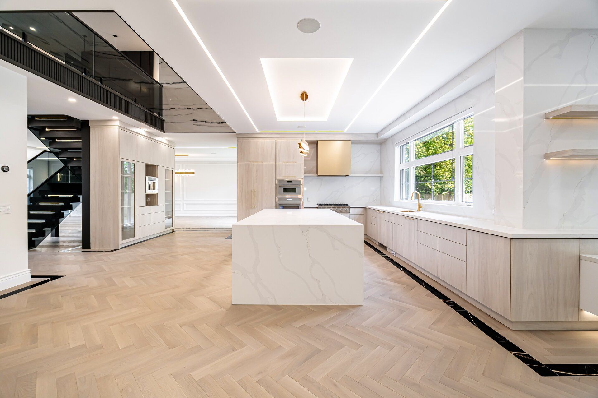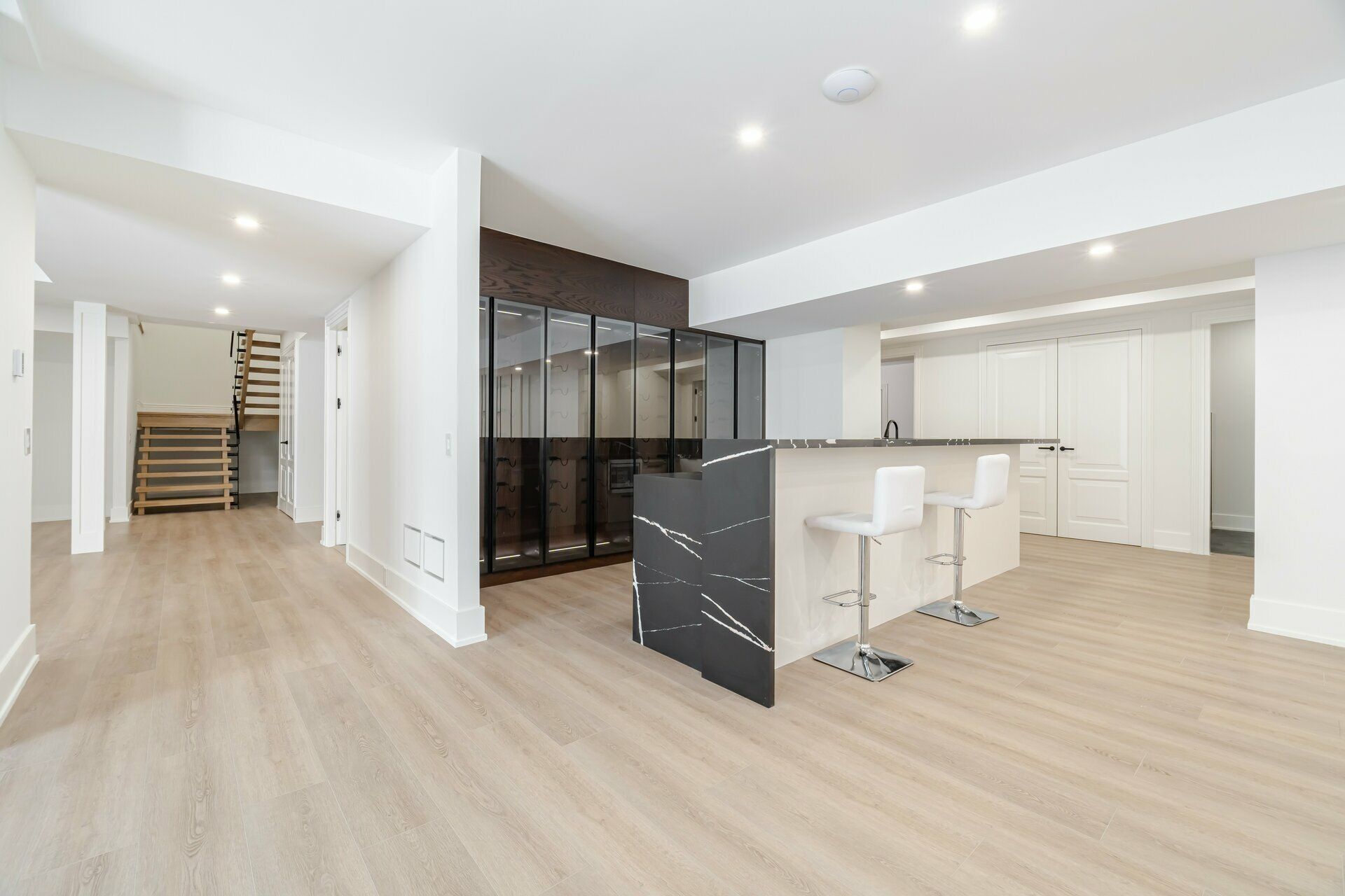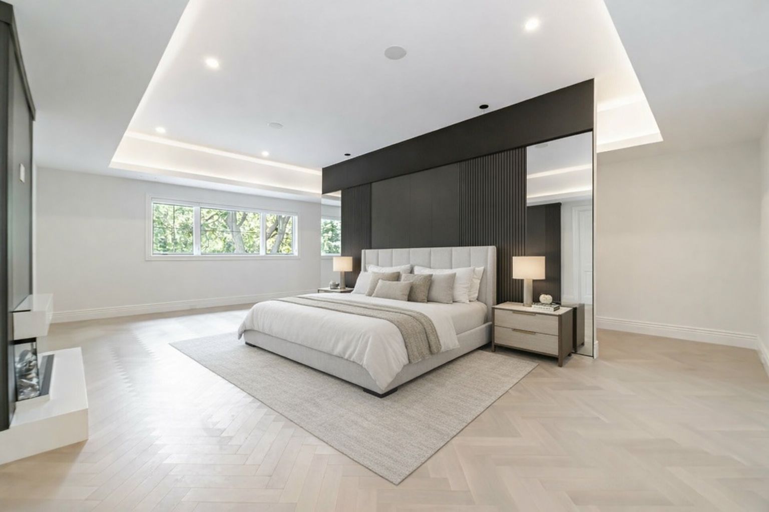 Set on a commanding 112. 5'x199. 5' lot just steps from the lake, this custom modern-traditional estate offers nearly 11,000sf of finished living space across three levels. A long private drive with parking for up to 12 cars and oversized 3-car garage create a striking arrival, complemented by stone and stucco architecture, soffit lighting, and professionally landscaped grounds. A dramatic double-height foyer introduces the home's scale, anchored by an open-riser staircase with smoked glass panels and integrated lighting. Principal rooms feature tile inlaid borders, herringbone engineered hardwood flooring, oversized windows, and sleek architectural lighting. The chef's kitchen is centred around a 10' quartz island with premium thermador appliances, bespoke cabinetry, and a dedicated coffee station, flowing seamlessly into the family room with a modern fireplace feature wall, built-in media cabinetry, and multiple walkouts to a covered portico designed for four-season entertaining. A private main-floor office with double french doors and its own exterior entry offers exceptional work-from-home flexibility. Upstairs, four bedroom suites include a luxurious primary retreat with dual walk-in closets and a spa-inspired ensuite featuring a steam shower, freestanding tub, wall-mounted fixtures, and heated floor. The walk-up lower level is designed for lifestyle living with radiant in-floor heating, theatre room, wet bar, glass-enclosed gym, guest suite, pet spa, and extensive storage. Outdoor living is elevated with a rectangular pool and water feature, large-format stone terraces, composite sun deck, covered outdoor fireplace wall with tv rough-in, built-in bbq station, and pool-house. Smart home technology, multi-zone audio, dual hvac systems, and security surveillance complete this exceptional lakeshore road offering near parks, trails, and bronte amenities. An outstanding blend of architectural presence, scale, and resort-style living! (some images have virtual staging)