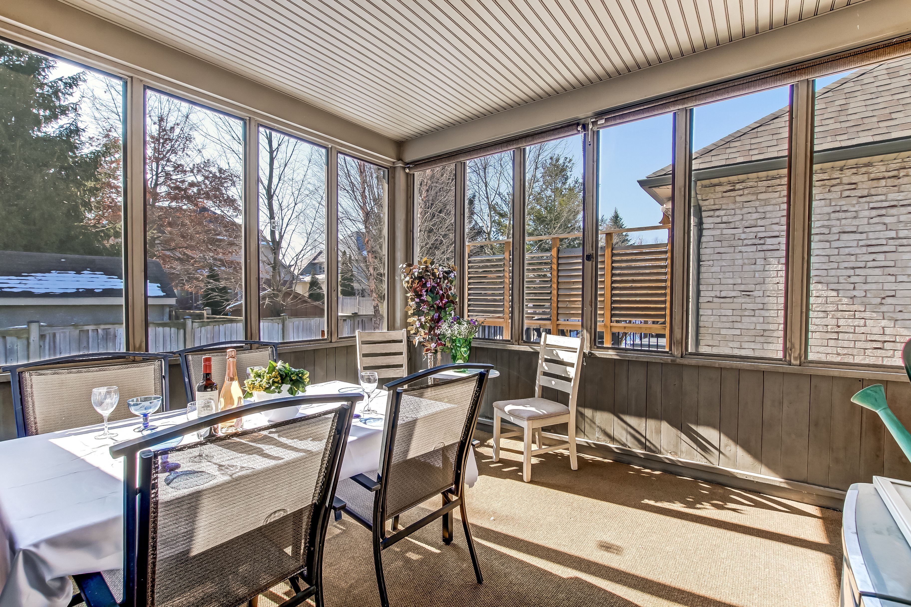 • Convenient sunroom for relaxed morning coffee or entertaining.