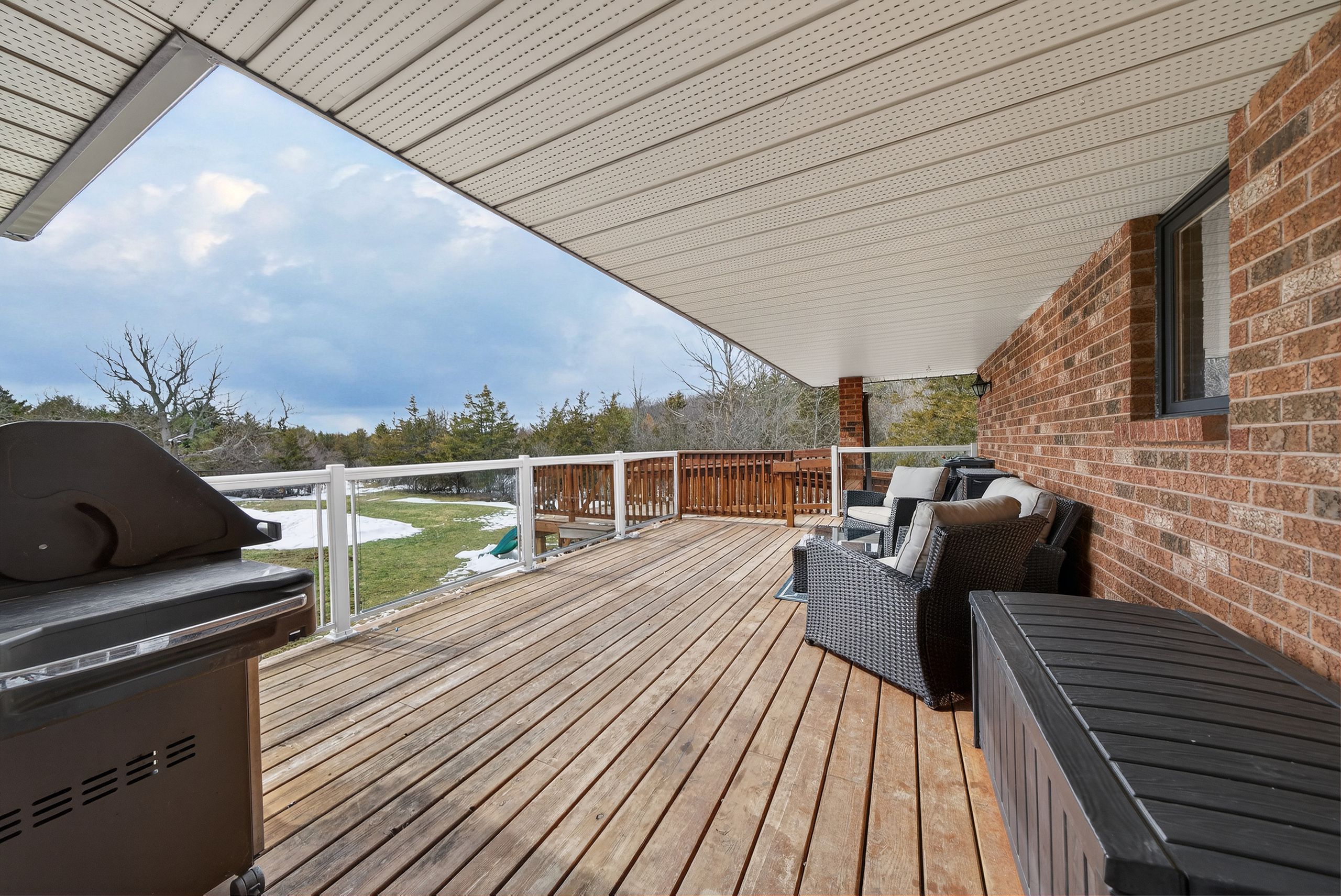 • Sunny eat-in kitchen with access to a large covered deck.
