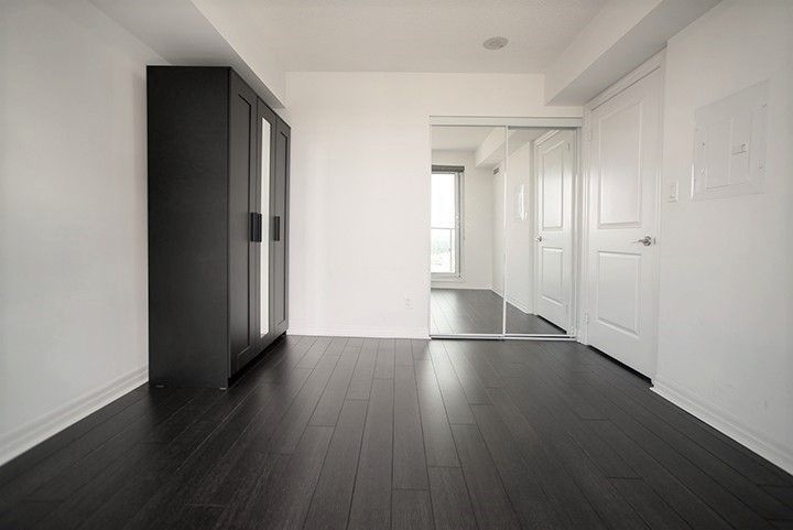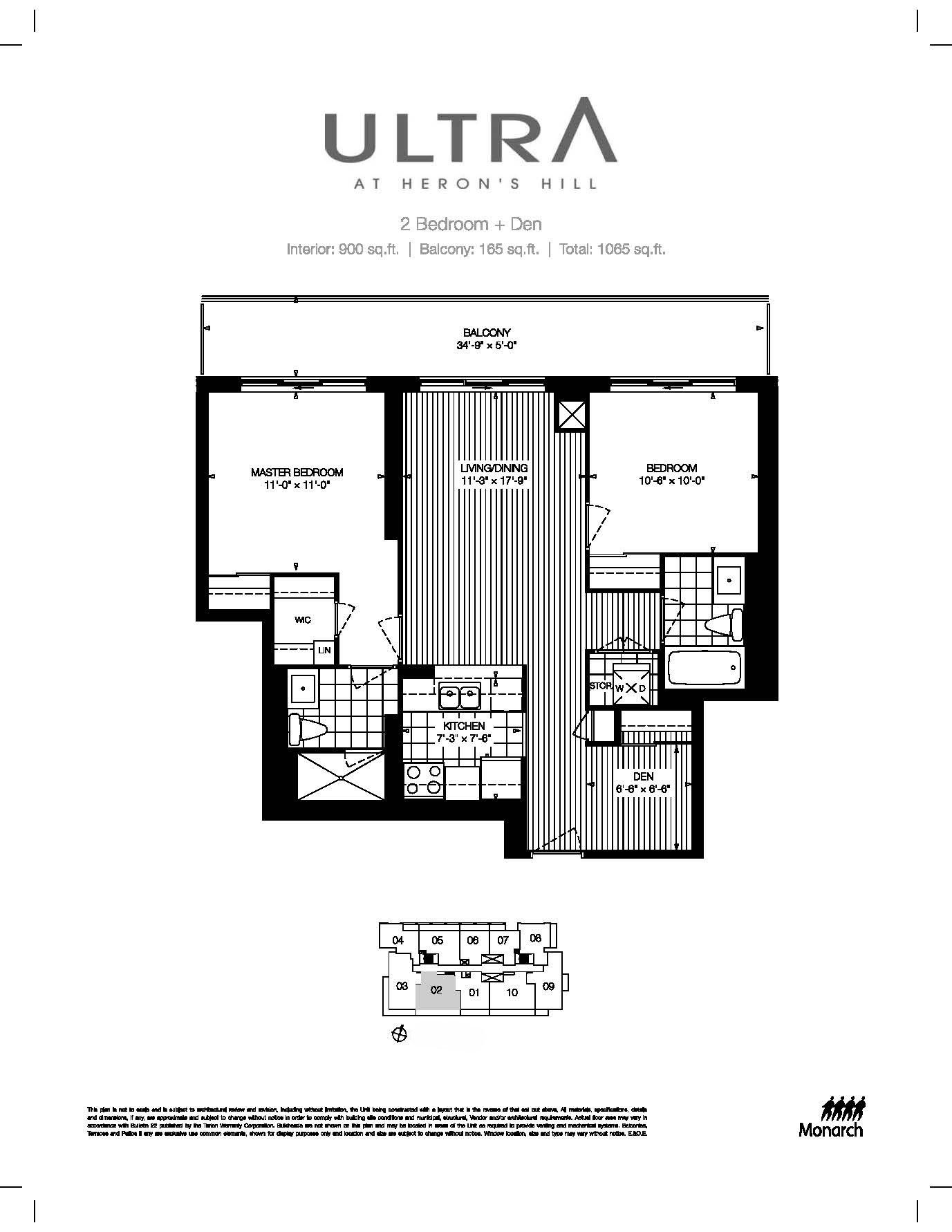 Luxury monarch ultra building, bright sunlit unit with huge balcony of unobstructed south view of downtown skyline & lake ontario from every room! 2 bedroom + den (900 sf) w/2 baths plus large balcony (165 sf). Laminate flooring throughout. Floor-ceiling windows. Modern kitchen with granite countertops & backsplash. Great amenities such as gym, indoor pool, sauna, media room, theater room, large party room, guest suites. 24 hrs concierge. Lots of visitor parking spots. Steps to fairview mall / don mills station, mall, library & grocery. Easy access to 404/401. With 1 parking and 1 locker underground.