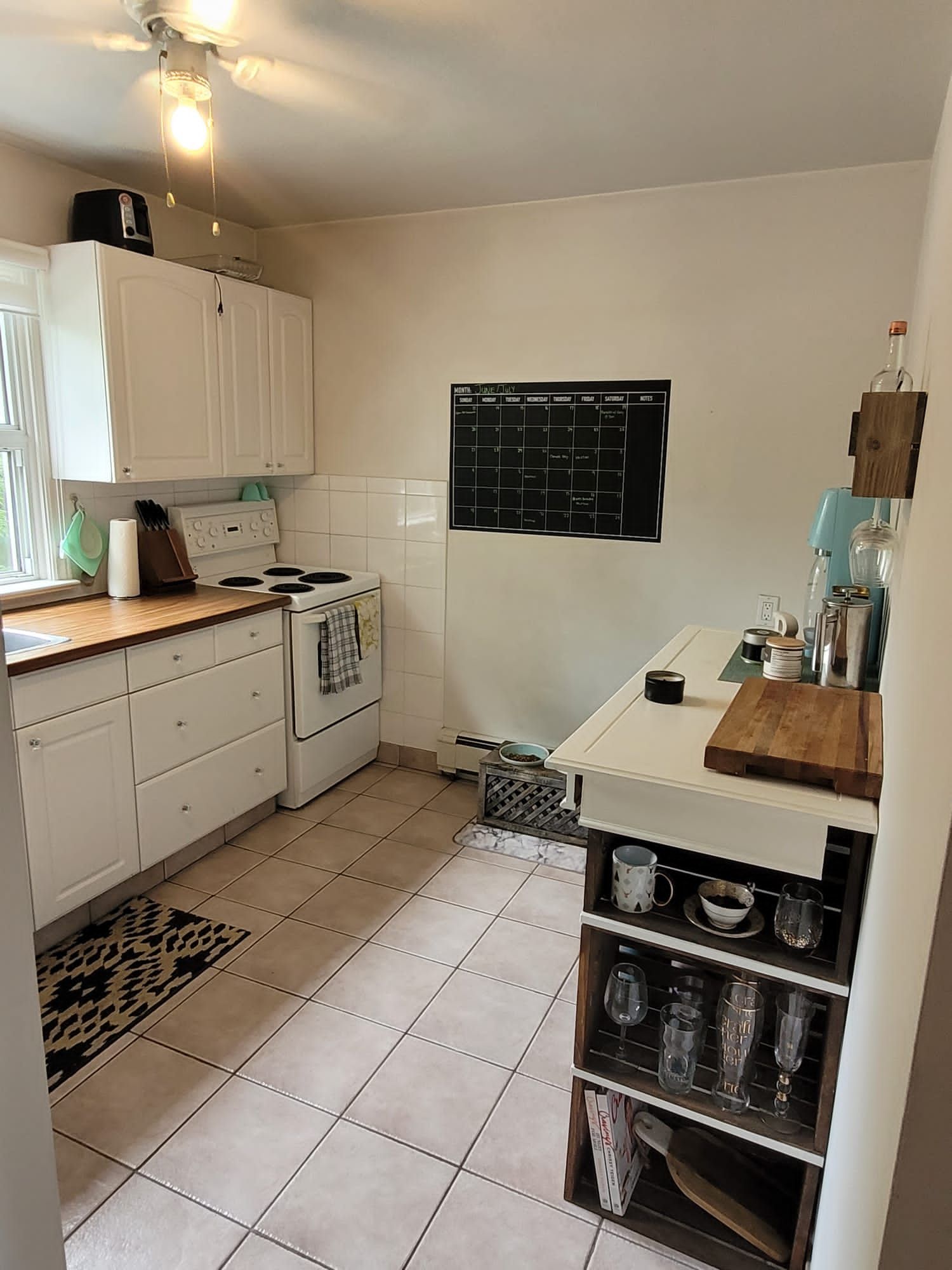 • Well-appointed kitchen with tiled surfaces and no carpet throughout.
