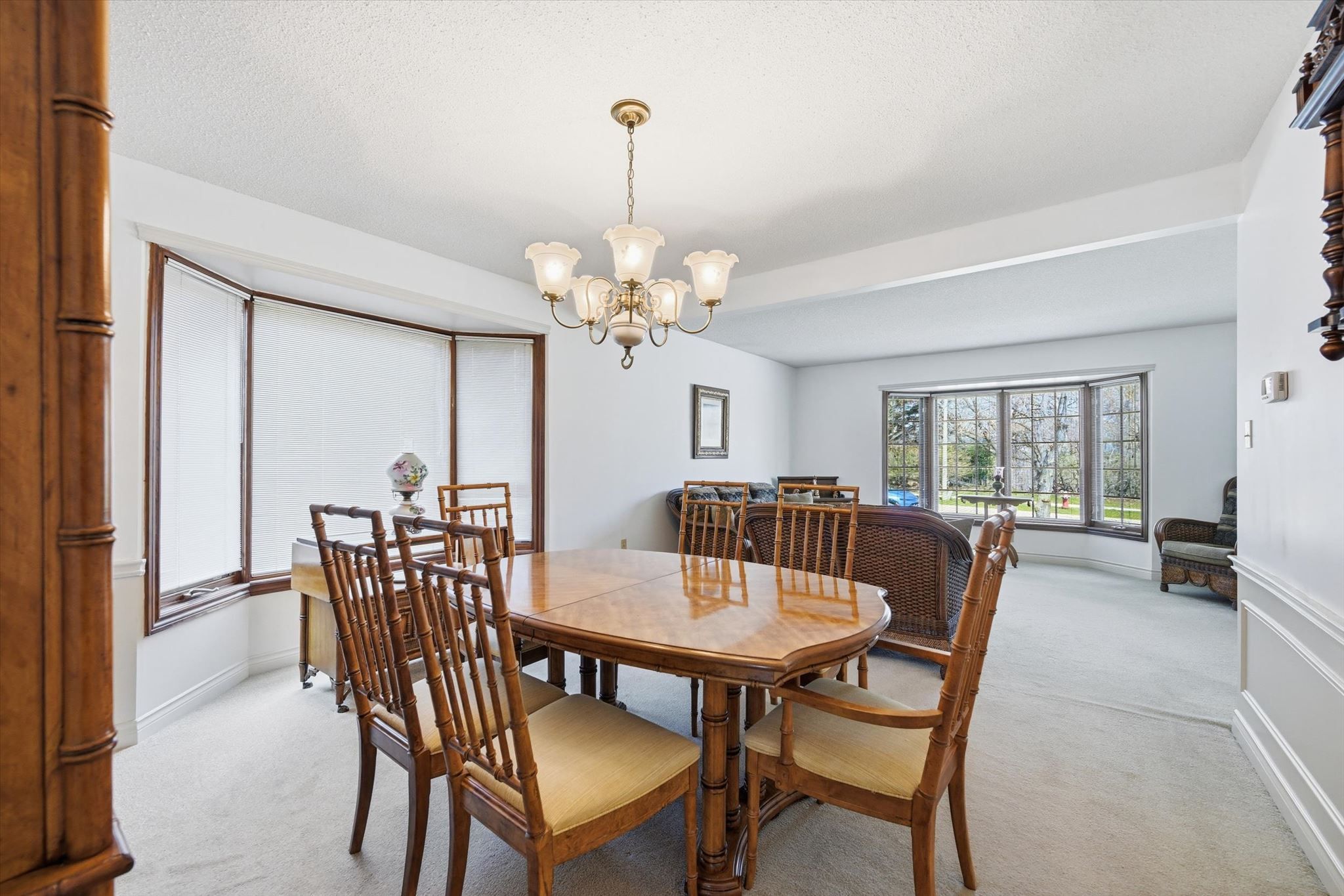 Nestled in the highly sought-after brant hills community, this only one-owner home offers exceptional space and a picturesque 63' x 103' lot with a treed view across the street, and a fully finished walkout basement! Step through the welcoming front entrance, which features sidelights, into a bright foyer with a skylight and direct garage access. The heart of the home features double french doors leading to a cozy family room, highlighted by a reclaimed brick wood-burning fireplace and a beamed ceiling. This space flows into the eat-in kitchen, which has a sliding door walk-out to a balcony/deck overlooking the backyard and garden. Two main floor bedrooms and bathrooms, including a primary suite complete with a 4-piece ensuite a jetted soaker tub and separate shower. The finished walkout basement adds incredible versatility, offering a third bedroom and full bathroom, plus a large open rec room equipped with built-ins, a wet bar with seating, and a double garden door leading directly to the backyard and patio-ideal for entertaining. Additional highlights include a double-wide driveway, a two-car garage with an automatic door opener, interior entry, and a side door, along with central vacuum, main floor laundry, bay windows, and wainscoting. Major updates providing peace of mind include: roof (2024), furnace & a/c (2019), doors and windows (approx. 4+ years), and an owned hot water tank (2019). Enjoy an unbeatable location: walk to brant hills community centre, parks, schools, and bike paths, with easy access to everyday amenities and a nearby golf course. A fantastic home that combines space, functionality, and a standout walkout lower level... Perfect for growing families or multi-generational living.