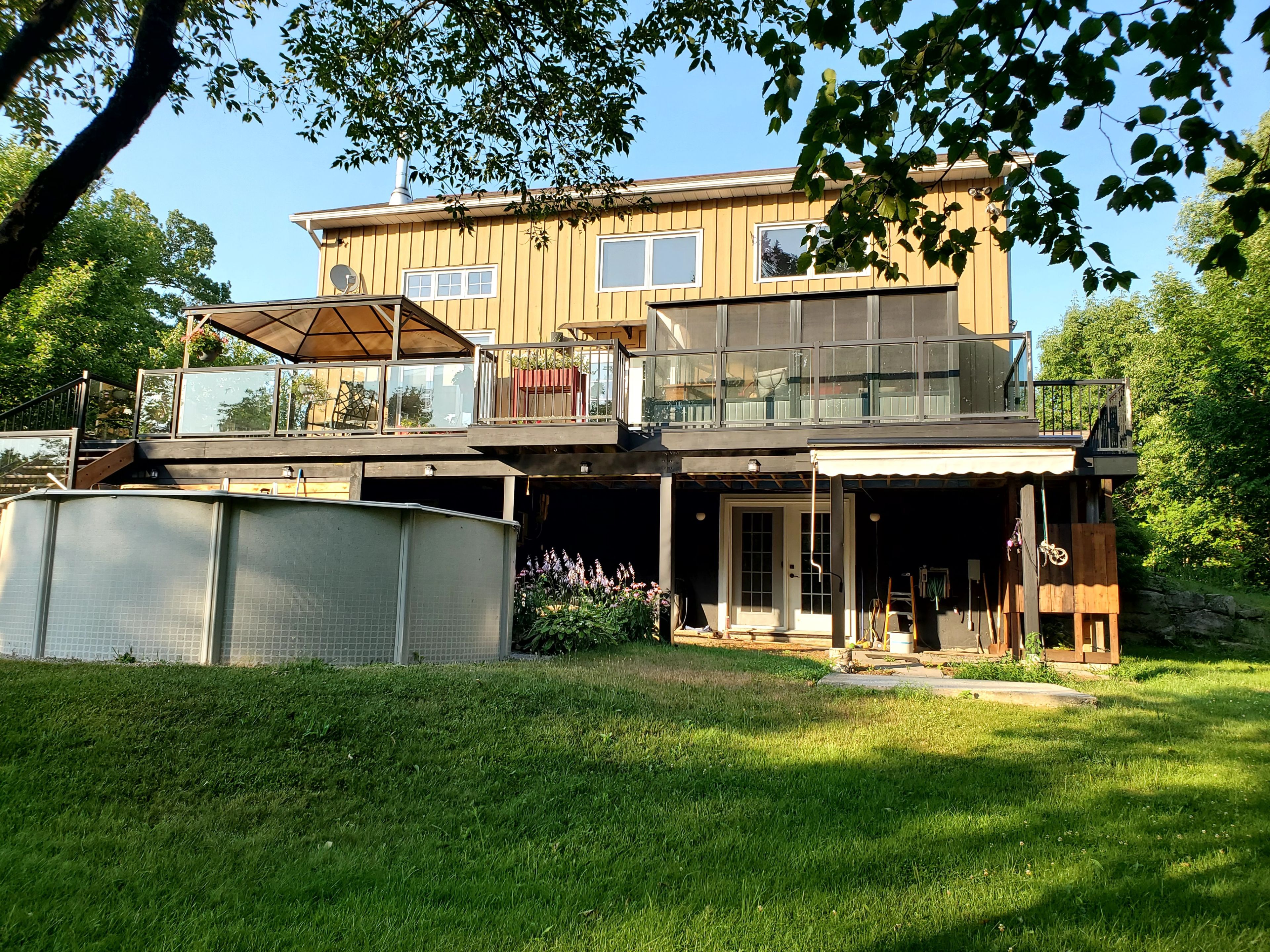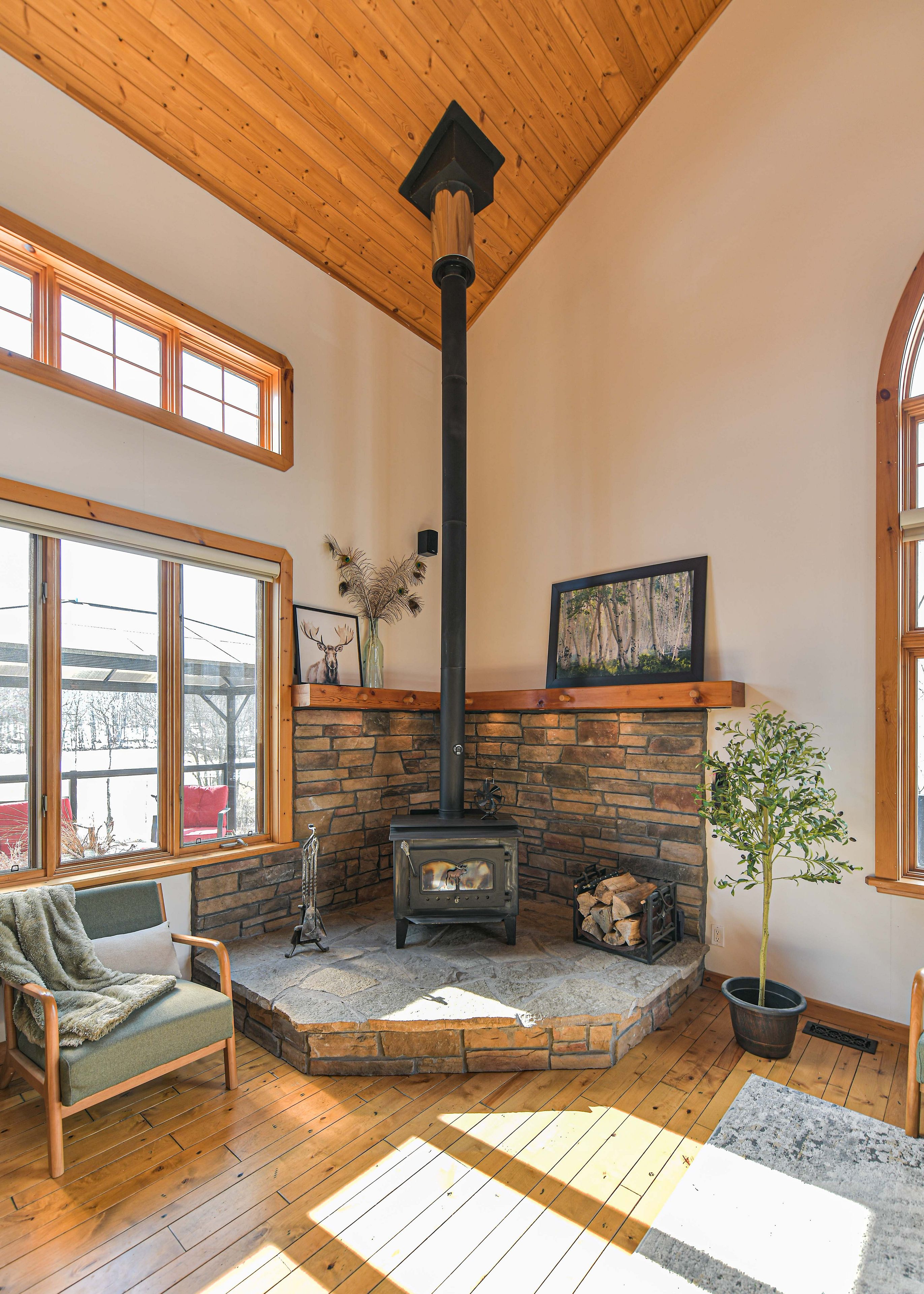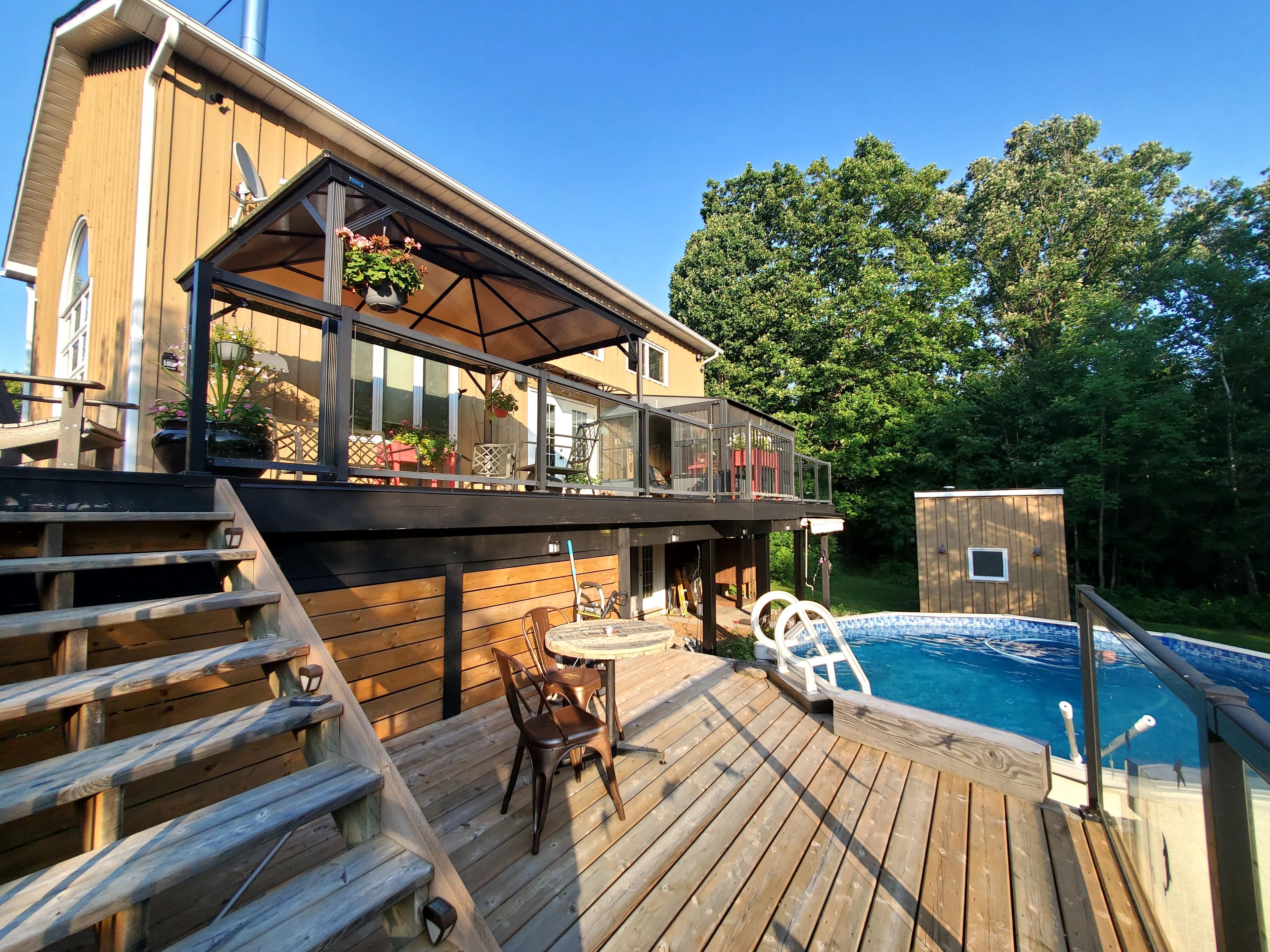 Welcome to 2018 uhthoff line in beautiful severn, ontario-where privacy, comfort, and lifestyle come together. This custom-built bungaloft, constructed in 2009, offers over 2,900 sq. Ft. Of thoughtfully designed living space with 3 bedrooms and 3 bathrooms, showcasing true pride of ownership throughout. The main living area is highlighted by soaring cathedral ceilings and an inviting open-concept layout that seamlessly connects the living room, kitchen, and dining space-perfect for both everyday living and entertaining. The kitchen features stainless steel appliances and is designed to inspire any home chef. Retreat to the spacious lofted primary suite, complete with a luxurious 5-piece ensuite and an expansive walk-in closet, creating a private and relaxing escape. This home offers excellent indoor-outdoor flow with two walkouts-one from the kitchen leading to a composite deck, and another from the lower level to the backyard. Two wood stoves add warmth and charm, enhancing the home's cozy atmosphere. Step outside and enjoy your own private oasis. The 1-acre property is surrounded by approximately 200 acres of farmland and forest, offering peace and seclusion. Outdoor features include a 16' x 16' above-ground pool, sauna, outdoor shower, and two fire pits-ideal for entertaining or relaxing summer nights. Additional highlights include a heated attached 2-car garage with a wood stove and a bonus shed-style room, perfect for a workshop or extra storage. The home is located on a quiet, paved dead-end road, offering minimal traffic and maximum tranquility. Recent upgrades include central air conditioning (2021), an owned hot water tank (2024), propane bbq quick-connects, and an rv plug installed at the side of the garage. Don't miss your opportunity to own this exceptional property and experience country living at its finest.