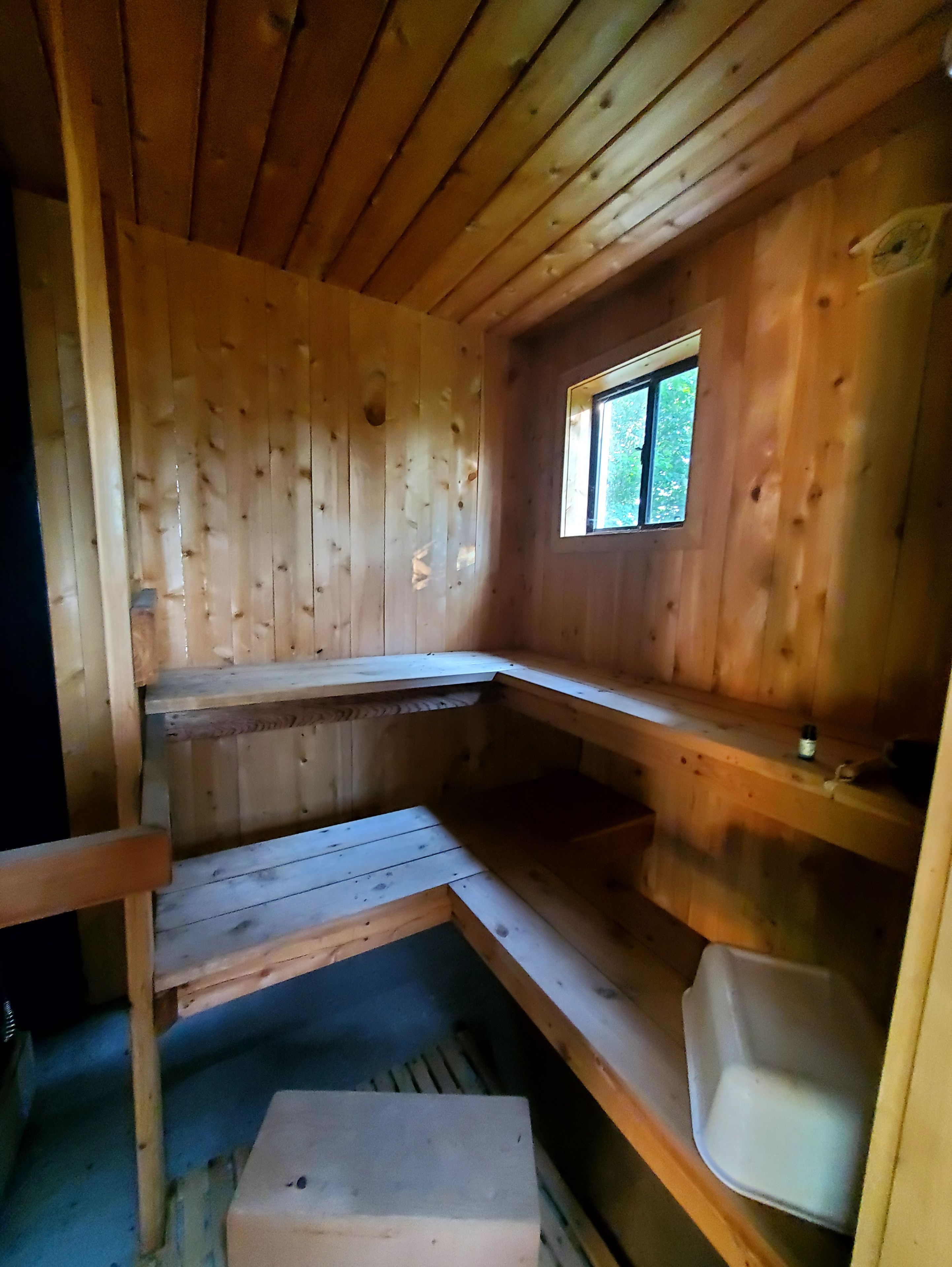 • Outdoor amenities include a pool, sauna, and two fire pits.