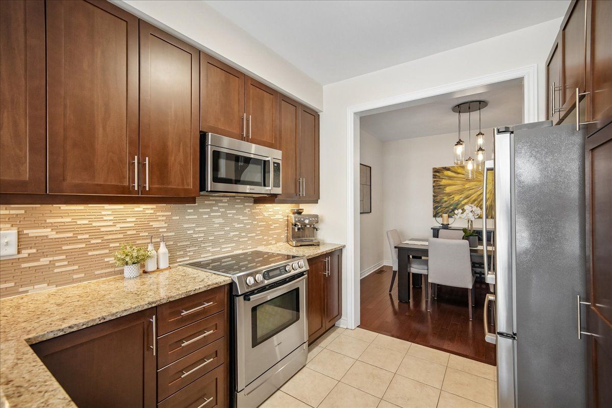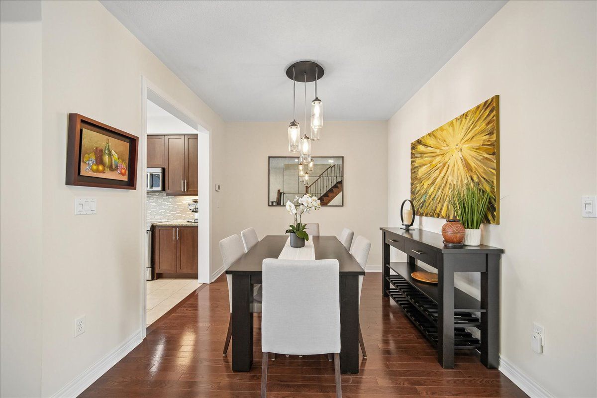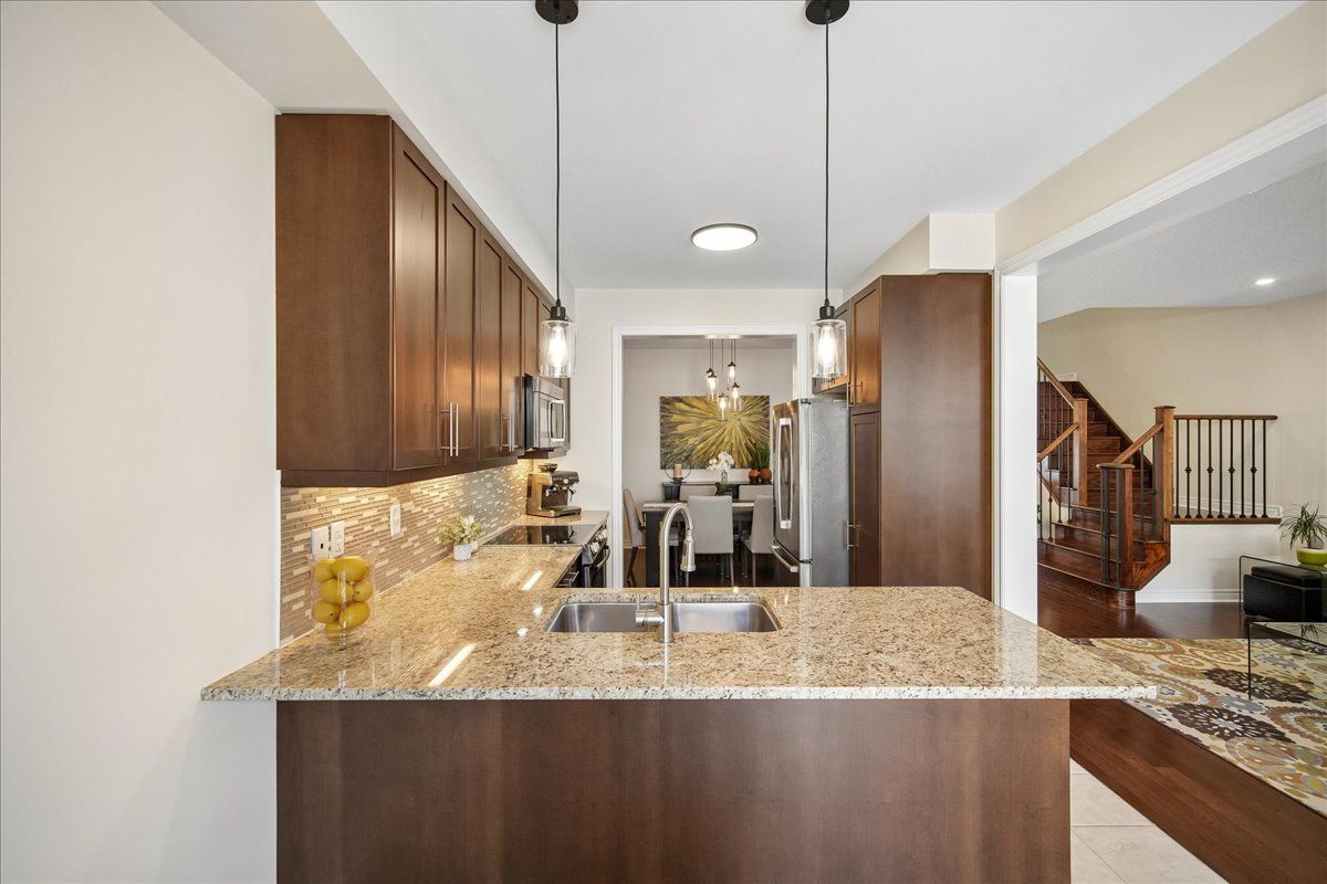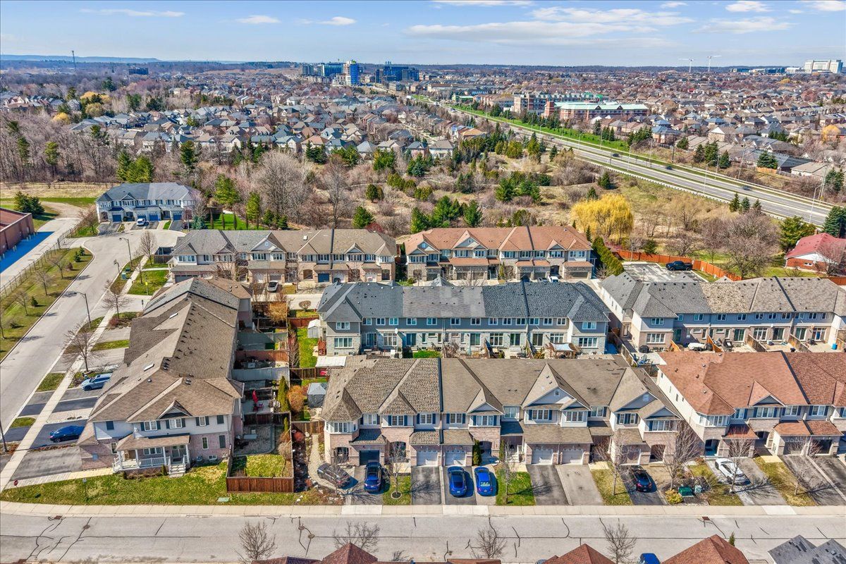 Welcome to this executive townhome in oakville's highly sought-after bronte creek community, tucked away on a quiet, family-friendly street and surrounded by scenic trails, parks, and woodlands, all within walking distance to bronte provincial park. This beautifully maintained 2-storey home offers a bright, open concept layout with hardwood flooring and pot lights throughout the main living areas. A formal dining room connects seamlessly to the well-appointed kitchen, which opens to both the dining area and the sun-filled family room, creating an ideal space for everyday living and entertaining. The kitchen features stainless steel appliances, granite counters, breakfast bar, backsplash, and a walk-out to a fully fenced yard with a stone patio. The main floor is complemented by an updated powder room and elegant wood staircase with wrought iron spindles. Upstairs, you'll find 4 spacious bedrooms, including a primary retreat with walk-in closet and a ensuite featuring a glass shower and soaker tub, along with a 4-piece main bath and convenient upper-level laundry. The professionally finished, carpet-free lower level adds valuable living space with a large rec room, gas fireplace, pot lights, additional bedroom, versatile office or gym, and a 3-piece bath. Complete with a single car garage with inside entry, this home is ideally located close to schools, shopping, and major highways.