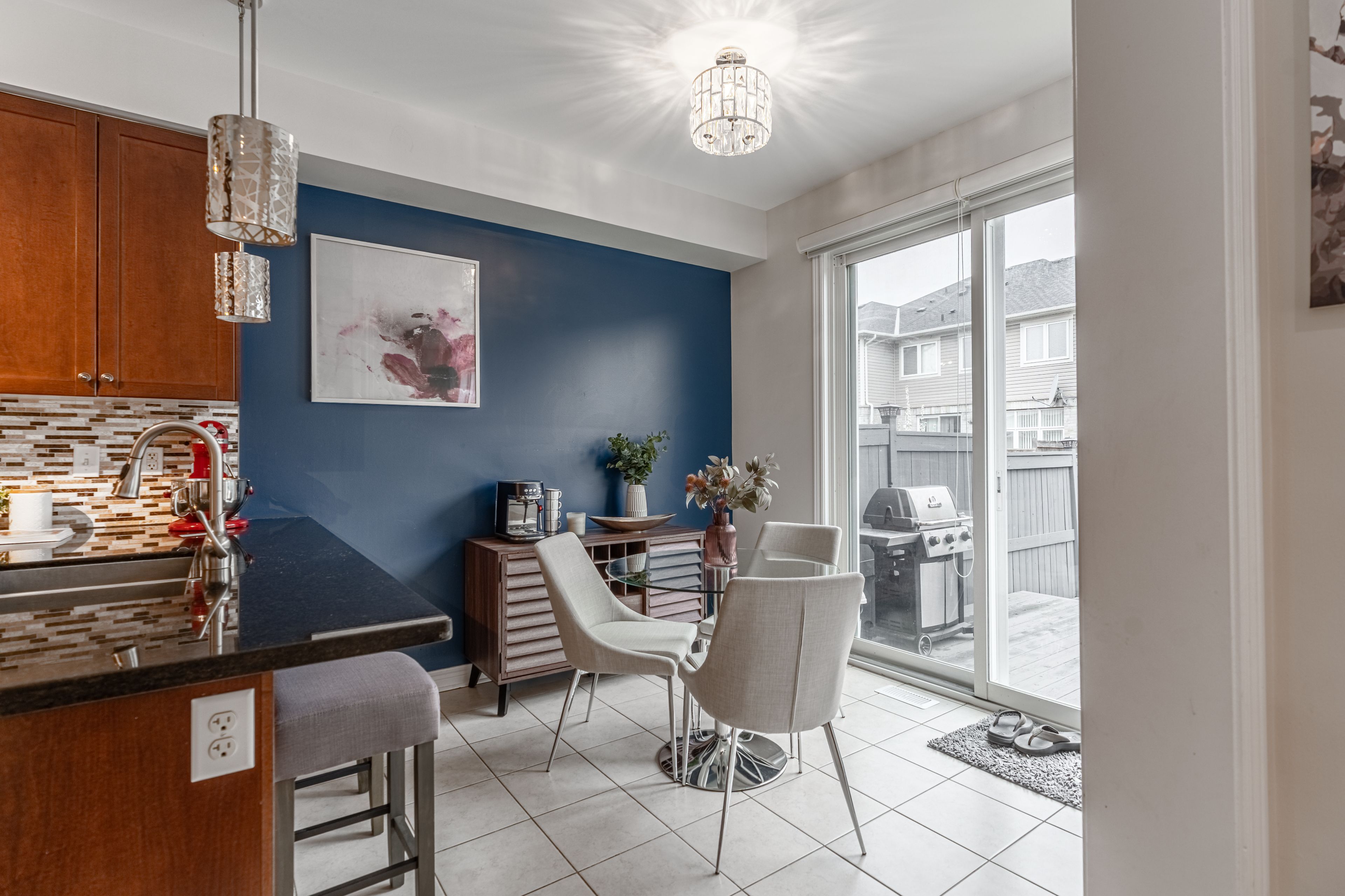 Welcome to this executive townhome in oakville's highly sought-after bronte creek community, ideally located away from traffic, on a family-friendly street and surrounded by scenic trails, parks, and woodlands, all within walking distance to bronte provincial park. Rarely offered 3parking spots, with one garage spot. This beautifully maintained 2-storey home offers a bright, open concept layout with hardwood flooring and pot lights throughout the main living areas. The kitchen features stainless steel appliances, granite counters, breakfast bar, backsplash, and a walk-out to a fully fenced yard with a deck and a stone patio, which is maintenance free. The living room is spacious and bright and ideal for entertaining. The dining room is conveniently located beside the kitchen and family room. All bedrooms are spacious and bright and have good size storage closets. The second floor has a conveniently located laundry room. The primary bedroom is a retreat with his and her closets and beautiful ensuite. One of the biggest master bedrooms you will find in a townhome. The fully furnished lower level offer a large great room with a natural gas fireplace and also an exercise room and a 4th bedroom area beside a full bathroom. There are storage areas also for you convenience. This home is ideally located close to schools, shopping, and major highways. Just move in and enjoy!