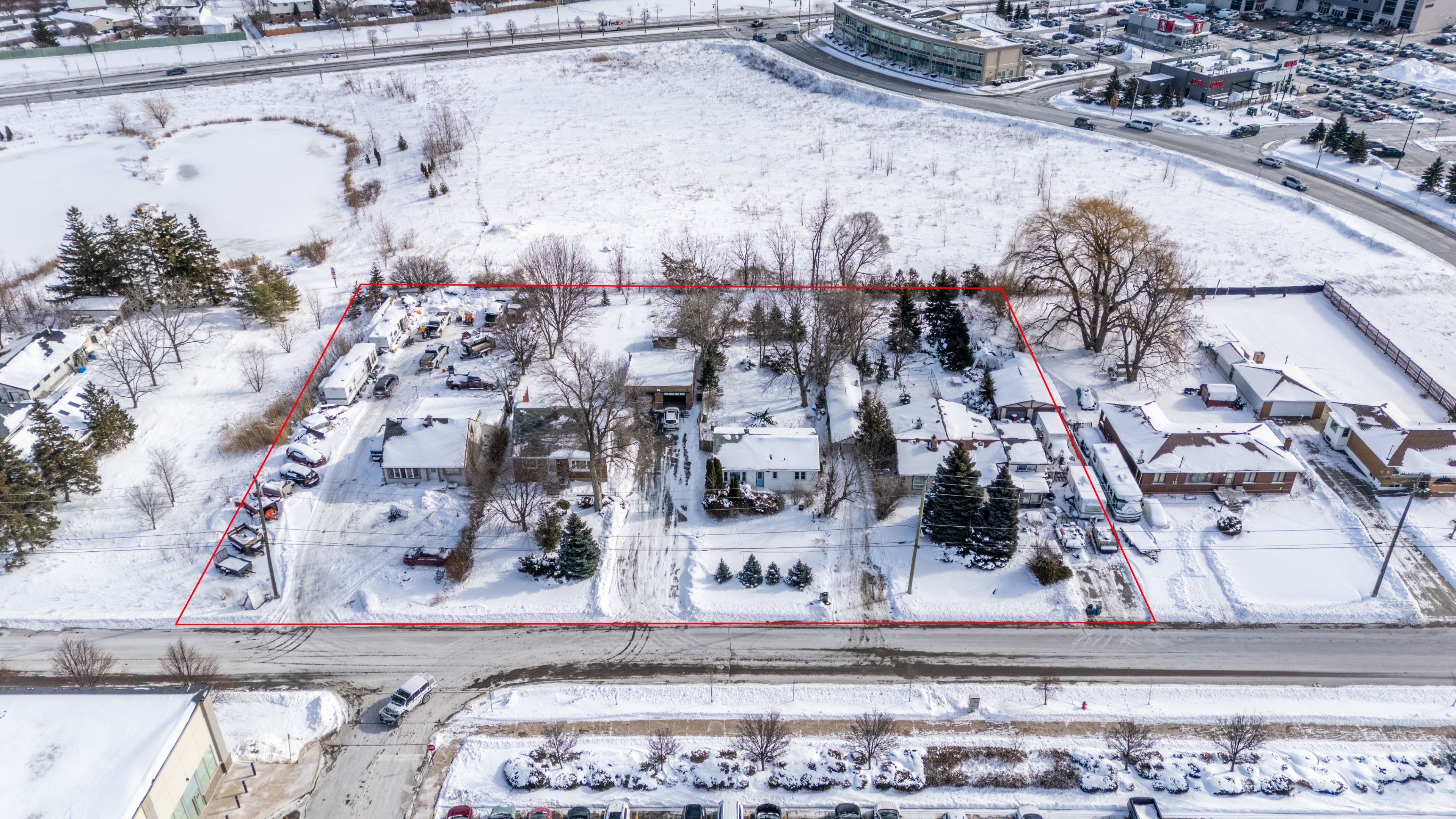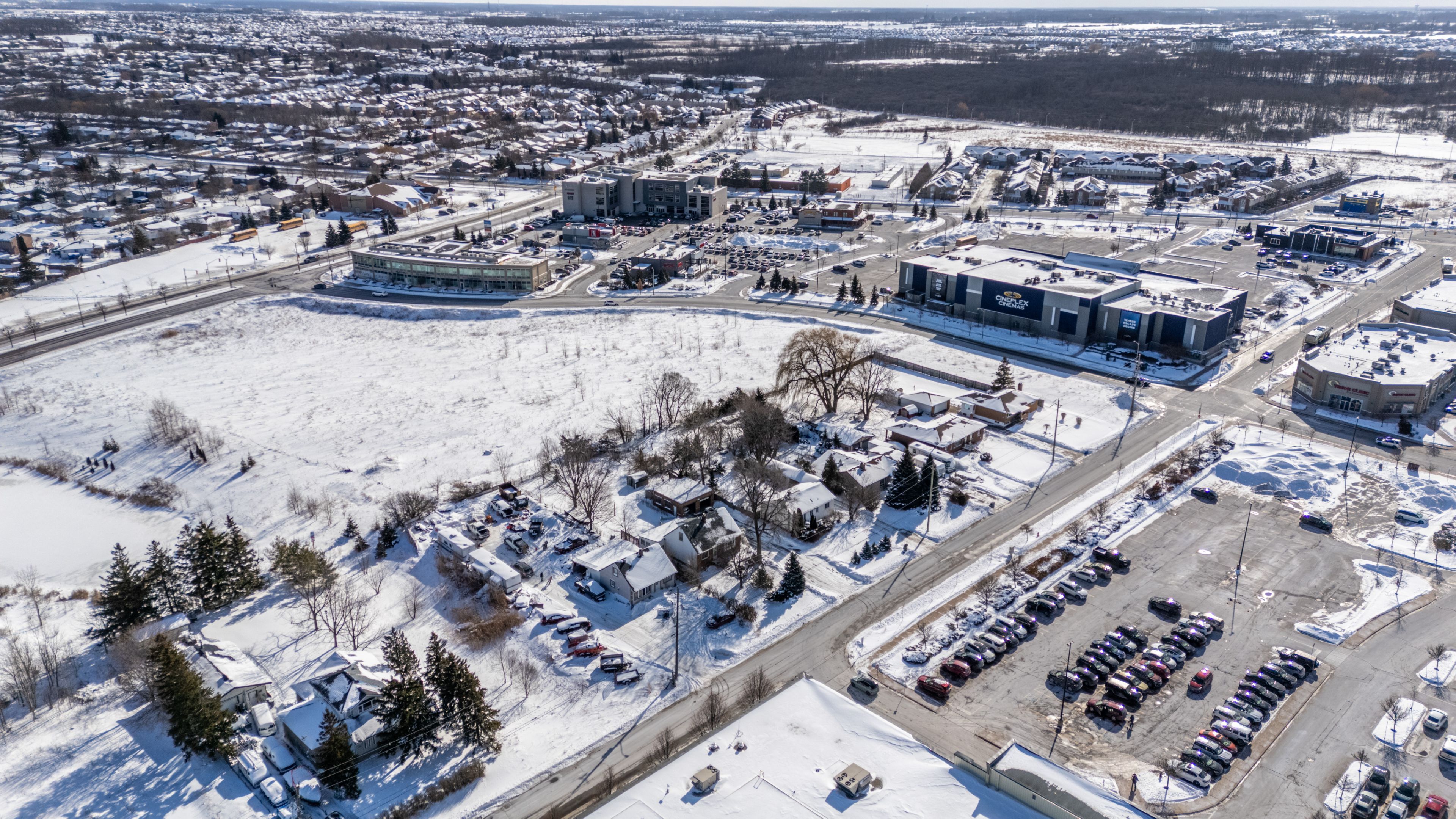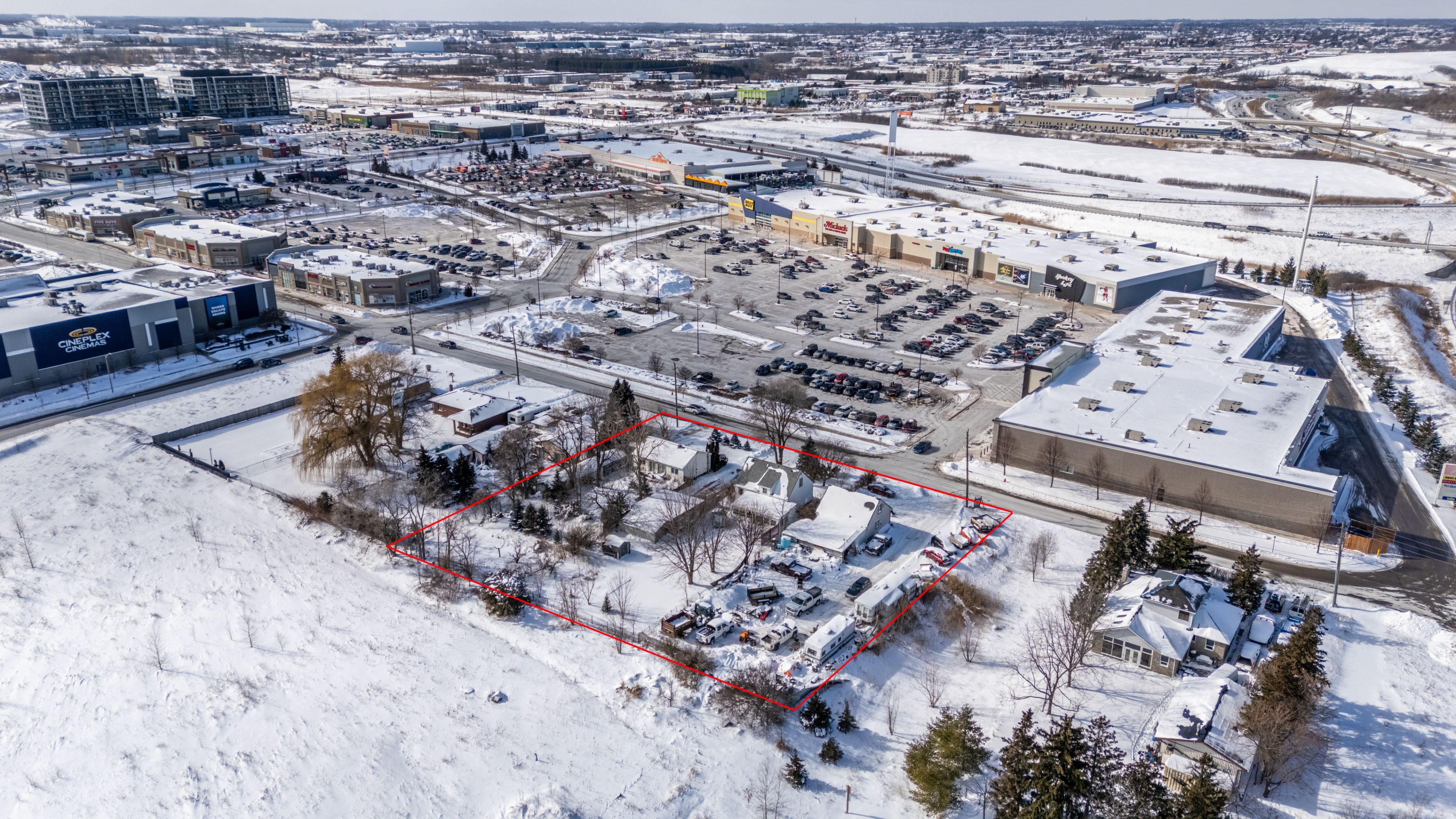 Exceptional development opportunity in a high-traffic, high-demand commercial corridor, strategically positioned directly across from cineplex and surrounded by established restaurants, cafés, and national retail. This prime parcel benefits from outstanding visibility, strong pedestrian activity, and a proven consumer base. The site currently features one commercial building and three residential dwellings, generating stable interim income to offset holding costs while development approvals and planning are advanced. Existing zoning supports two compelling development scenarios. The first contemplates a nine-storey mixed-use condominium with approximately 232 residential units and ground-floor commercial space. The second allows for two six-storey purpose-built rental buildings totalling 99 units, also with retail at grade and well positioned to leverage cmhc-backed rental financing programs. Both concepts align with the area's continued intensification, population growth, and sustained demand for mid-rise, transit-oriented residential living. With walkable amenities, strong demographics, and flexible mixed-use potential, this asset offers meaningful upside for developers and investors seeking either near-term execution or a strategic long-term hold in a thriving commercial node. Some photos are renderings.