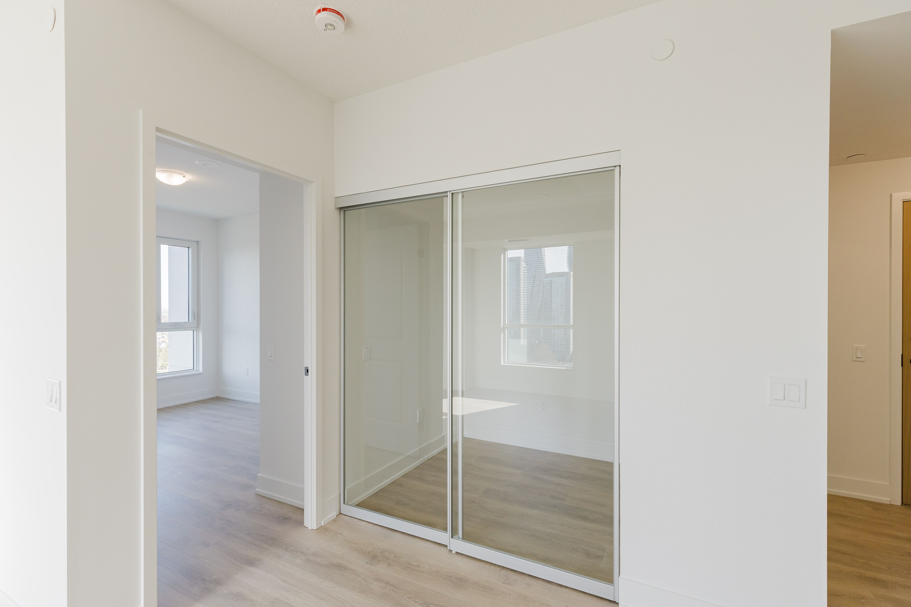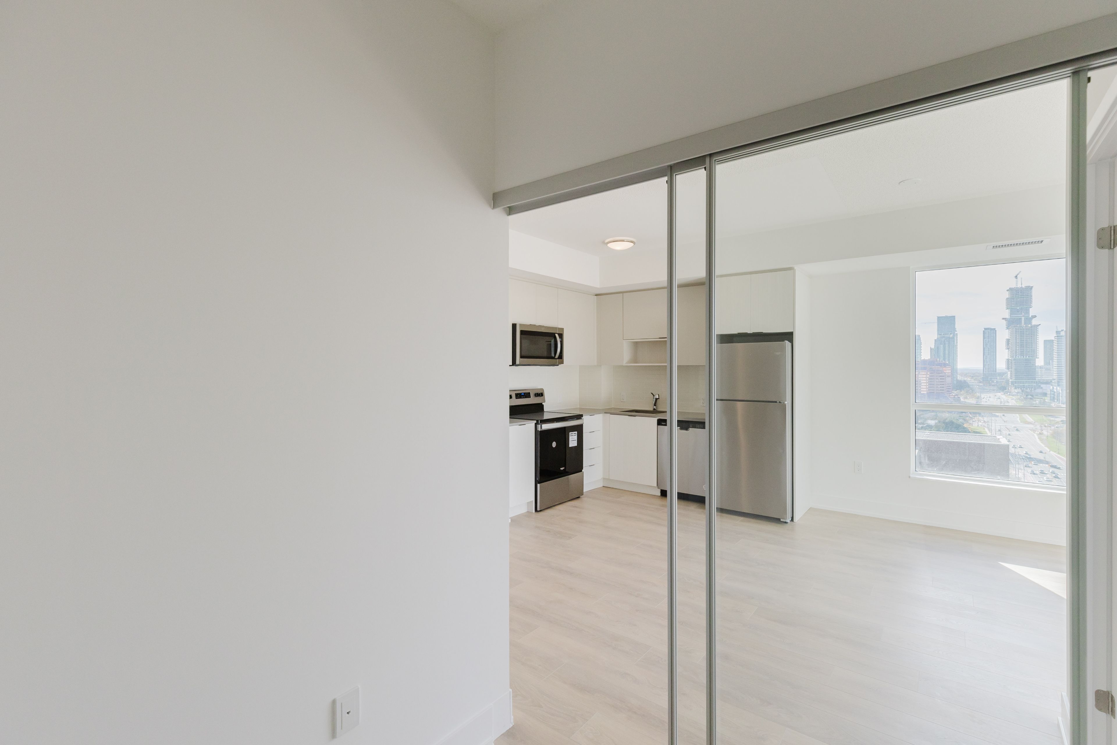 Welcome to keystone condos-an exceptional blend of luxury, convenience, and naturaltranquility. Tucked away in a peaceful enclave steps from mississauga's vibrant city centre,this prestigious kaneff building offers the best of both worlds. Nestled beside the serenecooksville creek trail and ravine, residents enjoy a quiet retreat while remaining moments fromsquare one, celebration square, top restaurants, public transit (including the future lrt), andmajor highways (403, 410, 407). This stunning brand-new 2-bedroom + den corner suite features nearly 900 sq. Ft. Ofthoughtfully designed living space. Bright and spacious, the unit is upgraded with gleamingvinyl flooring throughout. The versatile den, enclosed with sliding doors, easily serves as a home office. The modern kitchen includes stainless steel appliances, adding to the suite's contemporary appeal. Two full bathrooms complete this beautifully appointed home. Residents of keystone condos enjoy an impressive array of amenities, including a fully equipped gym, yoga studio, media room, party room, lounge, guest suites, bike storage, outdoor pool, expansive outdoor terrace, and 24/7 concierge service. Move in and experience luxurious condo living in one of mississauga!