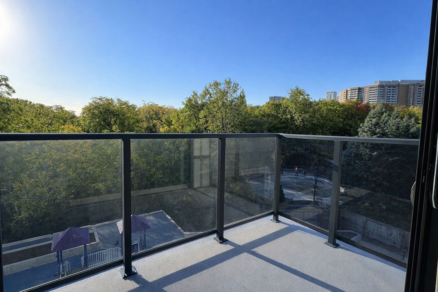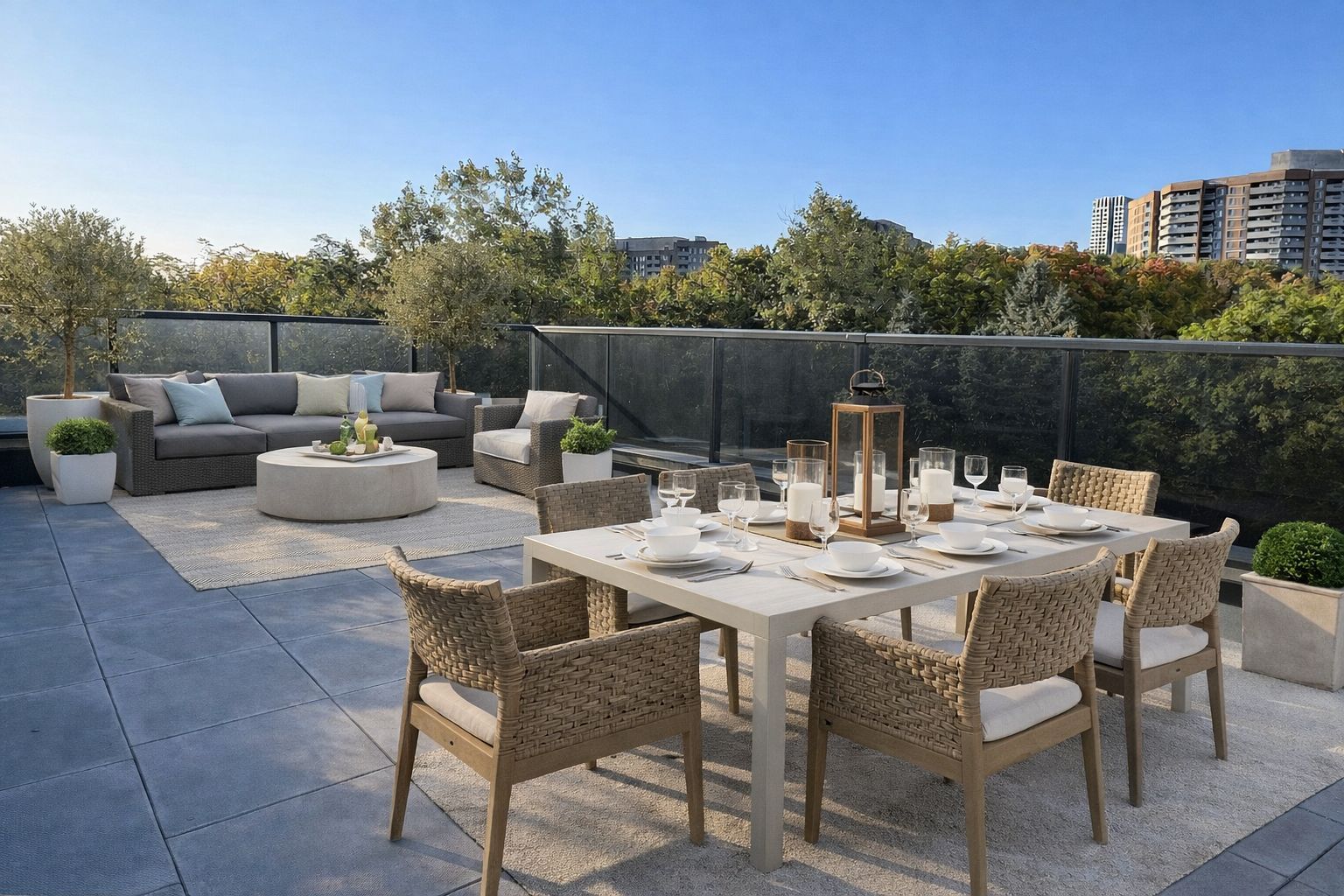 • Private 300 sq ft terrace with sunny south views for relaxation.