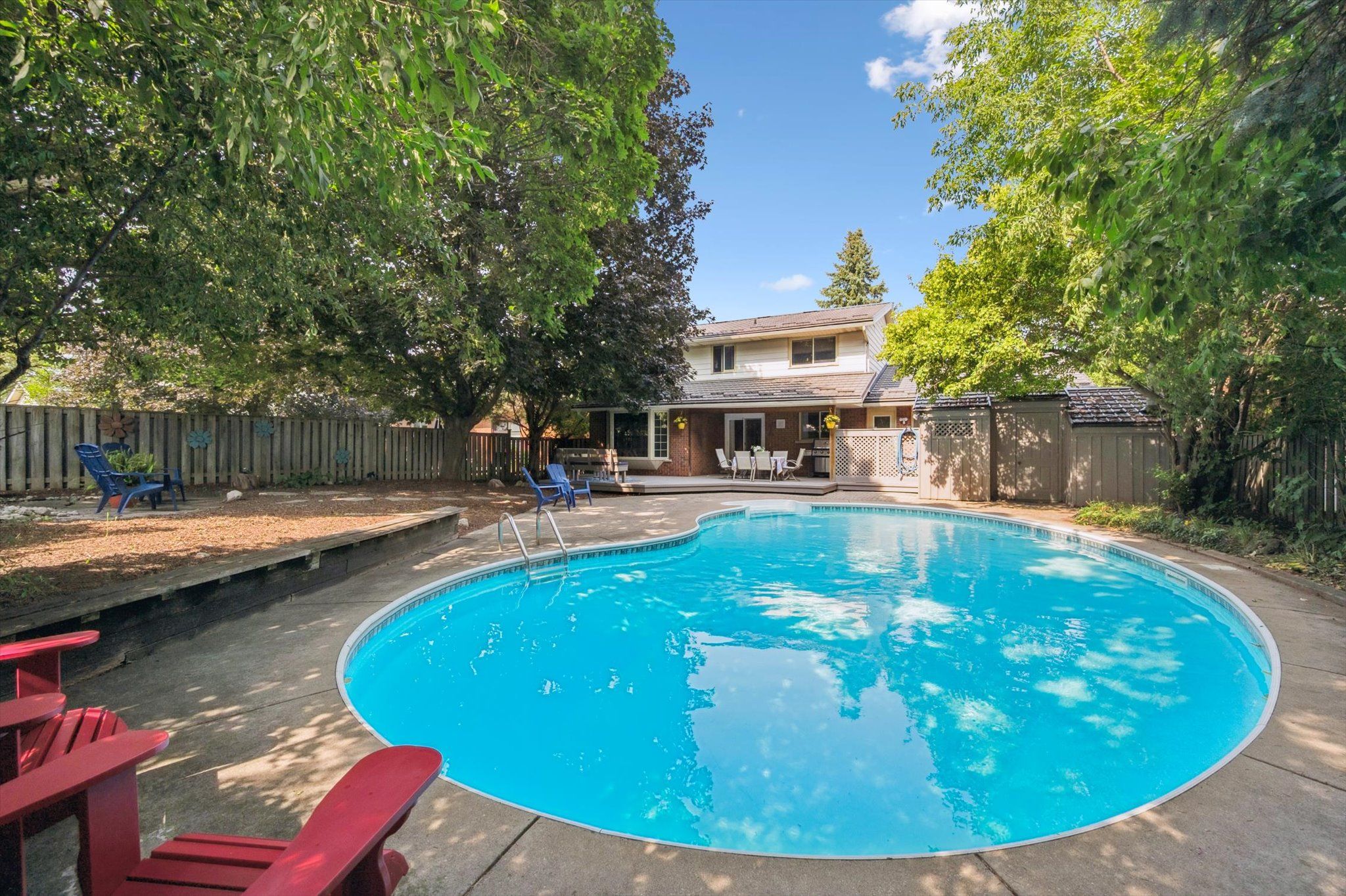 Welcome to this exceptional 4-bdrm, 4-bath home in the highly sought-after kortright east neighborhood, steps to mcalister park. Perfectly situated on a quiet street, this beautifully maintained residence offers the ideal blend of style and functionality. Step inside to discover spacious layout designed for both entertaining and relaxed living. The main floor features a generous family rm w gas fireplace, dining rm and living rm, complemented by large windows that fill the home with natural light. The well-appointed kitchen overlooks the private backyard oasis, making it easy to keep an eye on gatherings by the pool. Thoughtfully designed for busy households, the main floor also includes a convenient laundry room and powder room with direct access to the backyard-perfect for guests enjoying the pool, eliminating wet footprints through the house. Upstairs, you'll find four spacious bedrooms, including a primary retreat complete with a private ensuite bath. This serene space offers the perfect escape at the end of the day, with ample closet space and a 3 pc ensuite bathroom for comfort and privacy. The finished basement expands your living space with a cozy gas fireplace-ideal for movie nights or relaxing evenings with family and friends. For those who love to entertain, the dedicated wine cellar adds a touch of sophistication, providing the perfect environment to store and showcase your collection. After a long day, unwind in your very own sauna. Step outside to your private backyard sanctuary featuring inground pool, plenty of space for lounging, and room for summer barbecues and gatherings. Mature landscaping and metal roof enhances both privacy and charm, making this outdoor space truly special. Located close to schools, parks, shopping, and amenities, this home offers the best of kortright east living. With its premium features, functional layout, and unbeatable location, this is a rare opportunity to own a home that truly has it all.