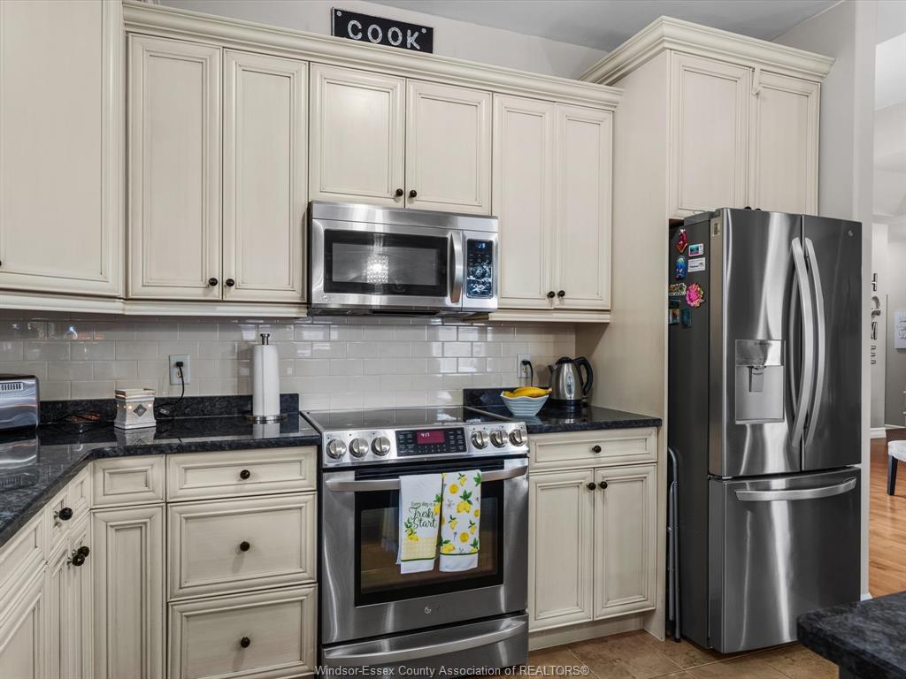 • Kitchen features granite countertops and ample cabinetry for cooking enthusiasts.