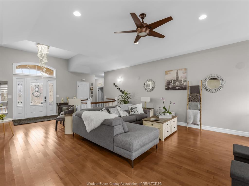 Welcome to 202 ellison ave, a beautiful custom-built ranch in one of leamington’s sought-after neighbourhoods. Built in 2009, this spacious home offers 4 bedrooms plus a den and 3. 5 bathrooms. The open-concept main floor features 9-ft ceilings, hardwood floors, a cozy gas fireplace, and a spacious kitchen with granite countertops and plenty of cabinetry. The primary suite includes a walk-in closet and ensuite with soaker tub and glass shower. Main floor laundry adds convenience. The fully finished basement offers additional living space, bedrooms, a full bath, and plenty of storage—perfect for guests or working from home. Enjoy the landscaped yard with patio and sundeck, plus a double garage with inside entry. Located close to parks, trails, and all amenities.