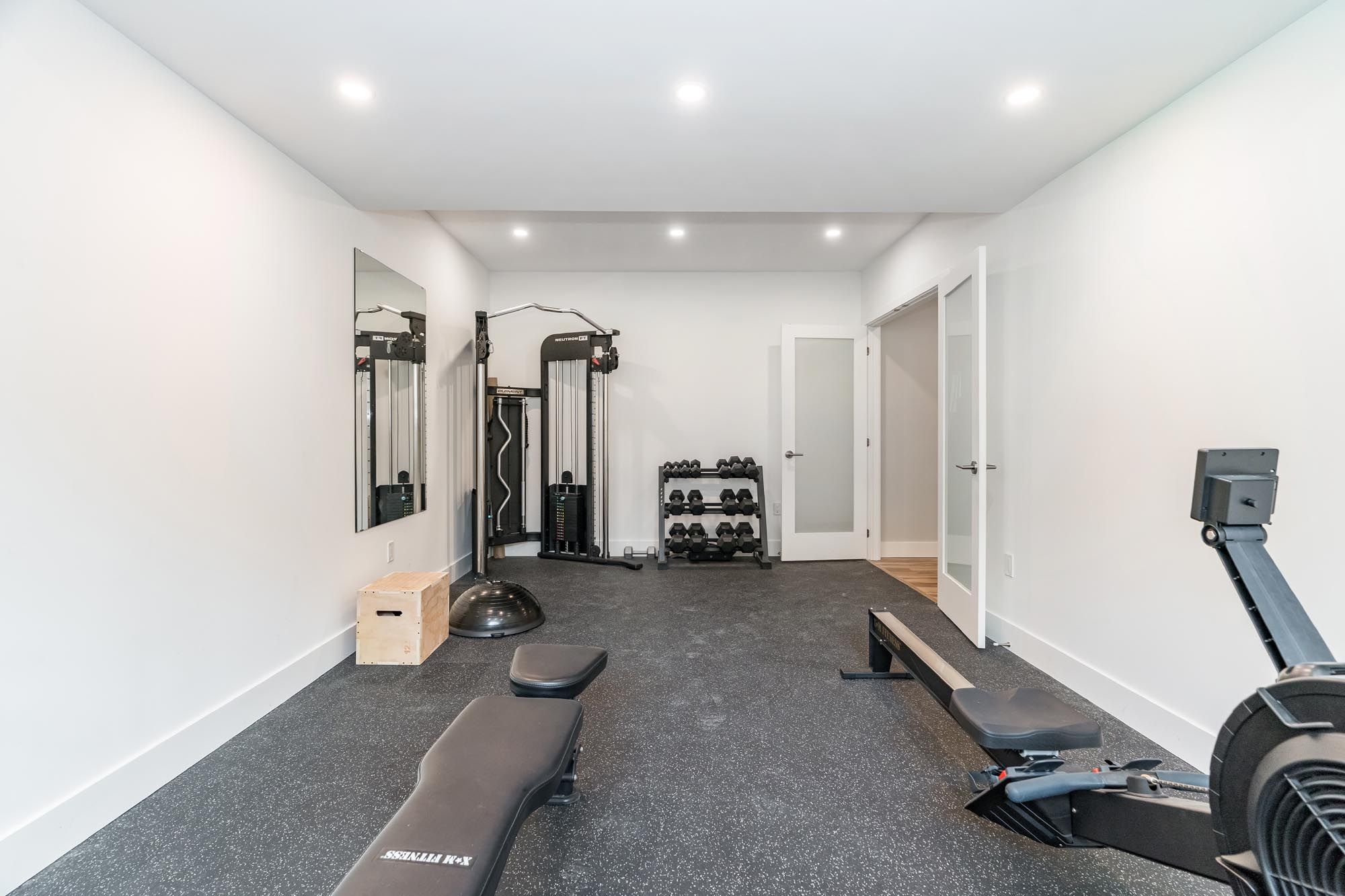 • Versatile finished basement with gym, recreation room, and extra bathroom.