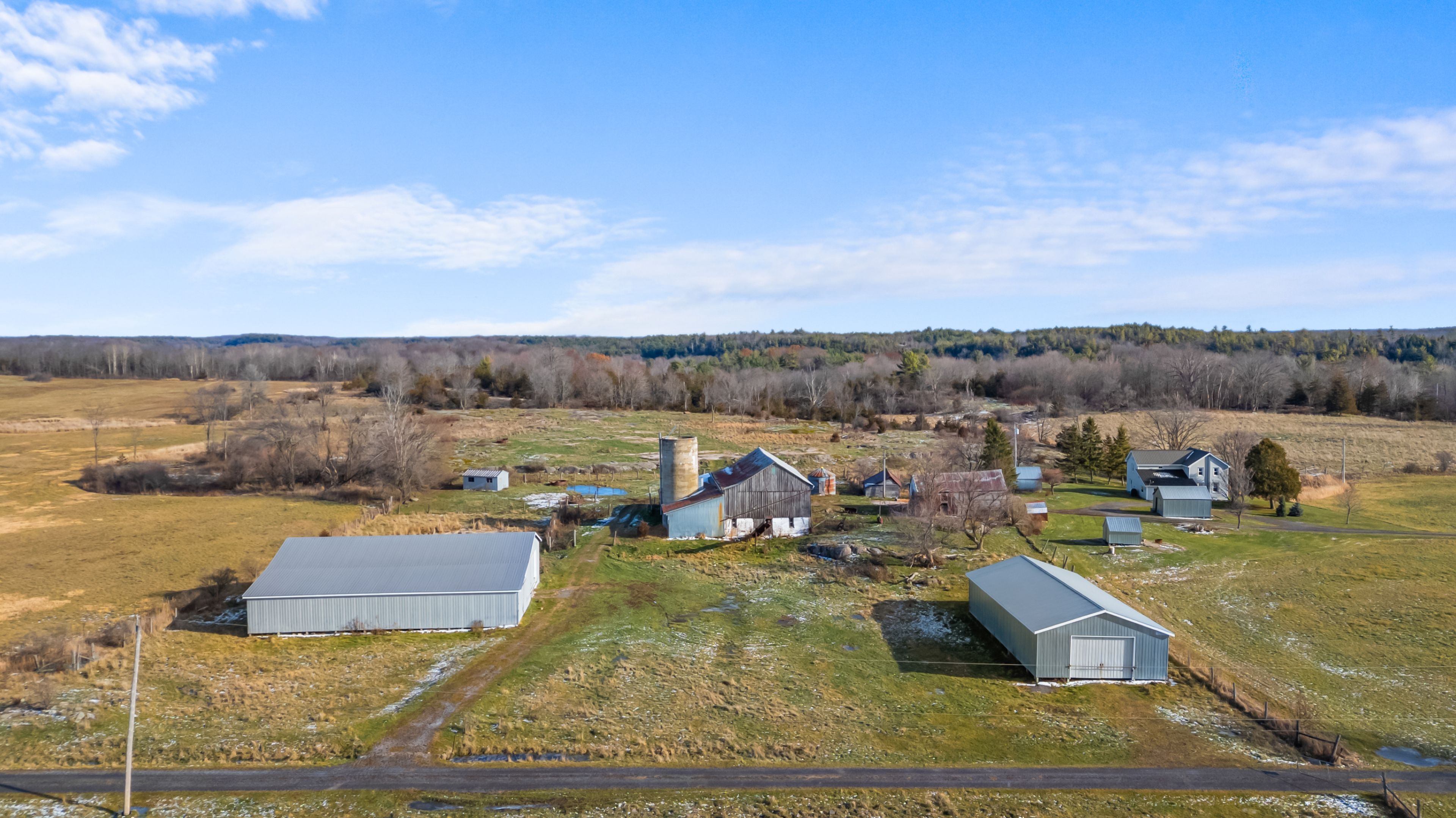 Welcome to 202 marble rock farm, an excellent opportunity to acquire nearly 300 acres of productive agricultural land in leeds & grenville, just 5 minutes north of charming gananoque and approximately 30 minutes east of kingston. This working farm is predominantly composed of open tillable acreage and pasture, with additional sections of wooded area, making it suitable for a range of agricultural or recreational uses. The property features gently sloping topography with predominantly class 2 and 3 agricultural soils (lansdowne and napanee clay loam), offering good capability for crop production, hay, and pasture. The farm includes a charming, well-maintained and spacious 3-bedroom residence with natural gas service, a large modern drive shed, a capable livestock barn, hay storage facilities, additional storage buildings, and a silo, supporting ongoing farm operations and equipment storage. The property layout is well suited for mixed farming, livestock, or equestrian use. Zoned ru (rural), the property benefits from extensive road frontage on both marble rock road and pelow road and offers long-term severance and development potential (subject to approvals). A large, contiguous land base in a desirable eastern ontario farming area, offering scale, versatility, and future opportunity. Interested parties are encouraged to reach out for additional information regarding soil specifics, drainage characteristics, canada land inventory (cli) soil classifications, lot details and more. Reach out to book a showing today! Reach out for zoning, permitted uses, severance potential, and hst applicability.