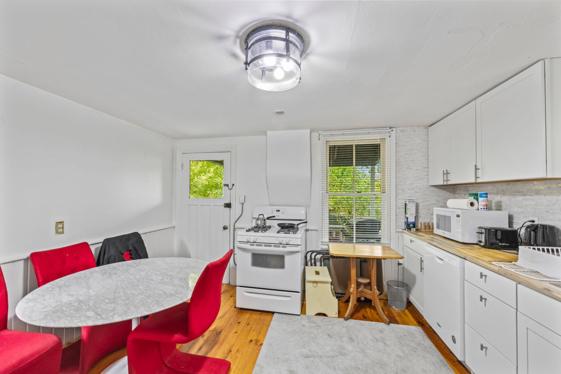 • Main unit boasts rustic hardwood flooring and a modern eat-in kitchen.