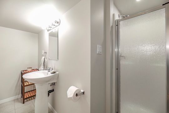• Finished lower level includes additional bedroom, rec room, and storage space.