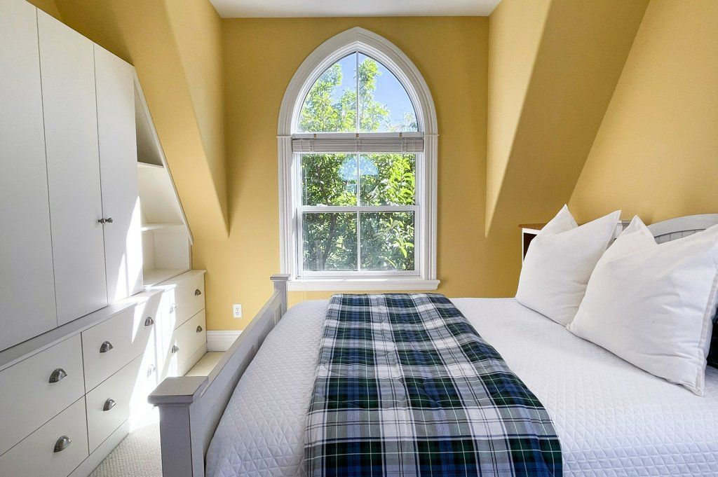 • Bright living spaces with cathedral windows create an inviting atmosphere.