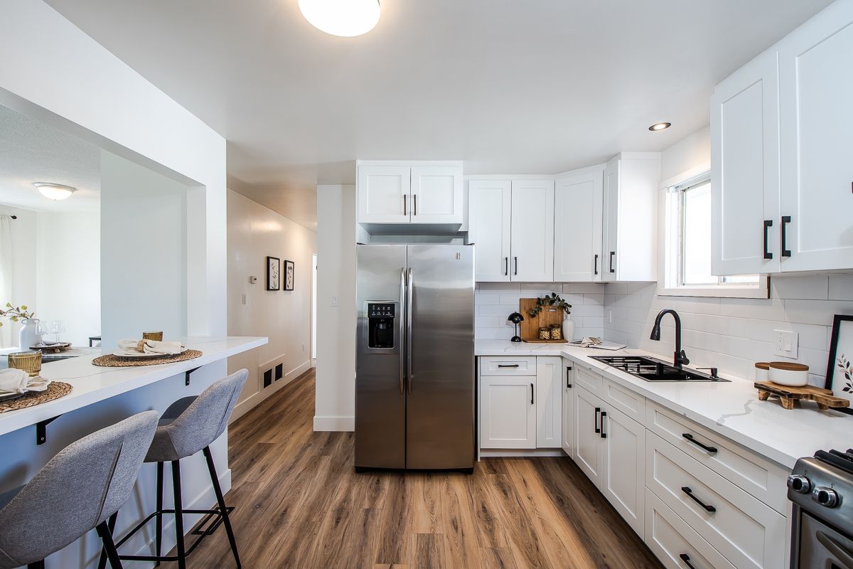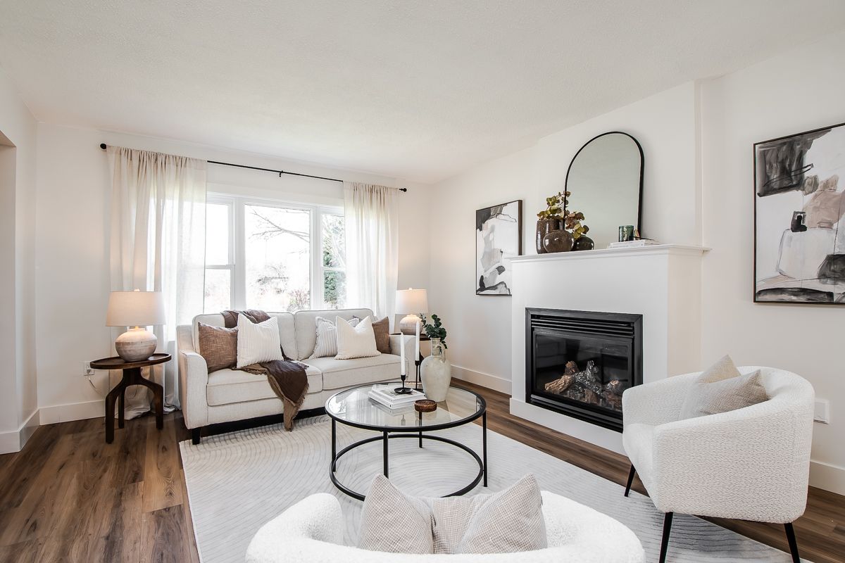 Legal duplex: registered with the city. Move in perfect! Newly renovated main level with upgraded kitchen (2026), stainless steel fridge & gas stove, upgraded bathroom (2026), freshly painted (2026), baseboards & laminate flooring (2026), many newer windows (2026). Gorgeous neutral decor. Kitchen open to living/dining room with quartz counters (2026), picture window, open concept, 3 good sized bedrooms upper, 2 stoves (1 gas upper), 2 washer & dryers. Total separate living. Newer custom built over sized garage with high ceiling and good sized private yard. On quiet street near everything. An excellent tenant willing to stay can help pay mortgage. Show & sell... Will not disappoint! Priced to sell!