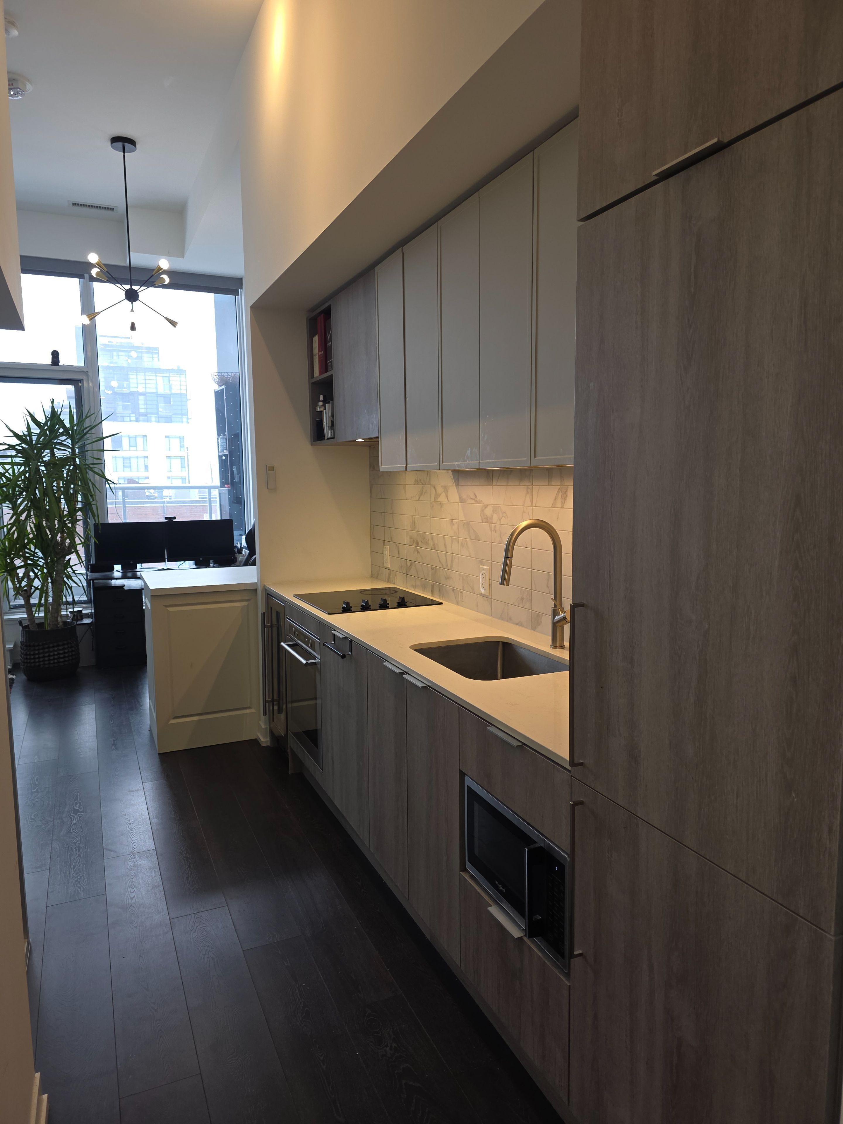 • Bright, open concept unit with 12ft ceilings and a balcony.