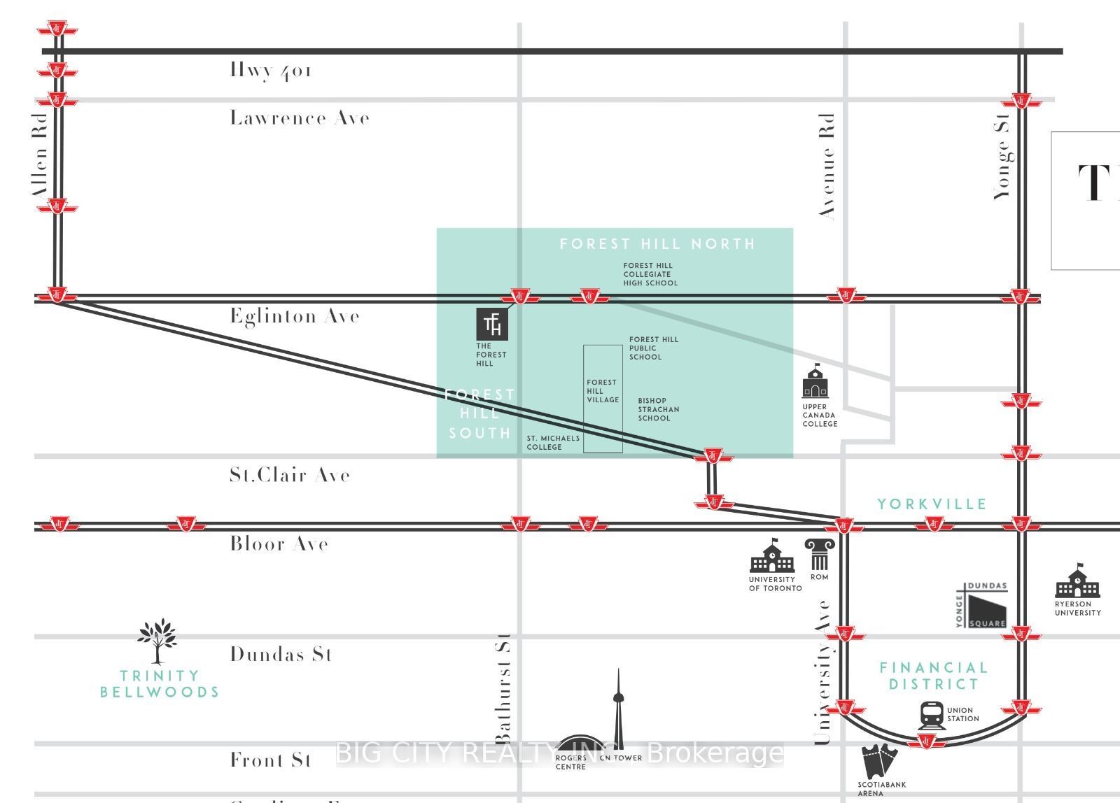 Immaculate 1 bed + den unit for lease in the recently constructed forest hill condos. This luxurious suite features soaring 10-foot ceilings, internet included, and a private locker. Enjoy state-of-the-art amenities including a gym, yoga studio, co-working space, and rooftop terrace. Benefit from plenty of transit options and direct underground access to the future forest hill lrt station. Located in a prime midtown area, you are steps to upscale dining, groceries, and shopping.