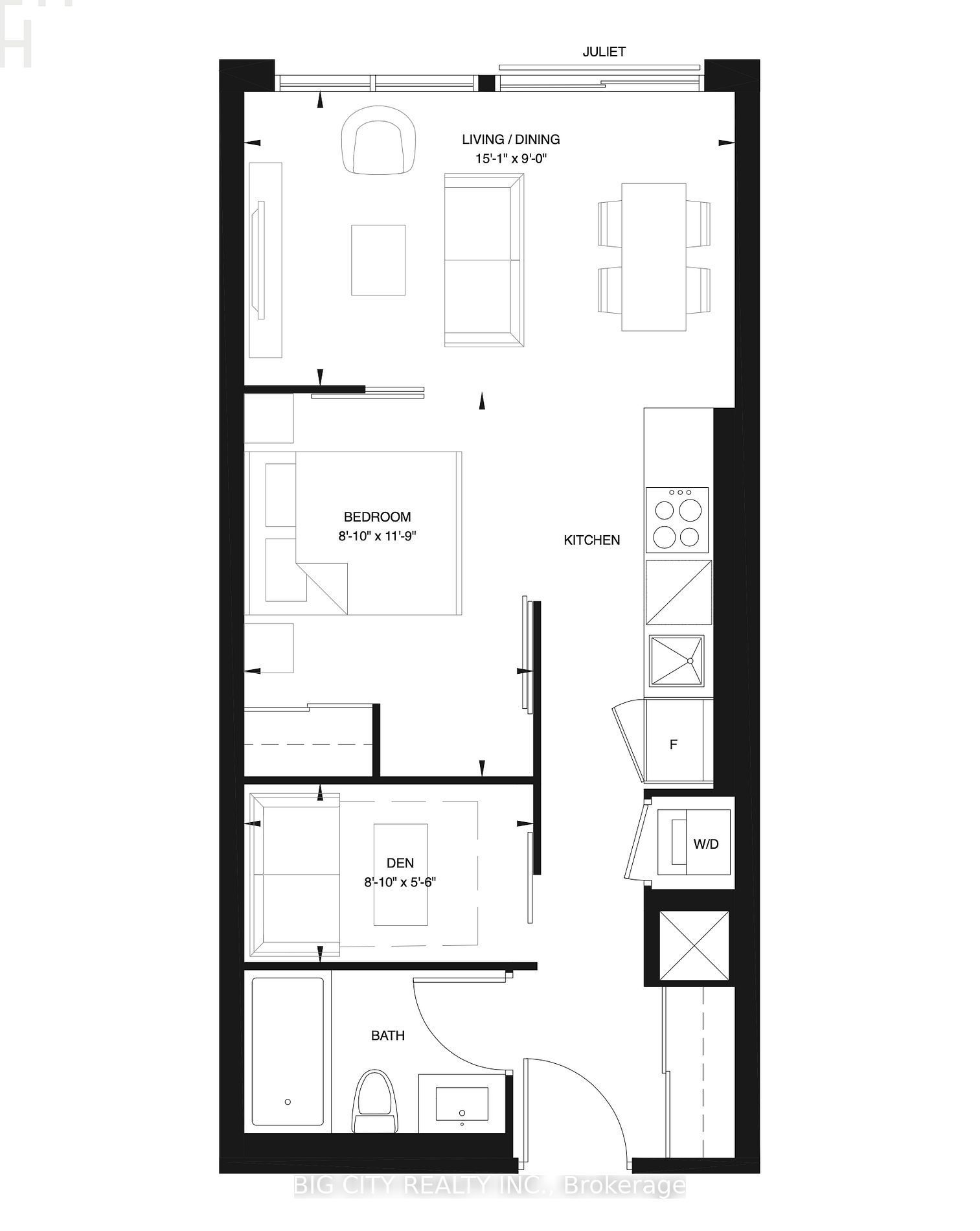 • Luxurious 1 bed + den unit with high 10-foot ceilings.