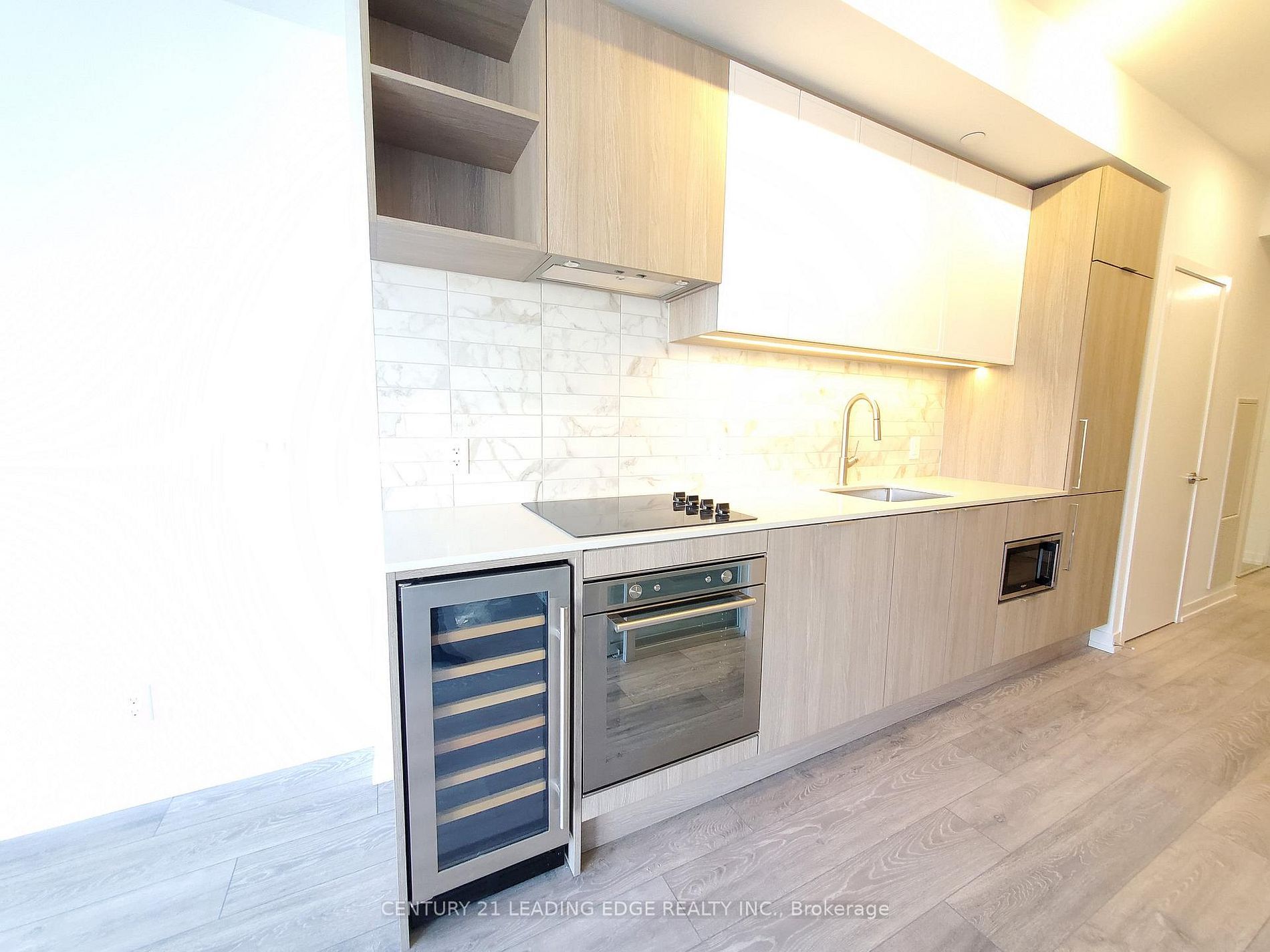 • Modern kitchen equipped with high-end appliances and wine cooler.