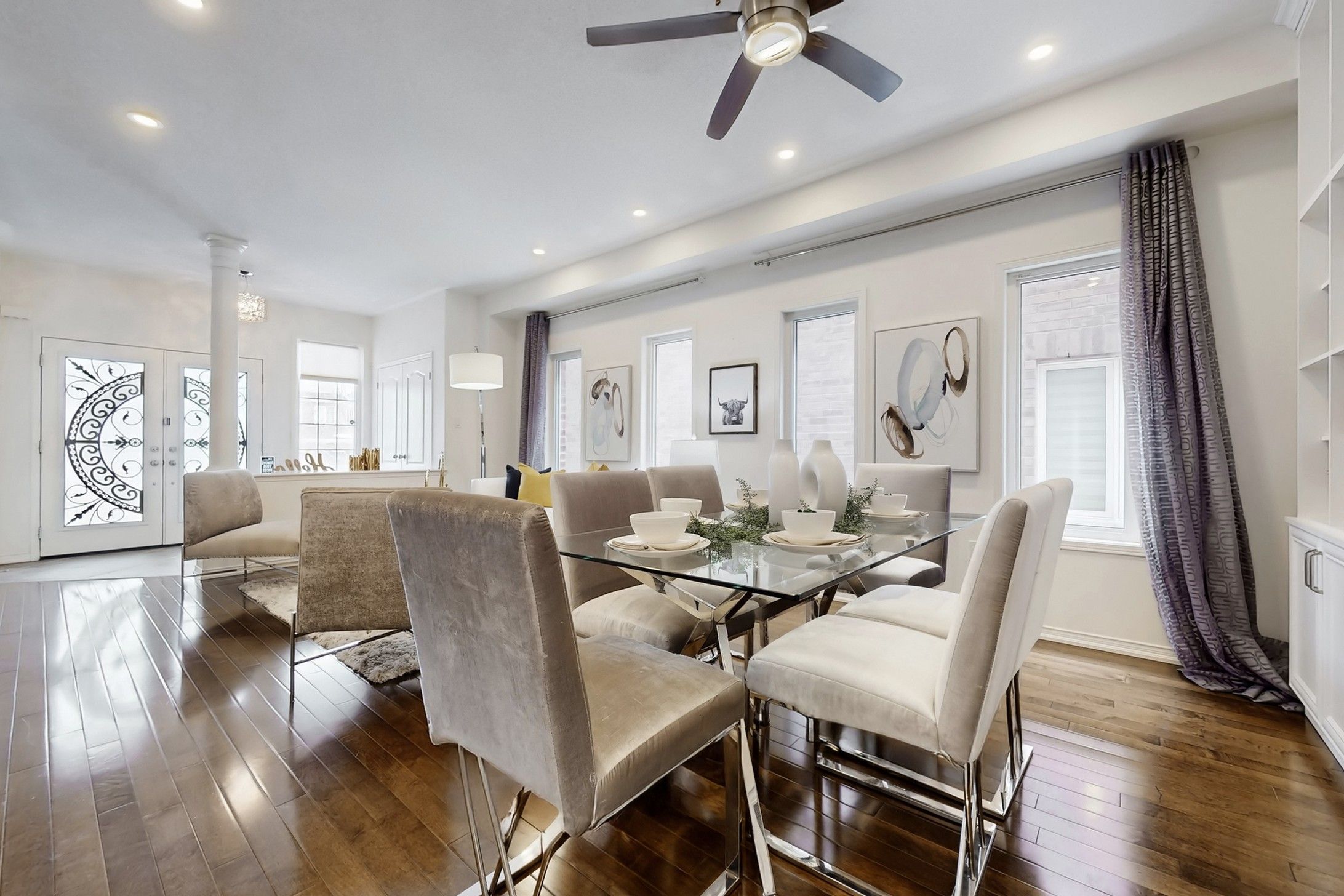 Nestled on a quiet family-friendly court in desirable north oshawa, this beautifully upgraded 4-bedroom detached home offers the perfect blend of style, comfort, and convenience. Situated on a generous 40' x 118' lot, the home showcases a full brick exterior, double car garage, and an extra-long driveway on a rare sidewalk-free lot, providing ample parking for 6 vehicles. Inside, the home features 9-foot ceilings, rich hardwood flooring throughout the main level, a hardwood staircase with modern metal spindles, and pot lights across the main floor, creating a bright and sophisticated living space. The designer kitchen serves as the heart of the home, beautifully appointed with quartz countertops, a custom backsplash, stainless steel appliances, a large centre island perfect for gatherings, and an undermount stainless steel sink, complemented by stylish custom built-in shelving in the kitchen and living room. All bathrooms are thoughtfully upgraded with quartz countertops, modern vanities, and decorative mirrors, while the spacious primary bedroom features custom closet and drawer organizers for optimal storage and functionality. Step outside to your fully fenced backyard oasis, complete with a patio and gazebo, perfect for summer entertaining, family gatherings, or simply unwinding in a private outdoor setting. Ideally located just minutes from smartcentres oshawa north, delpark homes centre, major highways 407, 418 and 401, and durham college, this exceptional home offers the perfect balance of peaceful suburban living with outstanding everyday convenience.