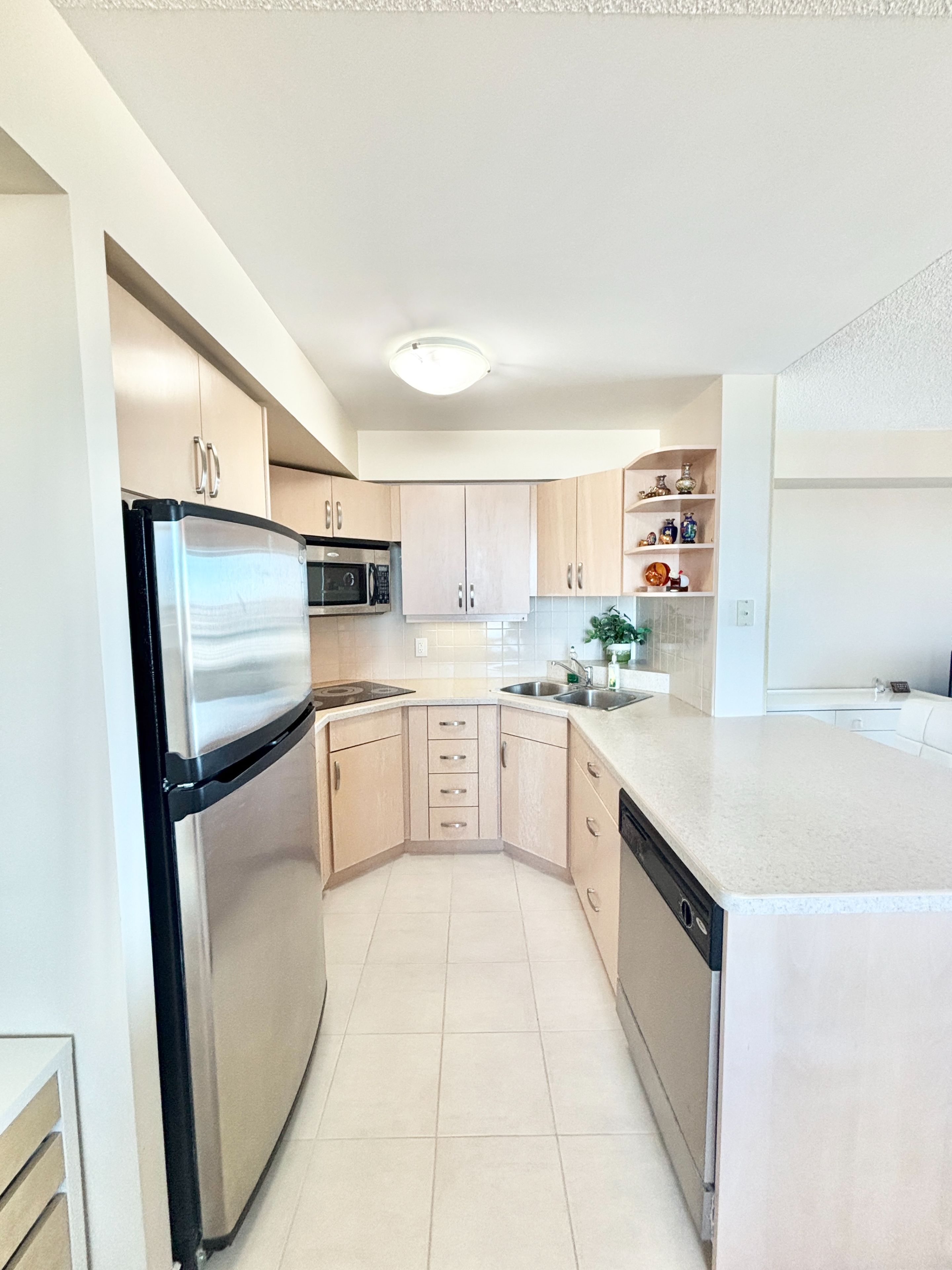 • Spacious 700+ sqft corner suite with a full-sized kitchen and living area.