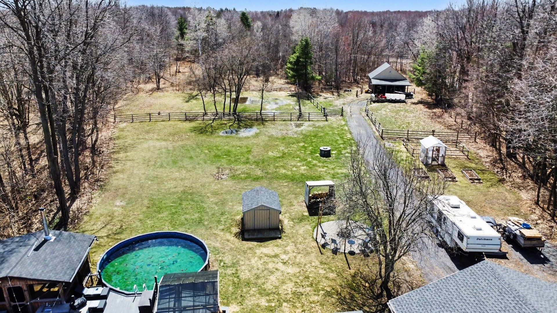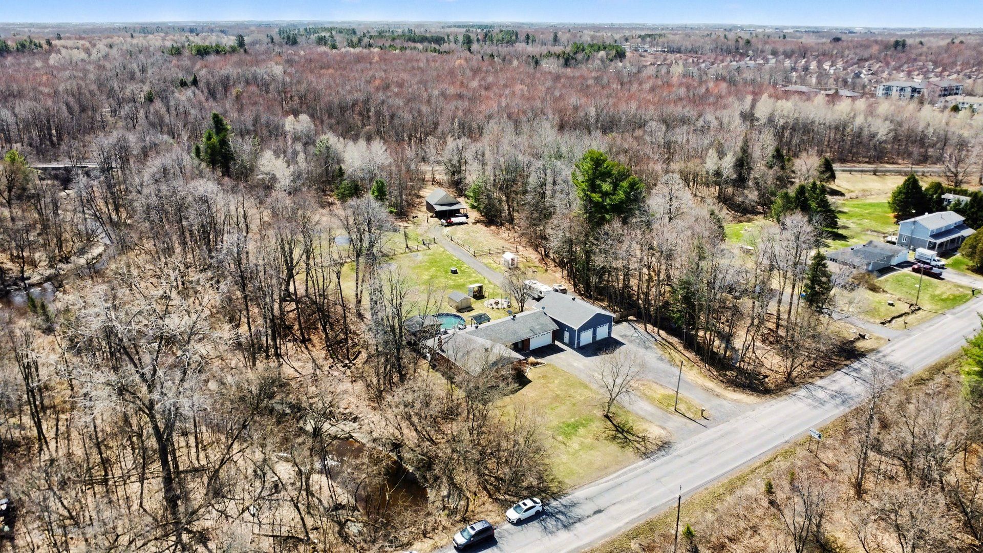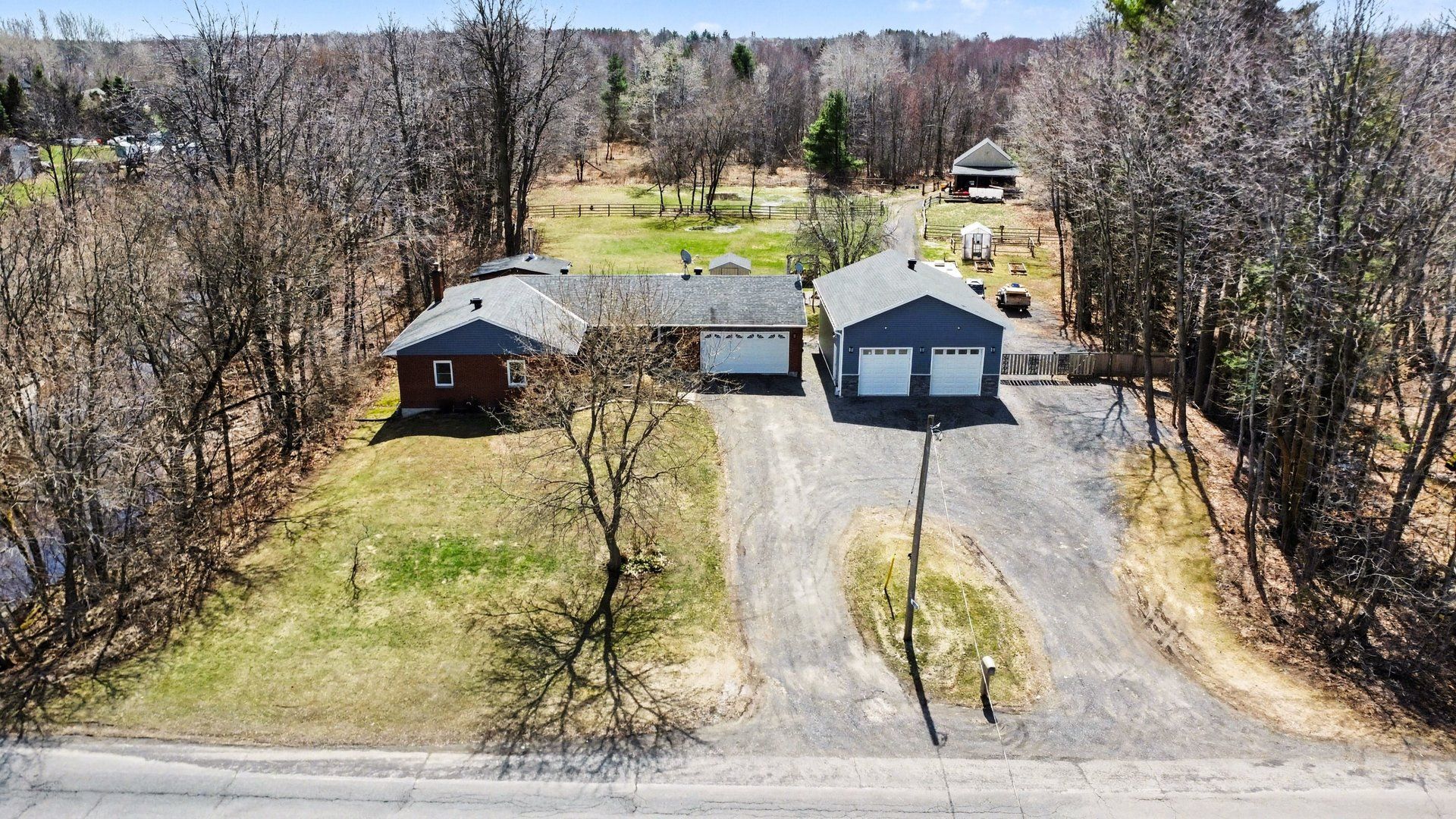 Beautiful, newly renovated brick bungalow set on just under 5 acres in a quiet and private country setting, yet close to everything you need. This impressive property features an attached double car garage, as well as a large detached 4-car garage complete with a car lift-perfect for hobbyists, mechanics, or extra storage. Enjoy outdoor living at its best with an above-ground pool, hot tub, and gazebo, all overlooking a spacious back deck-ideal for entertaining or relaxing with family and friends. The property also includes a barn at the rear, offering additional space for storage or hobby use, as well as existing paddocks for a small hobby farm with endless potential. Inside, the main floor has been fully renovated with modern finishes and new appliances throughout. The fully finished basement has also been recently updated and offers a large bedroom, full bathroom, office space, generous rec room, and ample storage. A large u-shaped driveway provides plenty of parking for guests and vehicles alike. Located in an ideal rural setting while still being conveniently close to schools, nature trails, calypso waterpark, and just 30 minutes to ottawa with easy access to the 417. This property truly offers the perfect balance of country living, comfort, and convenience-enjoy peaceful evenings around the campfire with family and friends.