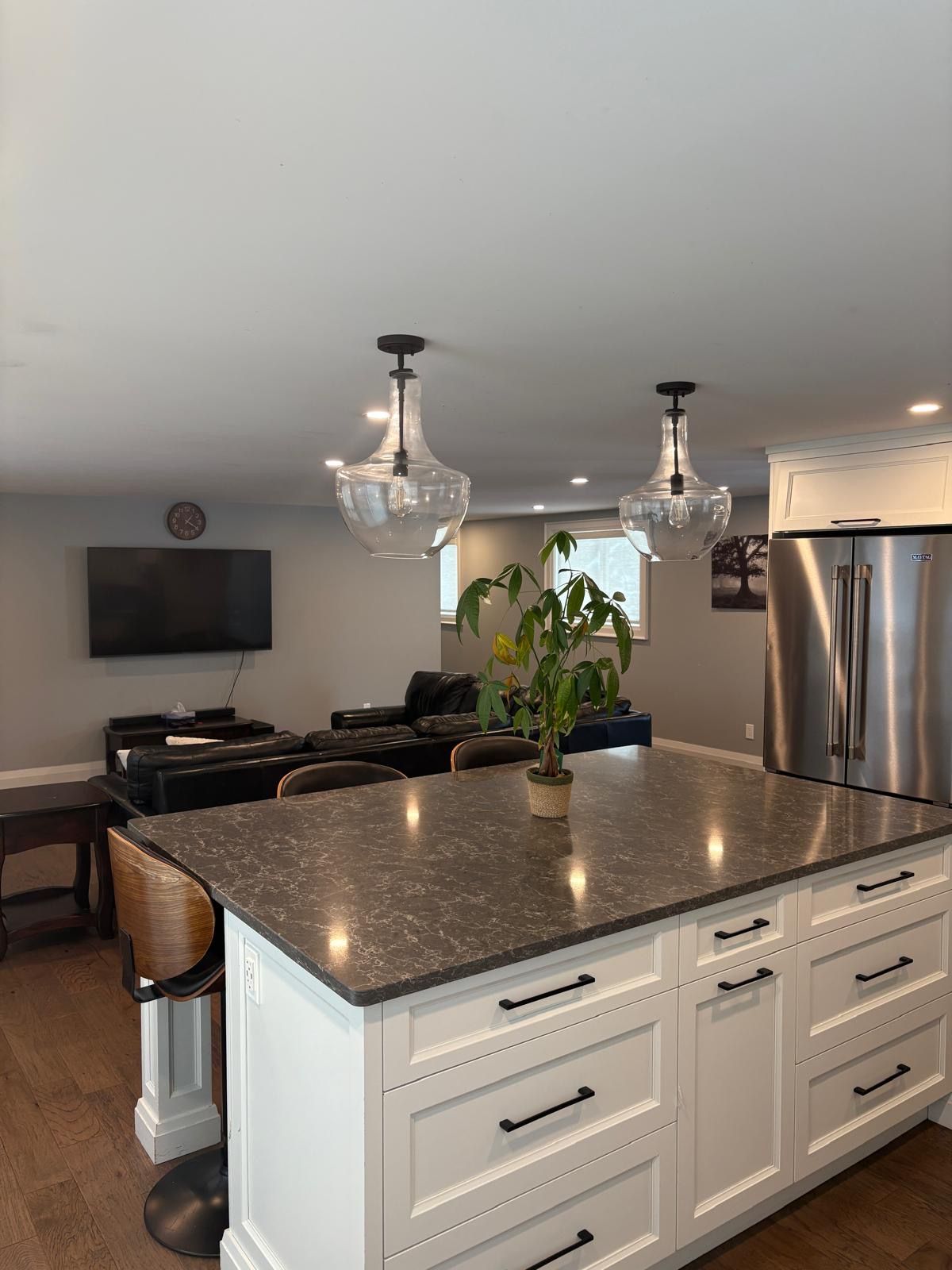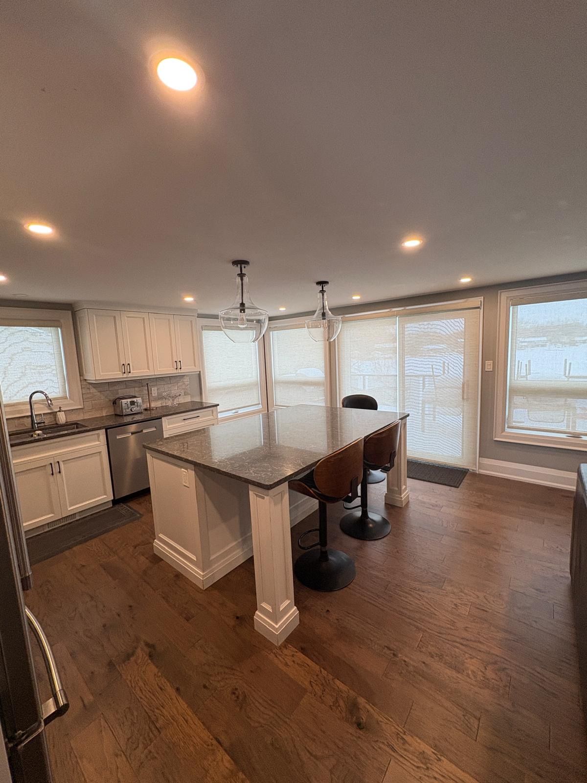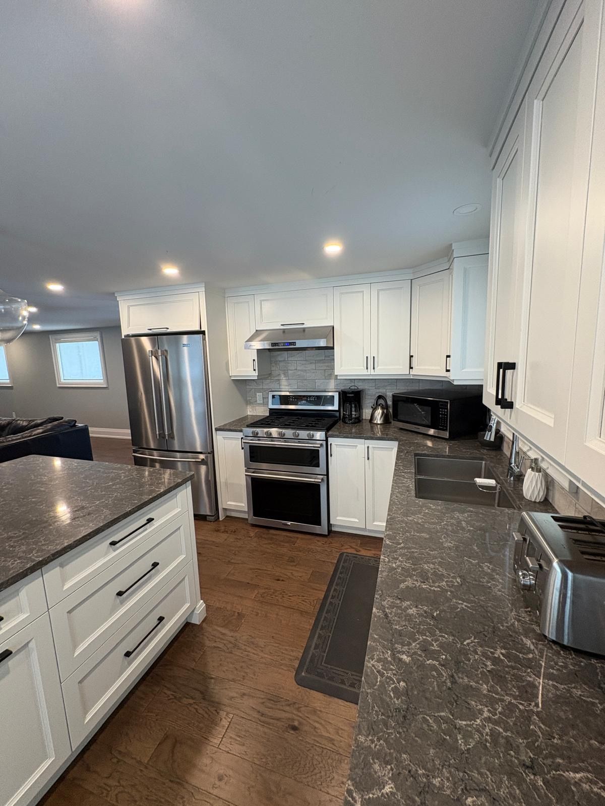 • Open concept kitchen with new stainless steel appliances.