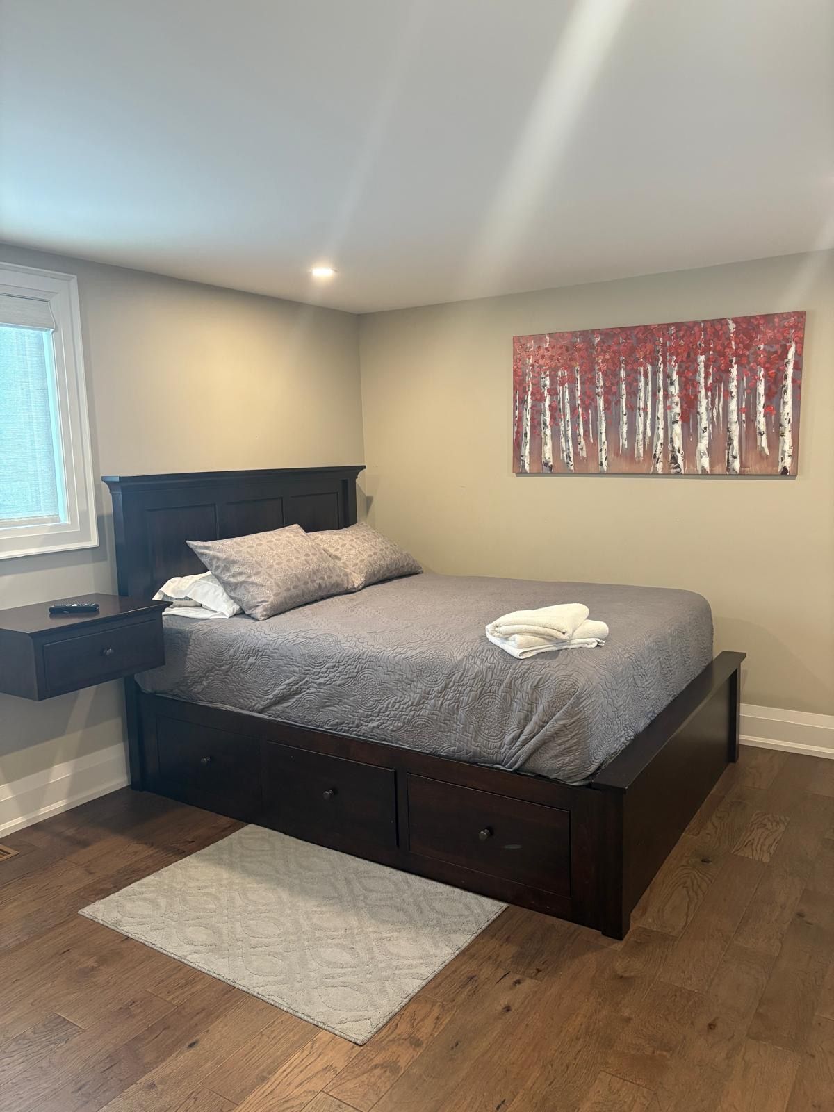 • Spacious living room with large windows and deck access.