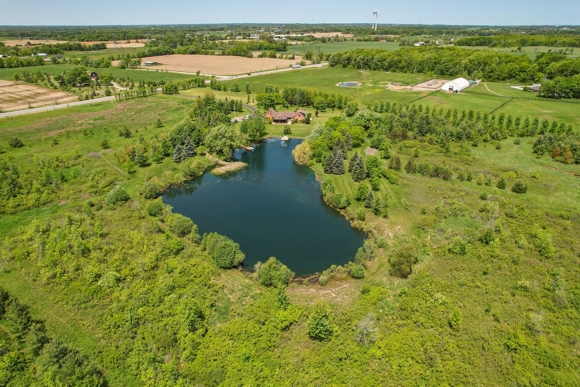 Welcome to 2021 victoria avenue, a breathtaking bungalow loft-style estate set on over 30 acres of pristine countryside in the heart of fenwick. This extraordinary residence masterfully blends classic, luxurious country living with modern elegance and premium finishes throughout. Just over 4,000 square feet of beautifully finished living space, the home features 5 spacious bedrooms and 5 exquisitely appointed bathrooms, thoughtfully designed to provide both comfort and timeless style. Every inch of this estate has been completely renovated from top to bottom, showcasing custom cabinetry, high-end finishes, and meticulous craftsmanship. An inviting loft games room above the garage adds a fun, versatile space for family gatherings, entertaining, or relaxing with friends the perfect complement to the homes thoughtful layout. The finished basement extends your living area, ideal for recreation, home gym, or a cozy retreat. A true highlight of this estate is the private 2. 5 acre pond, fully stocked with fish, creating the perfect setting for peaceful afternoons, outdoor entertaining, and sunset reflections. The property also includes usable farmland, previously cultivated for cash crops, offering versatility for hobby farming, equestrian use, or future development. Enjoy the benefits of geothermal heating for year-round, eco-friendly comfort, while the immaculately maintained grounds provide endless opportunities to connect with nature whether its morning walks through the trees, fishing by the water, or simply relaxing in complete privacy. All of this is located just minutes from local amenities with quick, convenient access to the highway, offering the perfect balance of country seclusion and modern convenience. 2021 victoria avenue is more than a home it's an estate that captures the spirit of classic, luxurious country living.