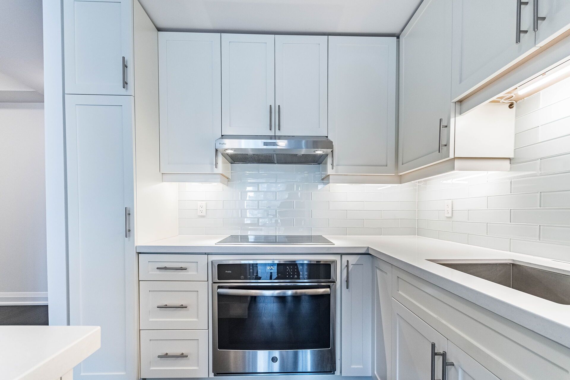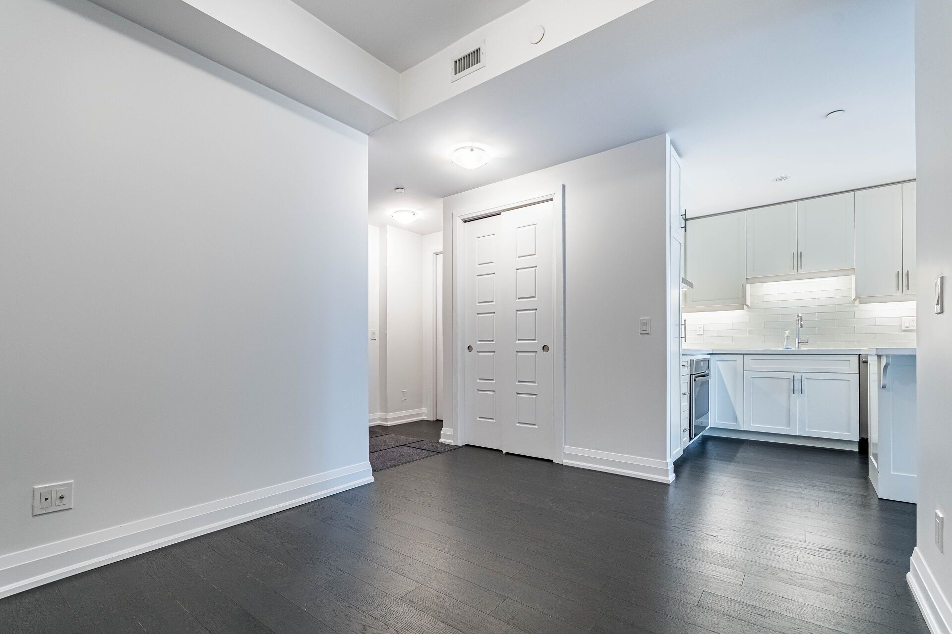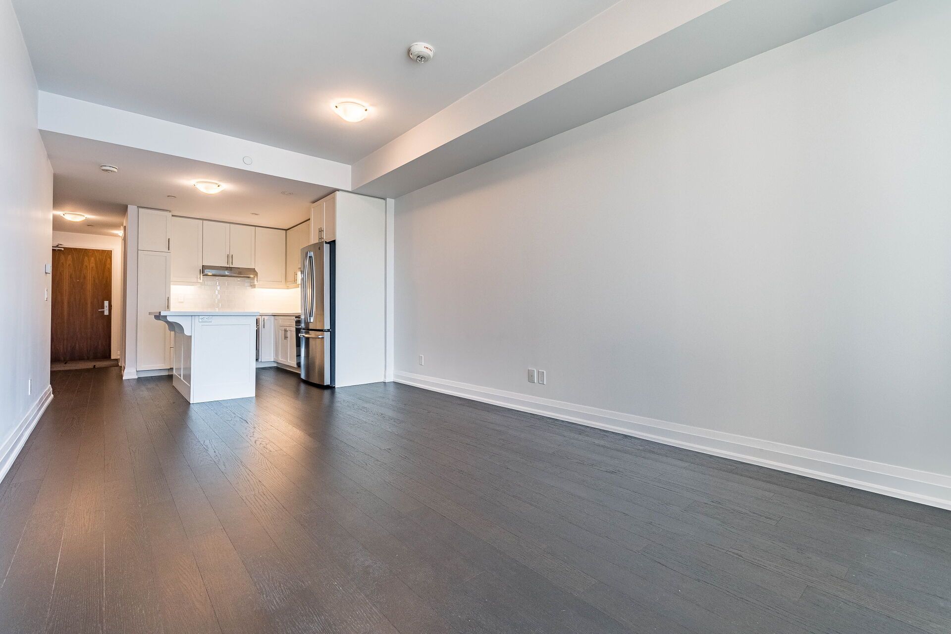 • Open layout featuring 9-foot ceilings and engineered hardwood flooring.