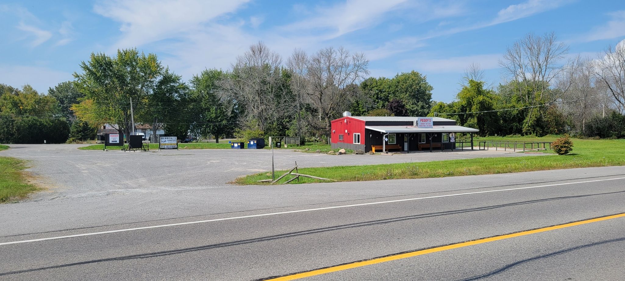 With highway commercial zoning the possibilities for future development of this prime piece of property include, plaza, motel, gas station, grocery store, rv sales, and service center to name a few. Currently being operated by tenants as a seasonal restaurant. The sale includes the equipment currently on the property (excluding tenants equipment), and signage. There is a 30 x 30ft fenced off patio area attached to the 1000 sqft restaurant licensed by the lcbo. Located at the western entrance to prince edward county, this is a very high traffic area, with a very strong tourism season. There is a year round population in the area to support a four seasons business, but the area really flourishes with the cottagers, campers and tourists visiting the county and our fabulous provincial parks and beaches.
