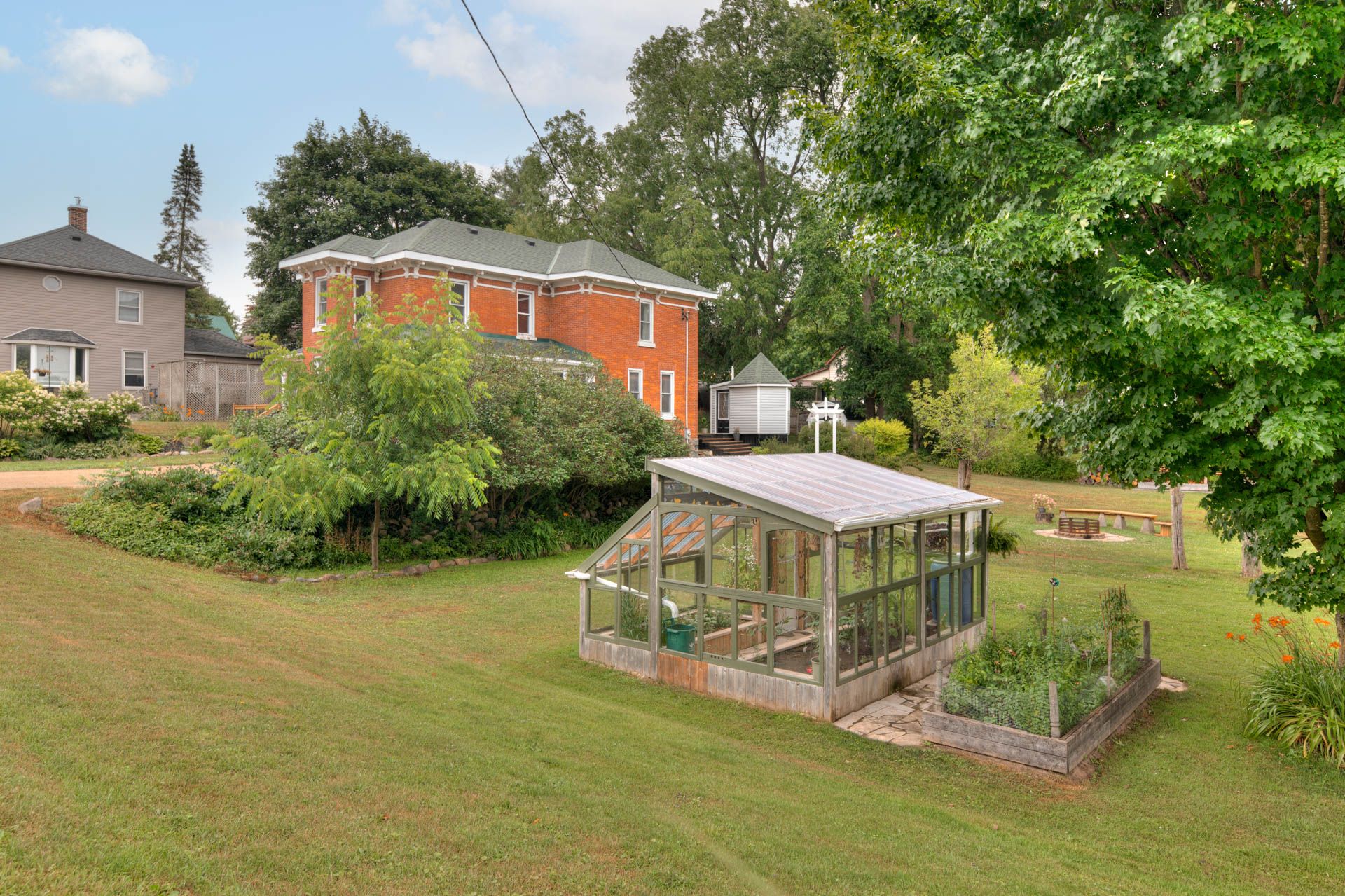 Welcome home to 2027 victoria street in gorrie! Set on a spacious corner lot beside the river, this fully renovated victorian-style home offers the comfort of modern updates with the charm of small-town living. Every detail has been carefully considered over the past four years, creating a home that's as functional as it is inviting. From the moment you arrive, the setting draws you in with mature trees, established gardens, and the calming presence of the river nearby. Start your mornings on the front porch with coffee in hand, spend sunny afternoons gardening in the greenhouse or watch the kids run around in the yard, and wind down in the evenings around the fire pit with friends and family. There's so much you could do with a one of a kind space like this. When you head inside you'll notice the main floor features a newly renovated kitchen with updated cabinetry, countertops, and appliances. The open layout flows into a bright & spacious living area, main-floor laundry with new sink provides extra convenience, while heated floors in both the kitchen and main-floor bathroom keep things cozy year round. Custom trim and new flooring in many rooms adds that fresh feel while maintaining the character. Upstairs you'll notice it has been completely redone, offering three comfortable bedrooms and a refreshed full bathroom. Outside you get to enjoy a beautiful back deck with a gazebo, new wood shed, an insulated bunkie with hydro, and plenty of space for gardening, play, and entertaining. With the river just steps away, a public pool a short walk up the road, and wide open space all around, its a location that offers peace, privacy, and room to enjoy the outdoors! Just a short drive to listowel & wingham, and about an hour to kw, it gives that relaxing small-town community feel but still provides the conveniences of being close to everything you could possibly need. Don't miss the opportunity to make it yours! Home inspection & full list of updates available