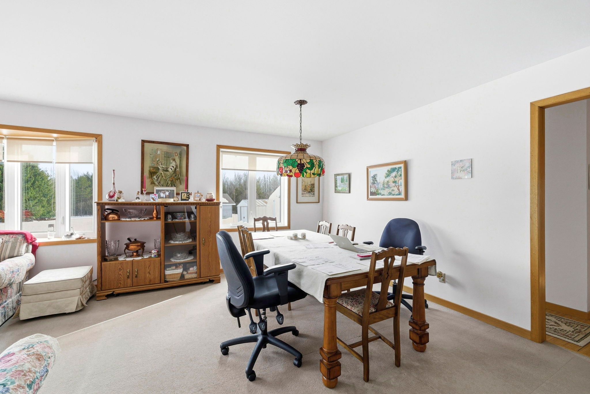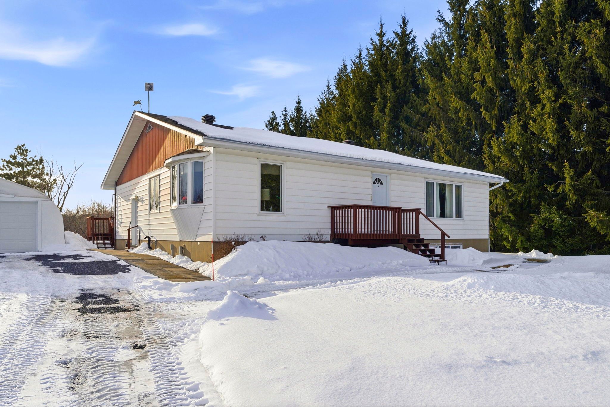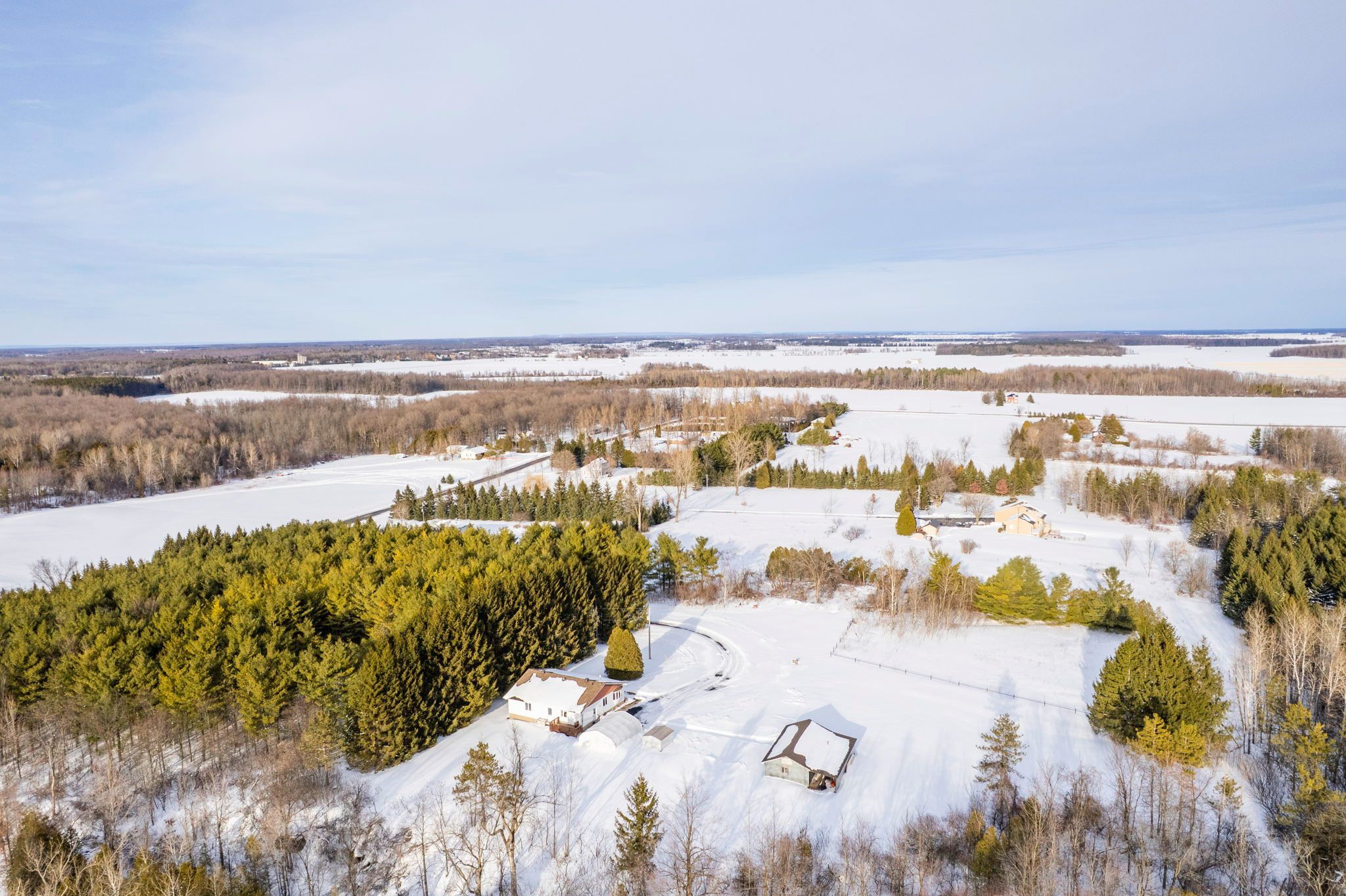 Private country bungalow on 8 acres! Set well back from the road on a peaceful 8-acre parcel, this versatile 3+2 bedroom bungalow offers privacy, space, and the kind of natural setting that feels increasingly rare. The partially treed lot is a beautiful mix of white spruce, red pine, and white pine, creating a quiet, secluded backdrop ideal for country living, recreation, or simply enjoying the calm. Inside, the home features a functional oak kitchen with an abundance of cabinetry, flowing seamlessly into the dining area for easy everyday living. Multiple living spaces include both a living room and a family room, offering flexibility for entertaining, relaxing, or multigenerational use. Primary bedroom with a 3pc en-suite bathroom. 4pc guest bathroom with tub/shower. Main floor laundry adds everyday convenience. The lower level expands the living space featuring two additional bedrooms, rec room with bar, 2pc bathroom (potential 3pc), and home office/den. Outdoors, the property is equally well-equipped with a back deck, a detached enclosed temporary garage plus an impressive 20 ft x 40 ft detached garage/workshop, ideal for vehicles, storage, or projects. A private and picturesque parcel with room to grow, work, and unwind-this property delivers the space and freedom of rural living while offering practical features for everyday life. As per seller direction allow 24 hour irrevocable on offers.