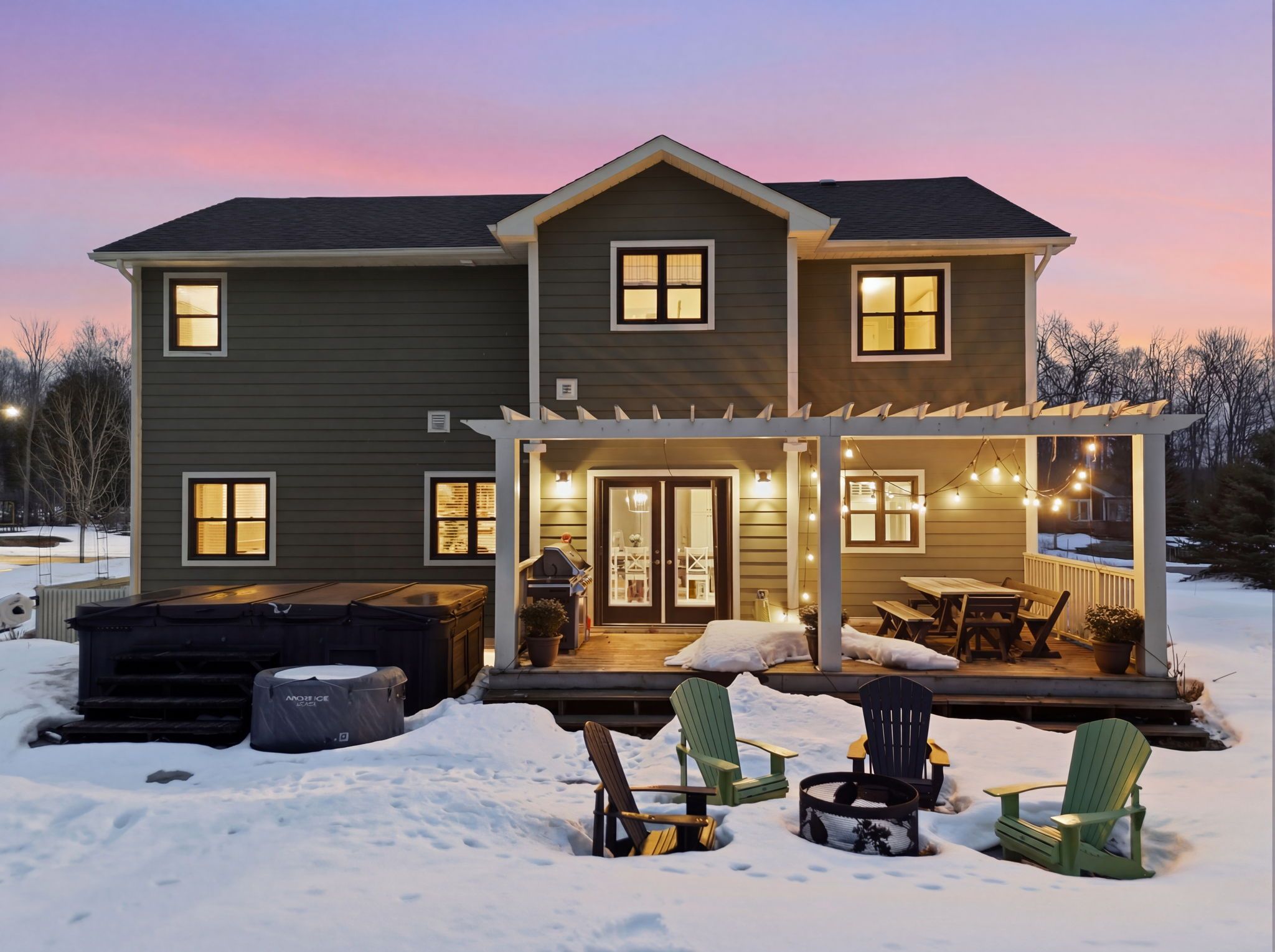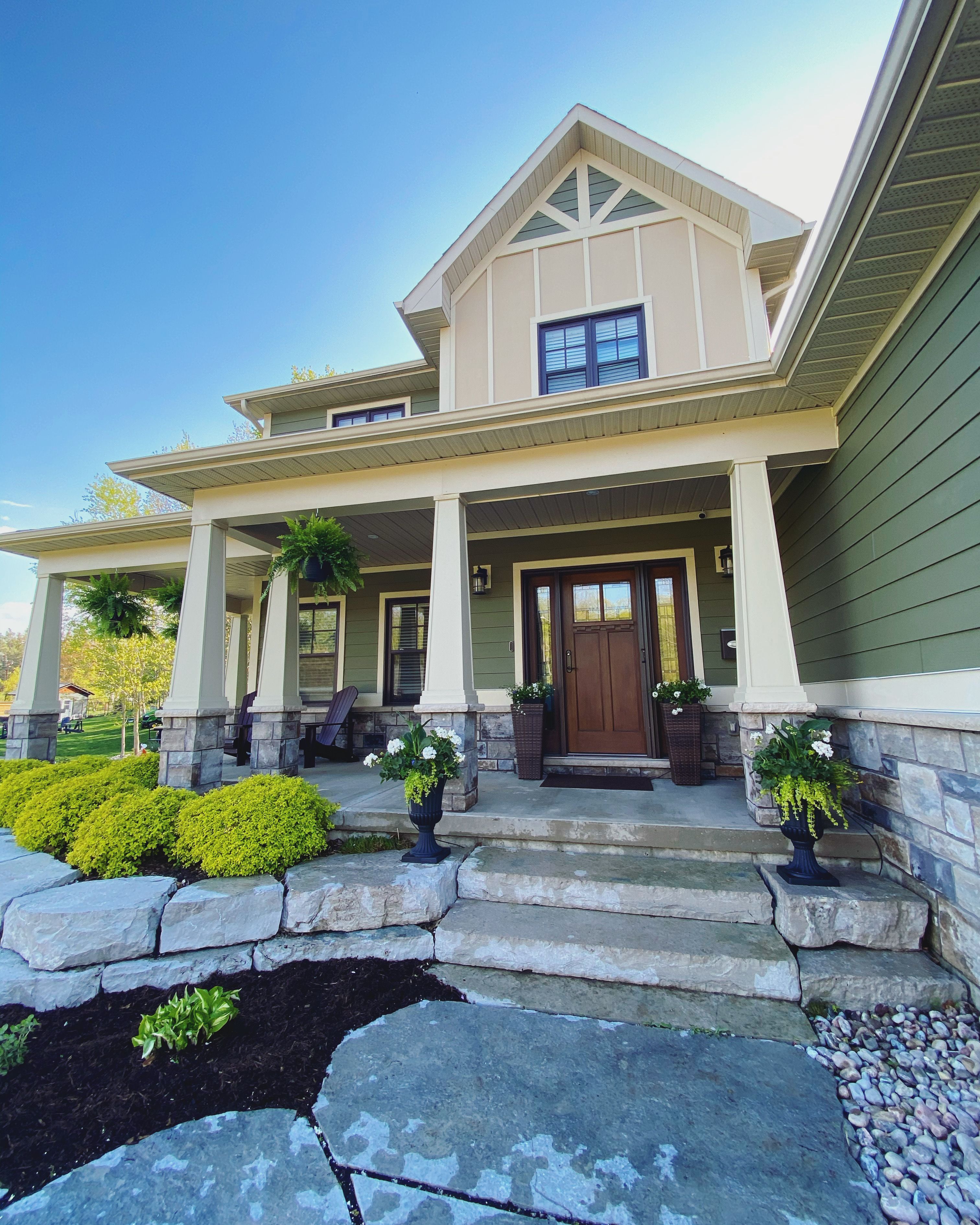 • 1.5-acre property with wraparound porch and landscaped yard.