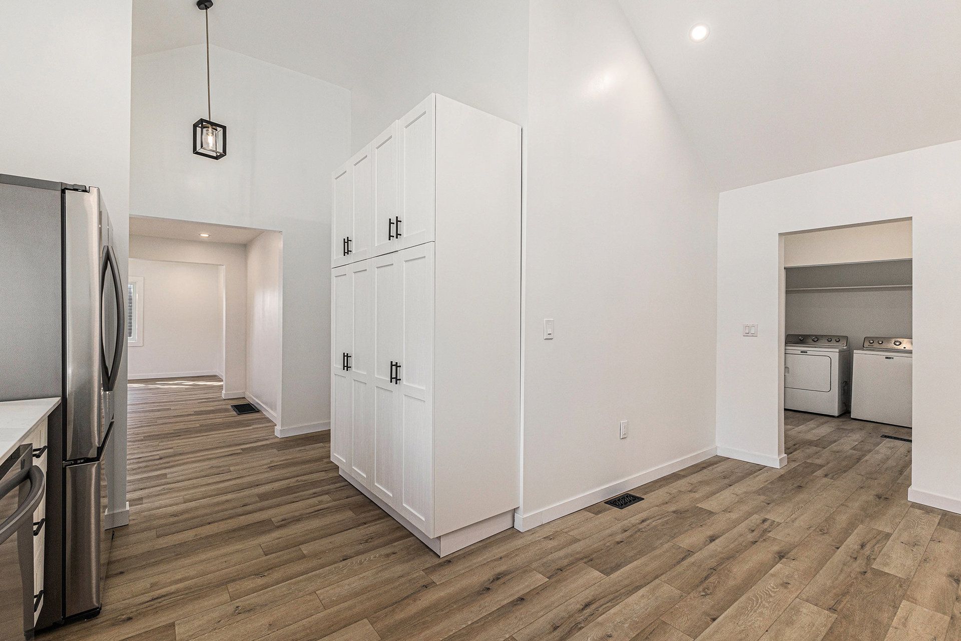 • Open-concept living space with 13.5-foot vaulted ceilings.