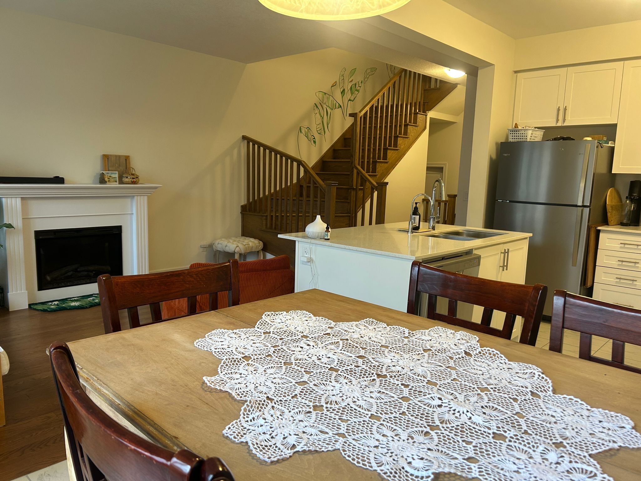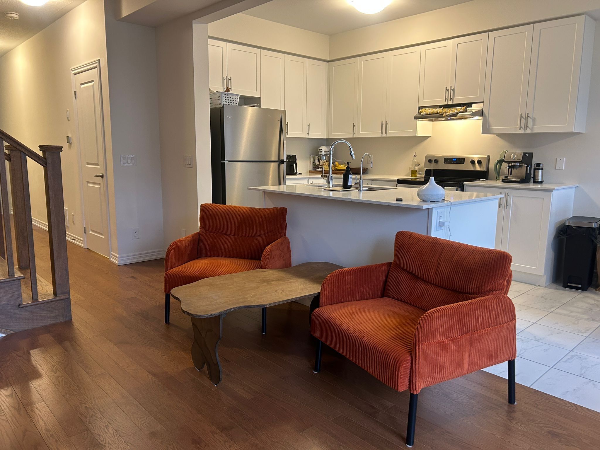 Your search ends here! Discover this beautiful freehold townhome featuring total living space over 1800 sqft 3 bedrooms, 3 bathrooms, and parking for 2 cars. The primary bedroom boasts a luxurious ensuite and his-and-hers walk-in closets. Enjoy 9 ft ceilings, an open-concept main floor with no carpet, a cozy fireplace, and a walk-out to an open backyard. The designer kitchen offers quartz countertops and brand new appliances. Conveniently located close to parks, schools, highways, shopping, and more. A perfect blend of luxury and comfort-move in and enjoy** water softener and reverse osmosis is already installed for tenant use.**