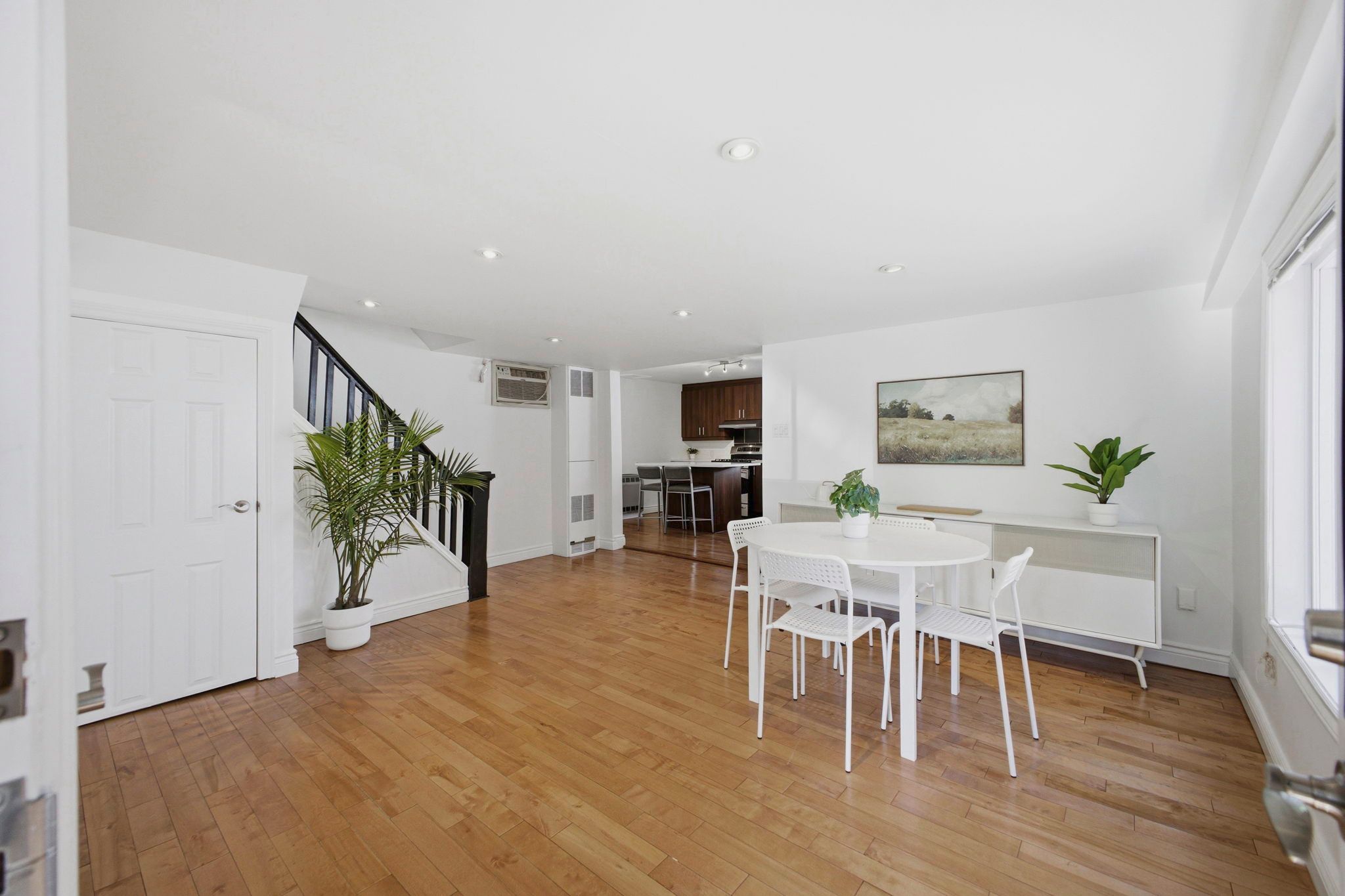 • Spacious living and dining area with gorgeous hardwood floors.
