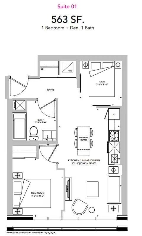 • Den can easily serve as a second bedroom.
