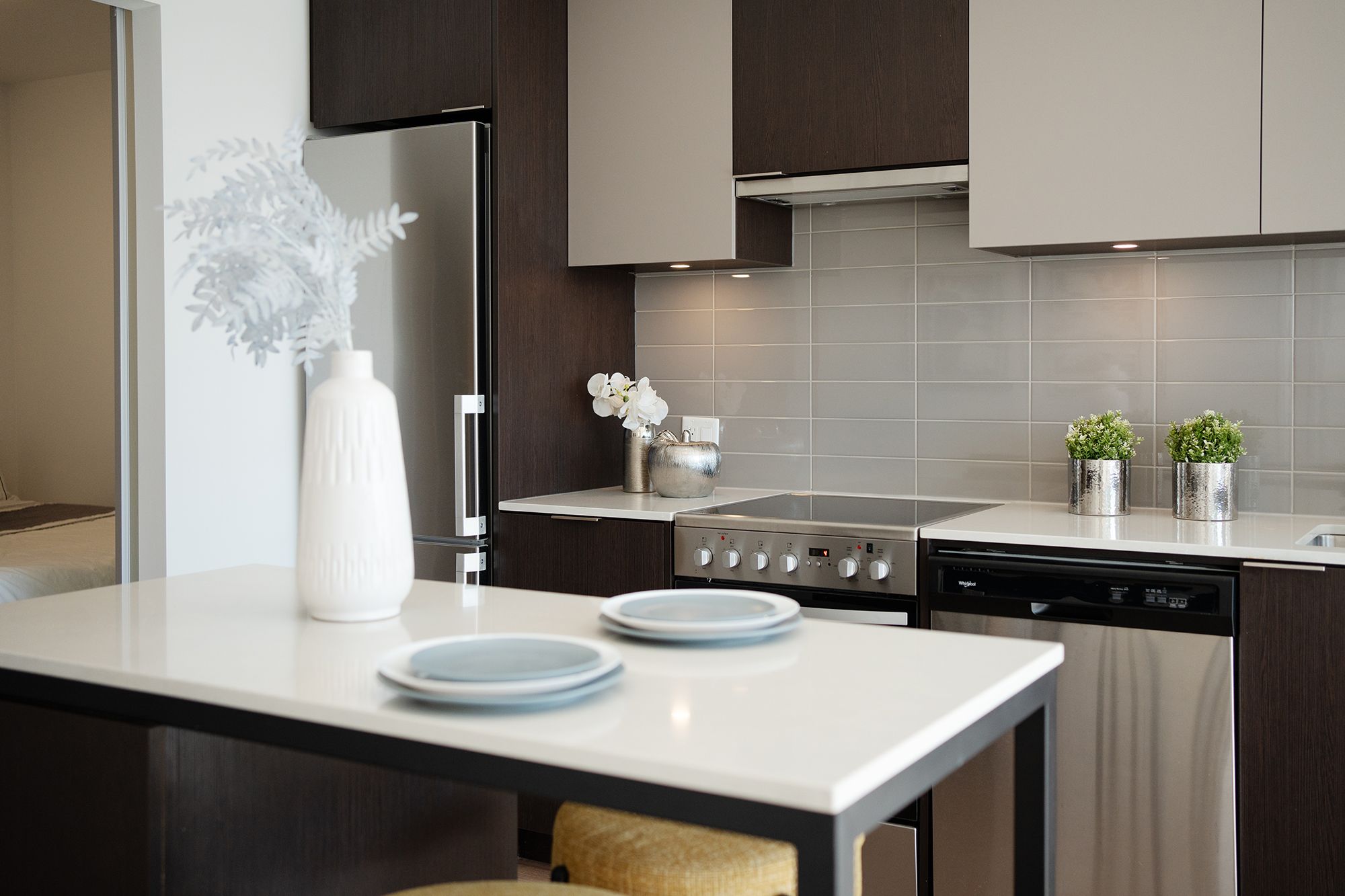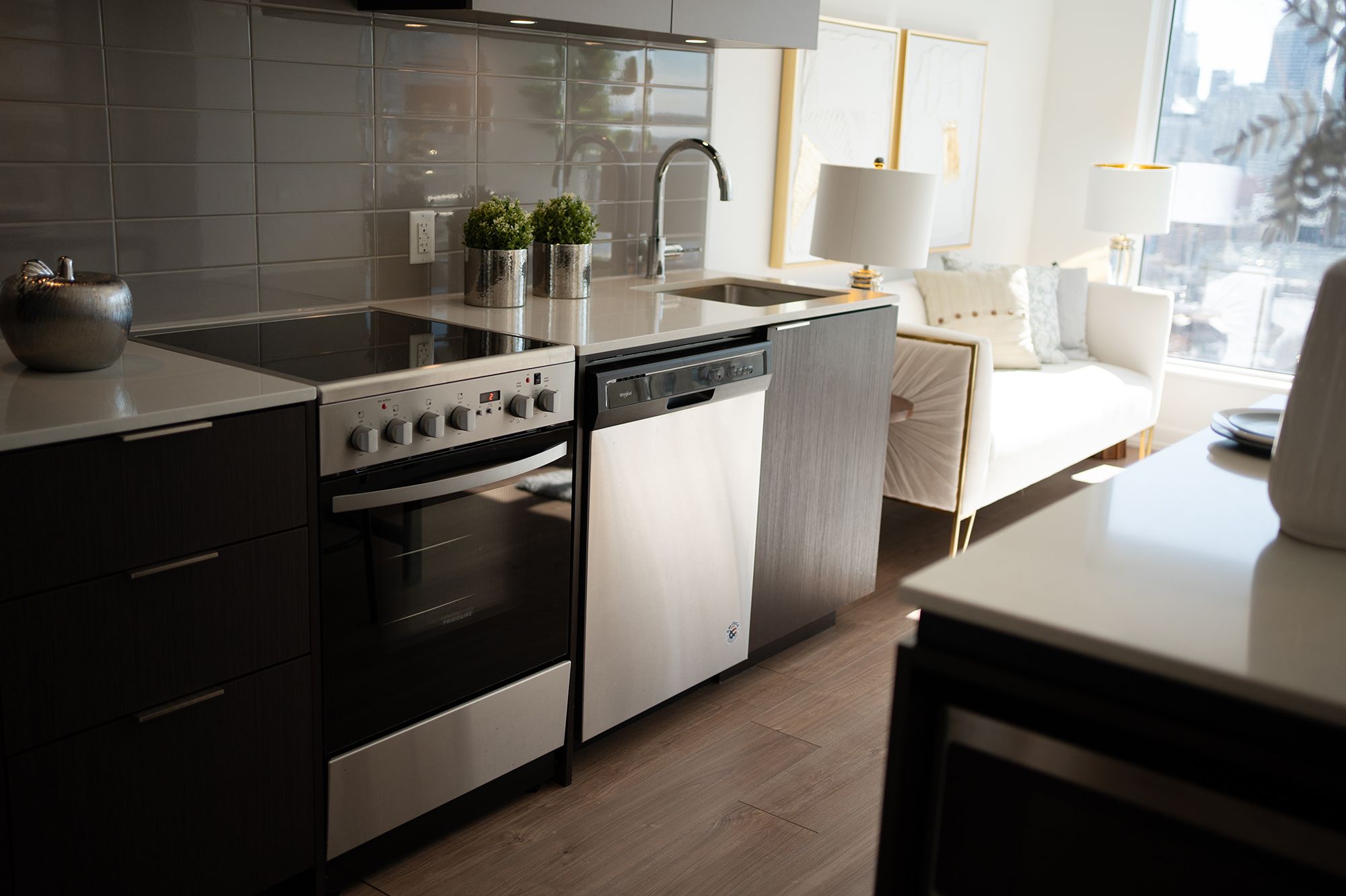 • Modern kitchen with built-in appliances and functional island.