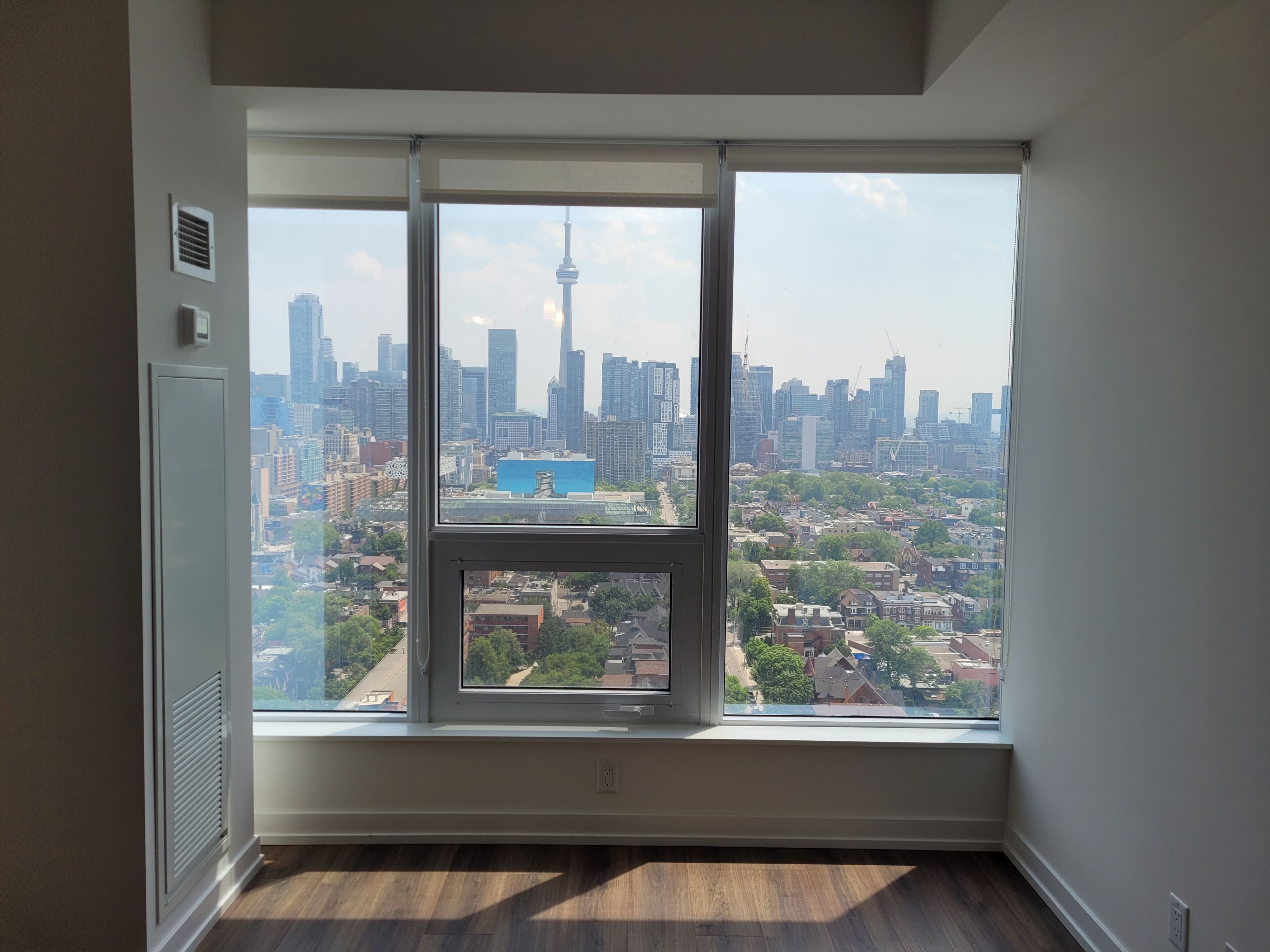 U of t at door steps. 2 washrooms. Den w/ sliding door can be used as 2nd bedroom. Partially furnished. High floor with south facing: unobstructed fantastic city & lake view, cn tower. Laminate floor through out. Modern kitchen w/ s/s appliances & central island. Walking distance to shopping, restaurants, and public transit. S/s fridge, s/s stove, b/i hood fan, b/i dishwasher, s/s microwave, washer & dryer, window coverings.