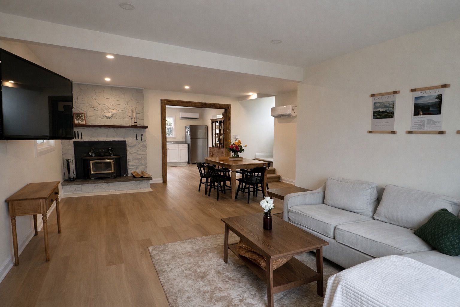 • Cozy wood burning fireplace ideal for family gatherings and relaxation.