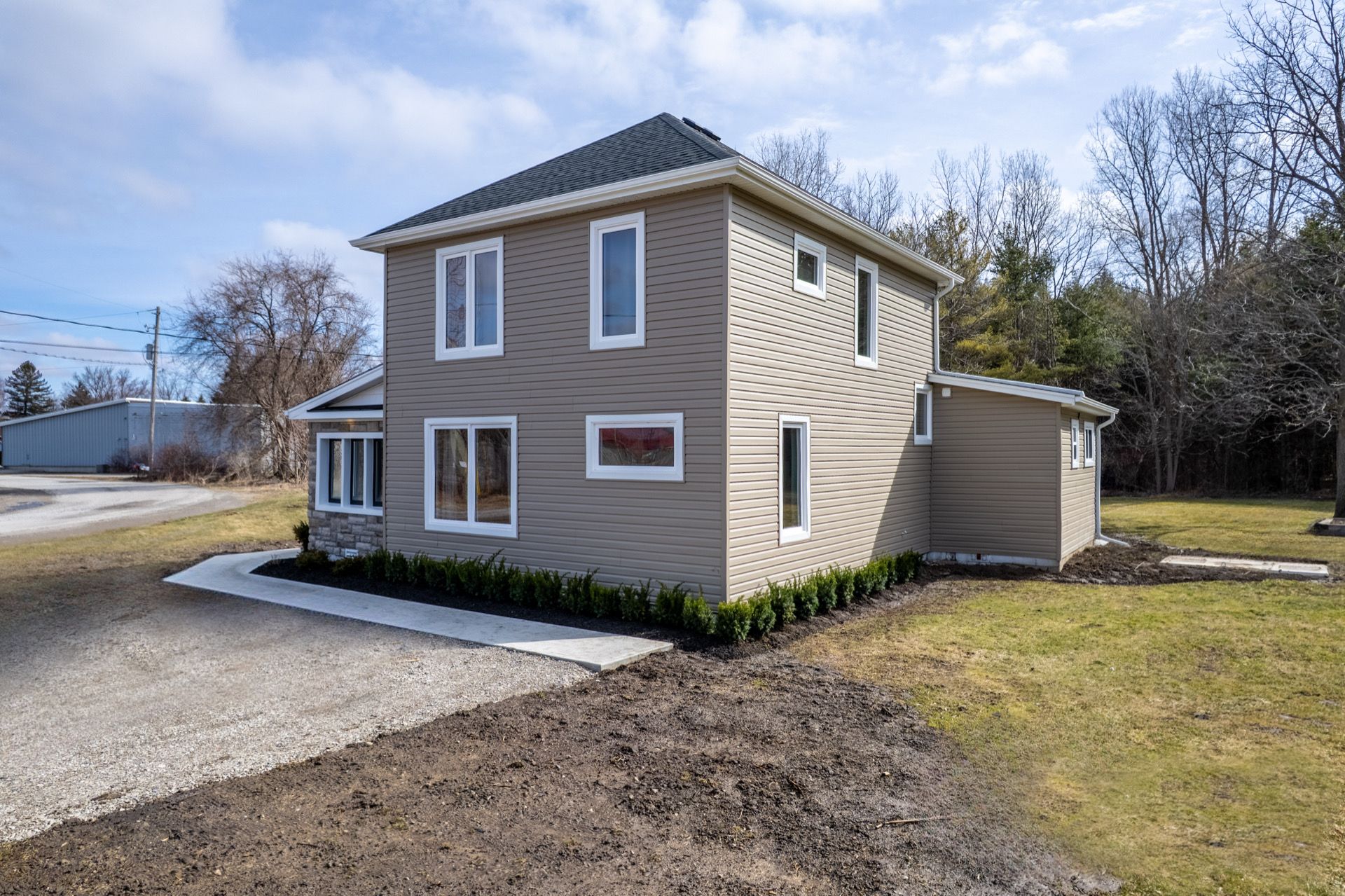 Beautifully renovated home on 5. 6 private acres. Located minutes to dunnville's shops, restaurants and amenities you can enjoy peaceful rural living without sacrificing convenience. This charming 3 bed, 2 bath home offers a bright spacious interior with loads of updates - shingles replaced nov 2024, vinyl replacement windows april 2024, sft nov 2025, carpet may 2024, interior doors and trim may 2024, siding dec 2025, 3 exterior doors april 2024. Modern kitchen, separate dining area, wood burning fireplace insert that creates a warm and inviting space, plus large open living space is made for cozy days or large family gatherings. Bonus main floor office / den / flex space - perfect for a home based business, multi generational living or a growing family. This property also features and barn with loft, hydro and poured concrete floor and quonset hut, hydro and concrete floor for additional storage or hobby space plus enough parking to accommodate all your toys!