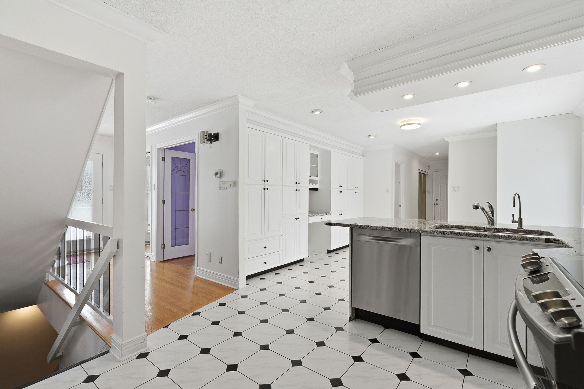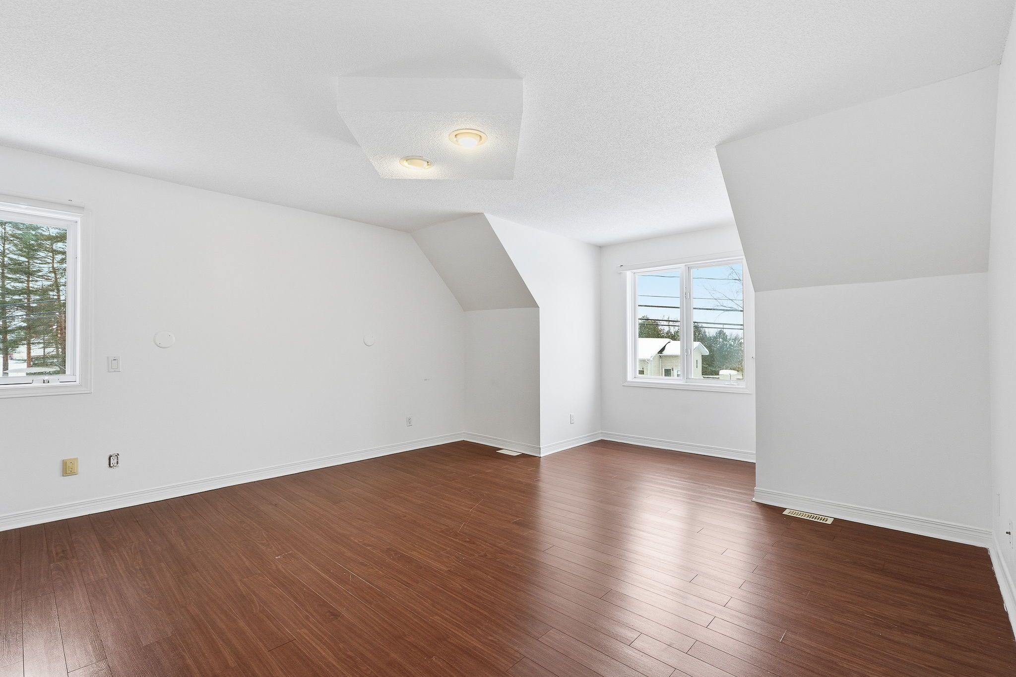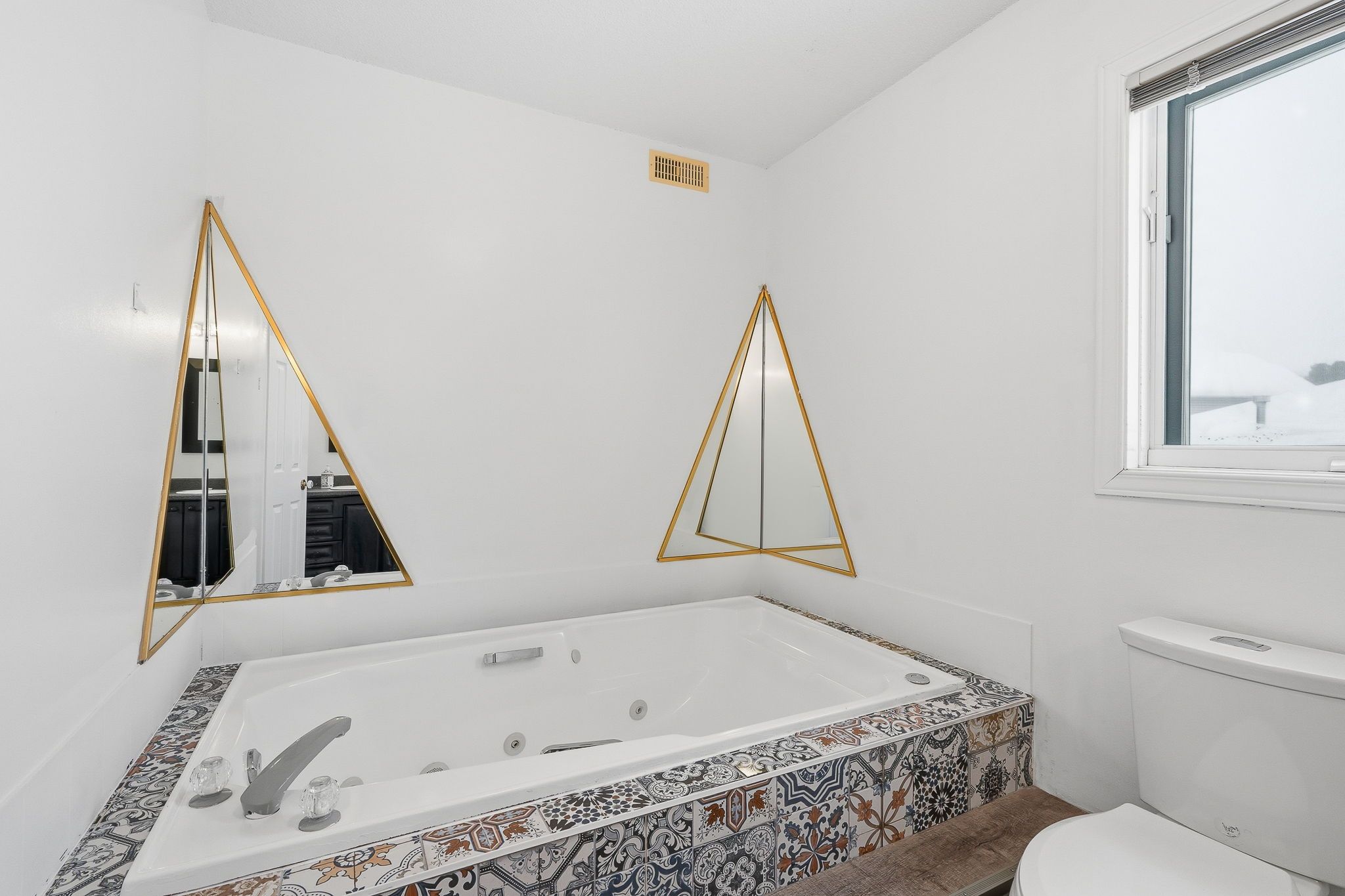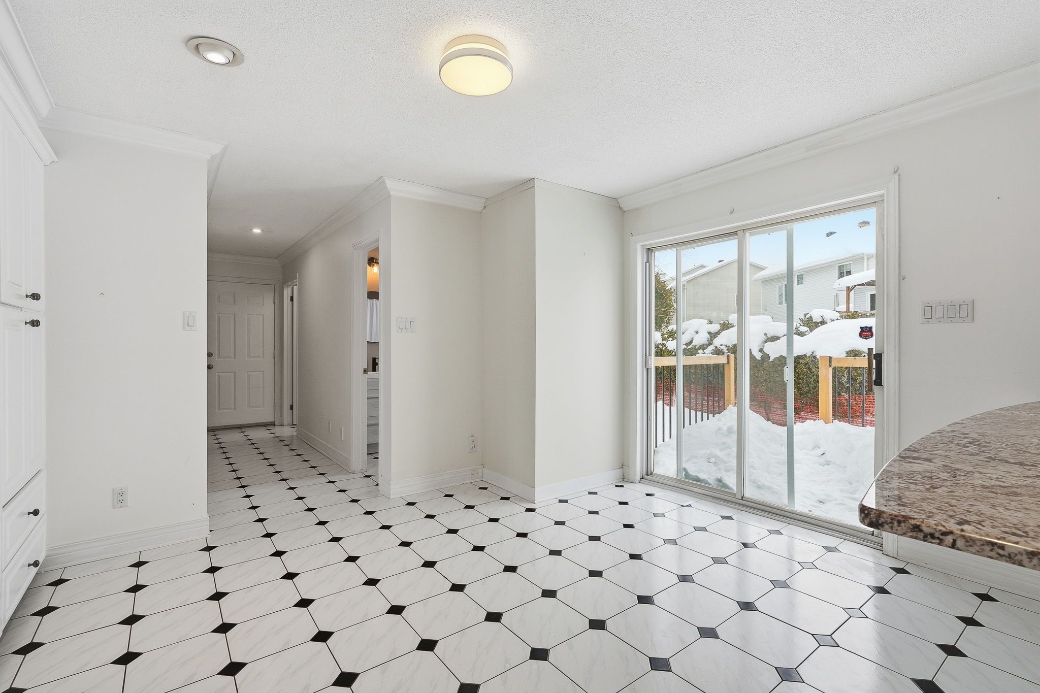 • Bright interior with a sunken living room for architectural charm.