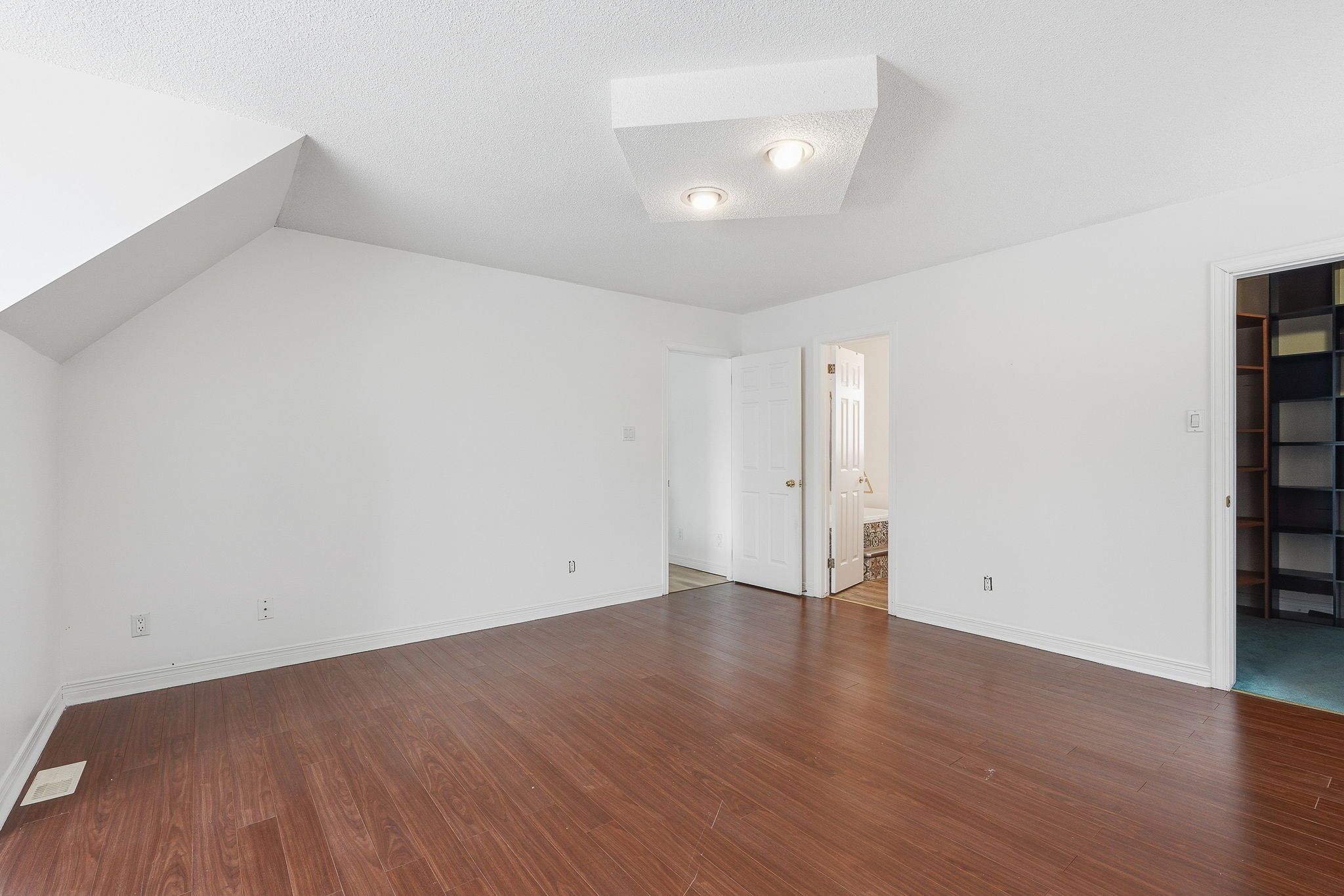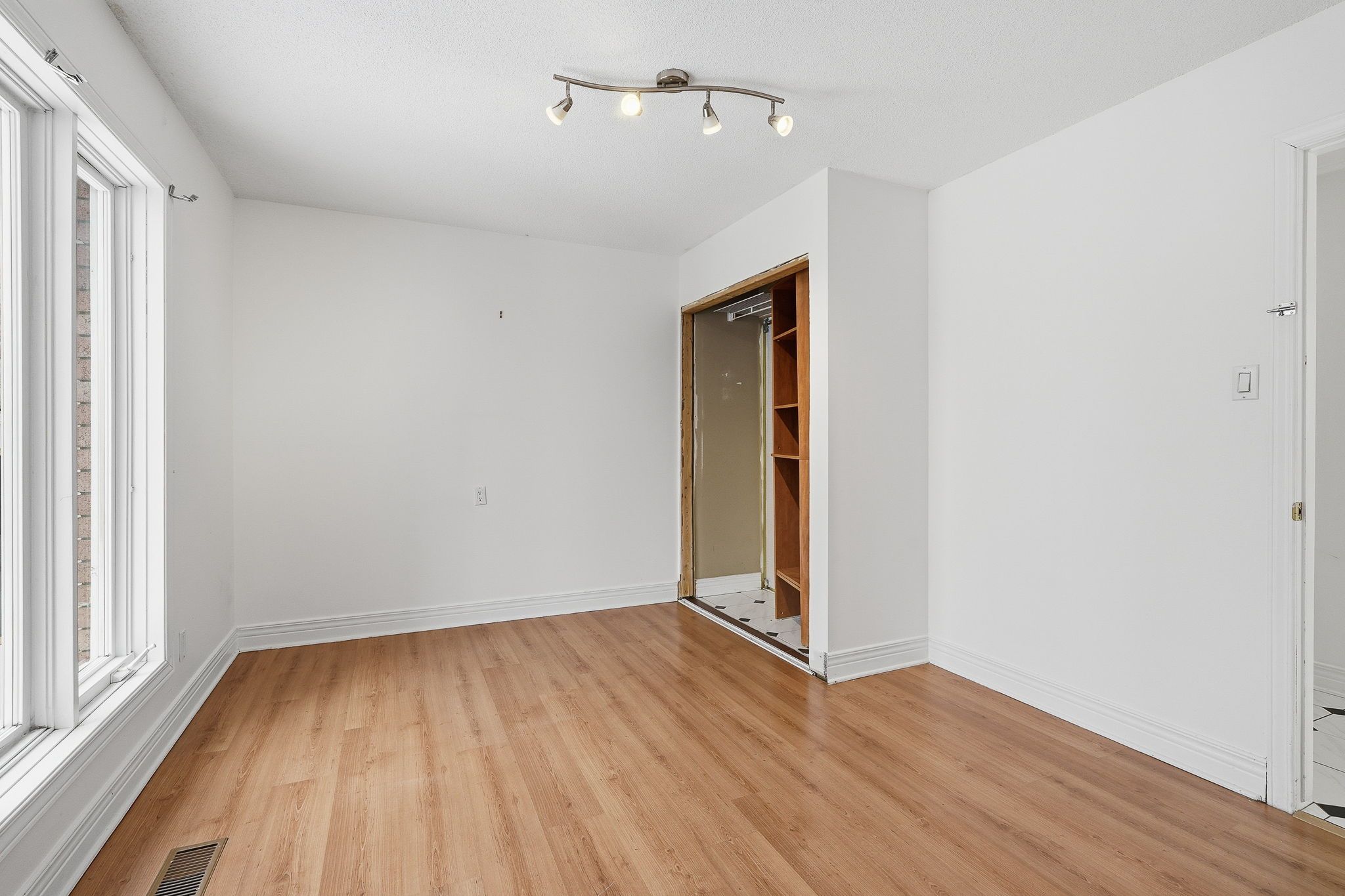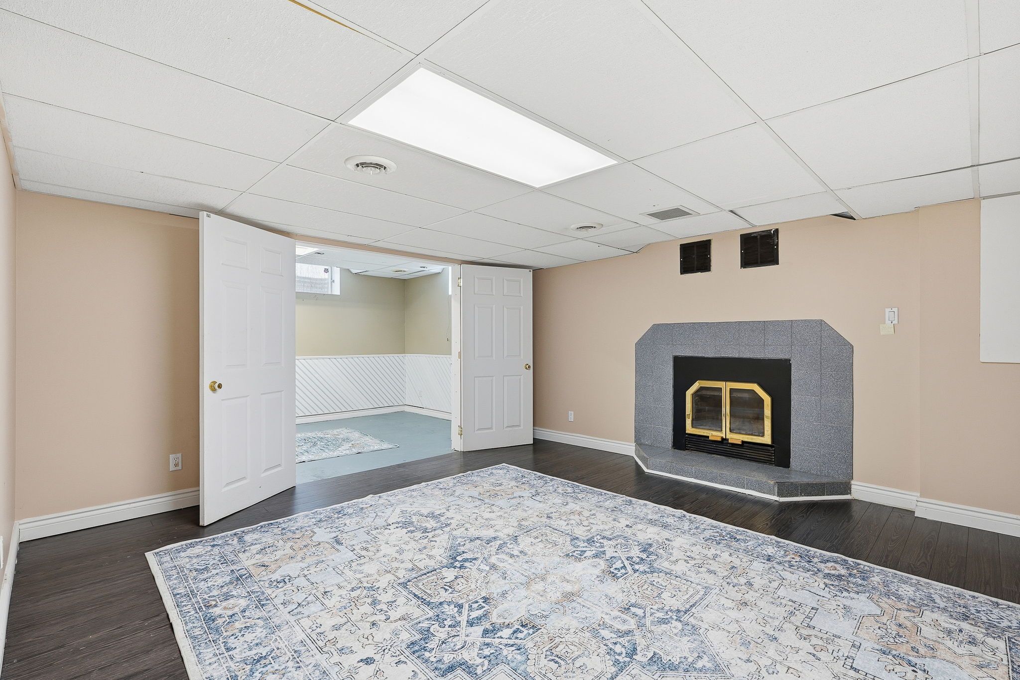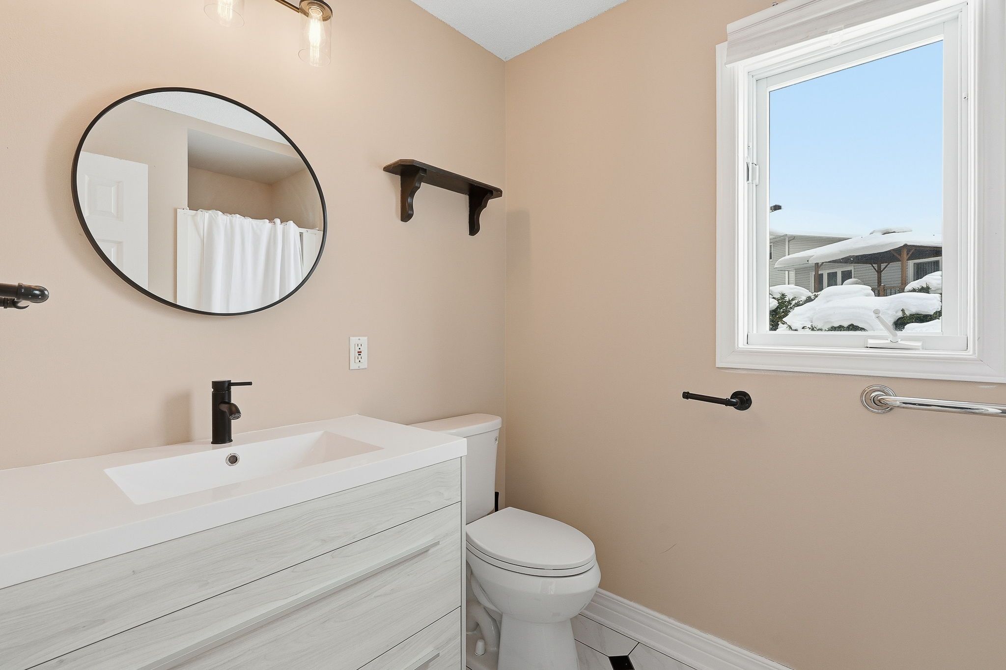• Bright interior with a sunken living room for architectural charm.