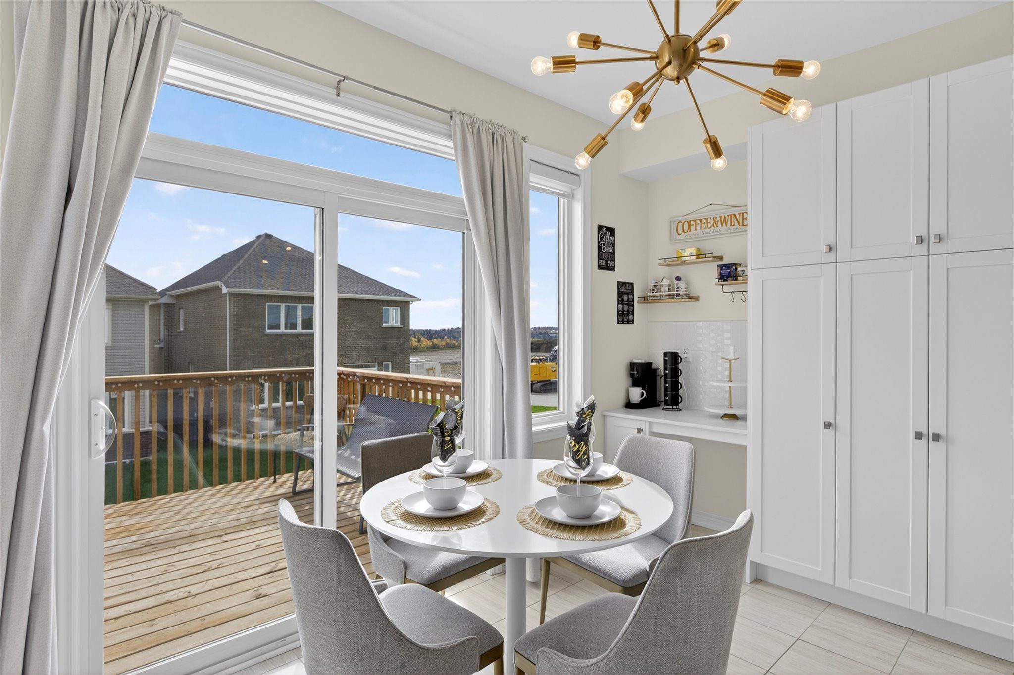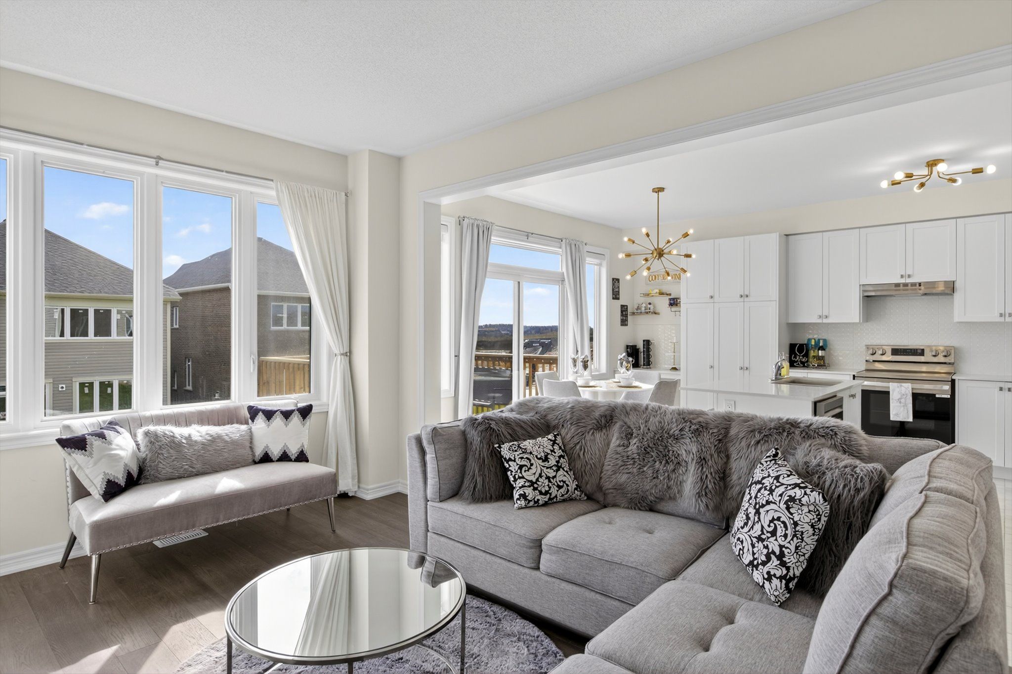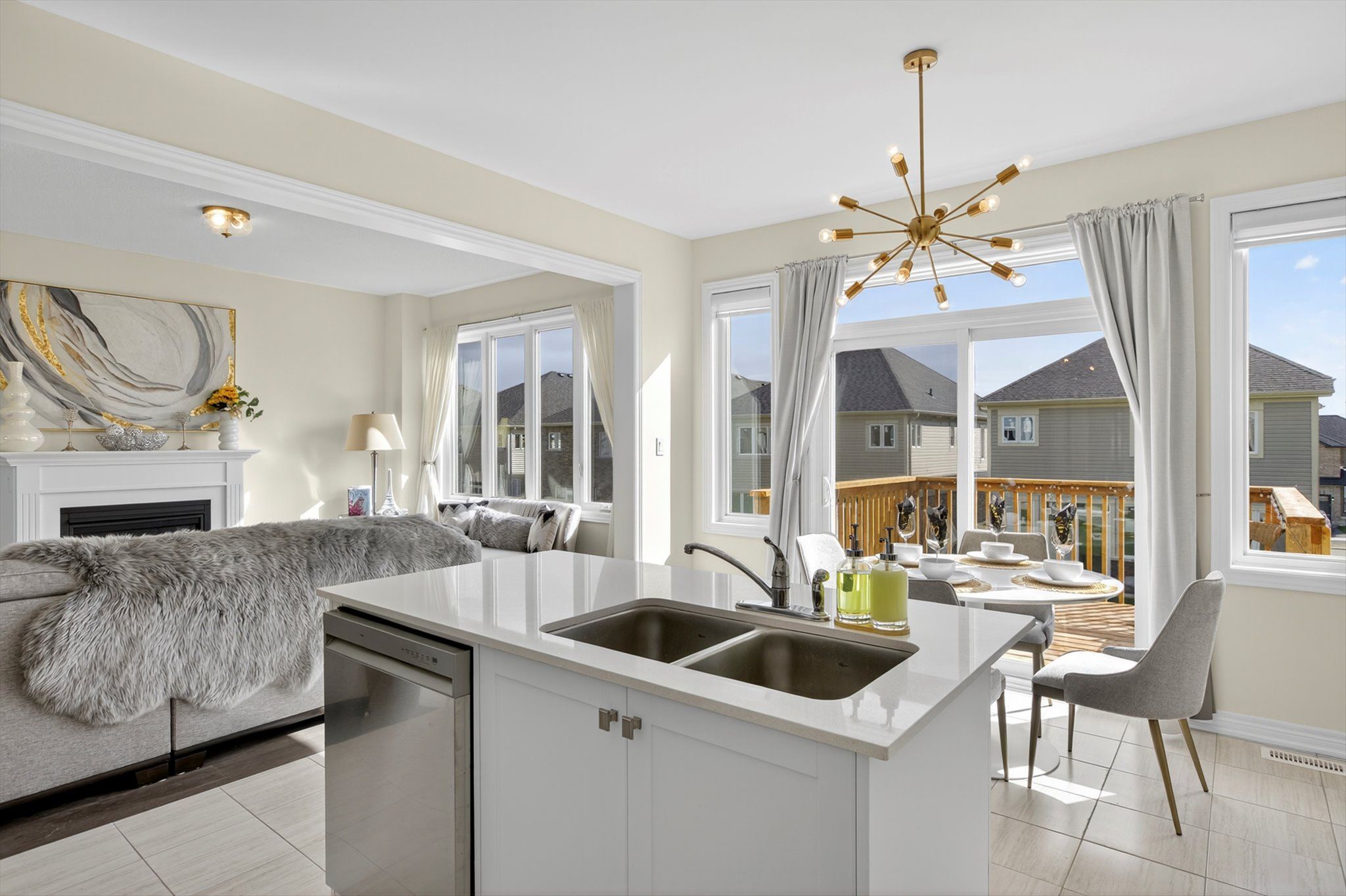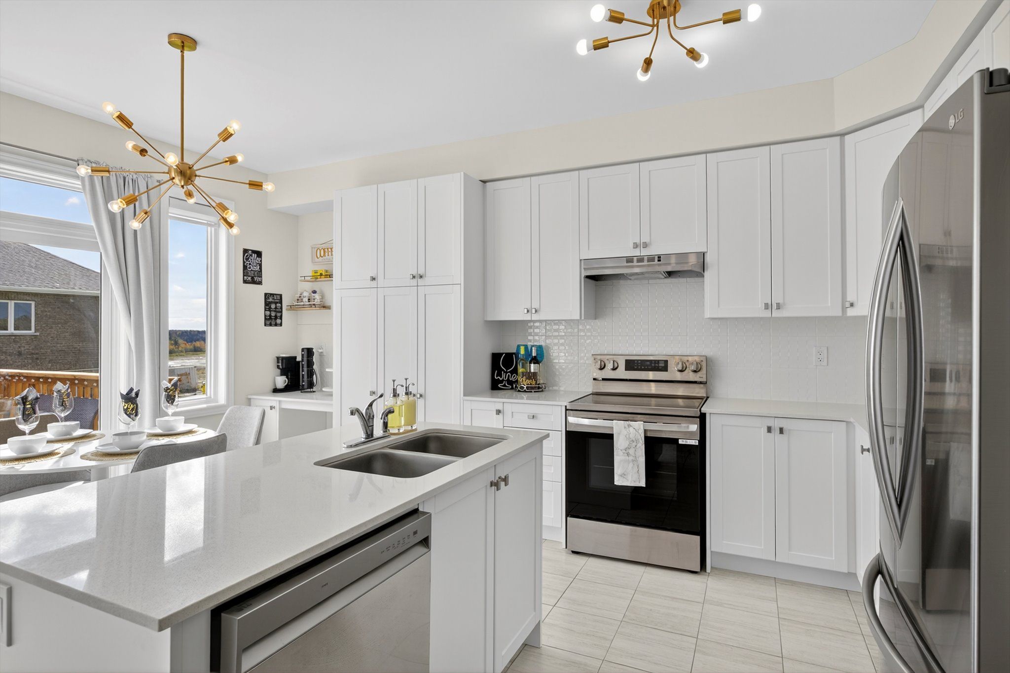 Welcome to 203 o'neil street - the warrington model built in 2024, this stunning 4-bedroom, 4-bathroom home offers 2,490 sq. Ft. Of thoughtfully designed living space. Step inside to discover 9-foot coffered ceilings on the main floor that create a spacious and elegant atmosphere. Main floor offers a spacious main floor family room with gas fireplace. Large bright eat-in kitchen with lots of cupboards and quartz countertops. Fully equipped with brand new stainless appliances. All builder grade lighting has been upgraded with more modern and stylish options. Other main floor features include: a formal dining room, 2nd main floor living space, 2pc bath, spacious foyer and direct access from your double attached garage. This layout is perfect for family living and entertaining. Upgraded solid wood staircase leads to upstairs. The primary bedroom serves as a serene retreat featuring a large 4-piece ensuite and a walk-in closet. The second bedroom also includes its own 4-piece ensuite, ideal for guests or family members seeking added privacy. The third and fourth bedroom share the 3rd - 4 piece bathroom. 2nd floor laundry provides a necessary convenience. Enjoy outdoor living on the 10' x 10' deck overlooking your backyard, or take advantage of the unfinished walk-out basement, offering endless possibilities for future customization. The private double-wide driveway will be paved soon, adding to the home's curb appeal and convenience. Situated in a desirable neighborhood, this property is close to shopping, parks, and scenic trails. Offering the perfect balance of comfort and lifestyle. Don't miss your chance to own this beautiful modern home - book your showing today!