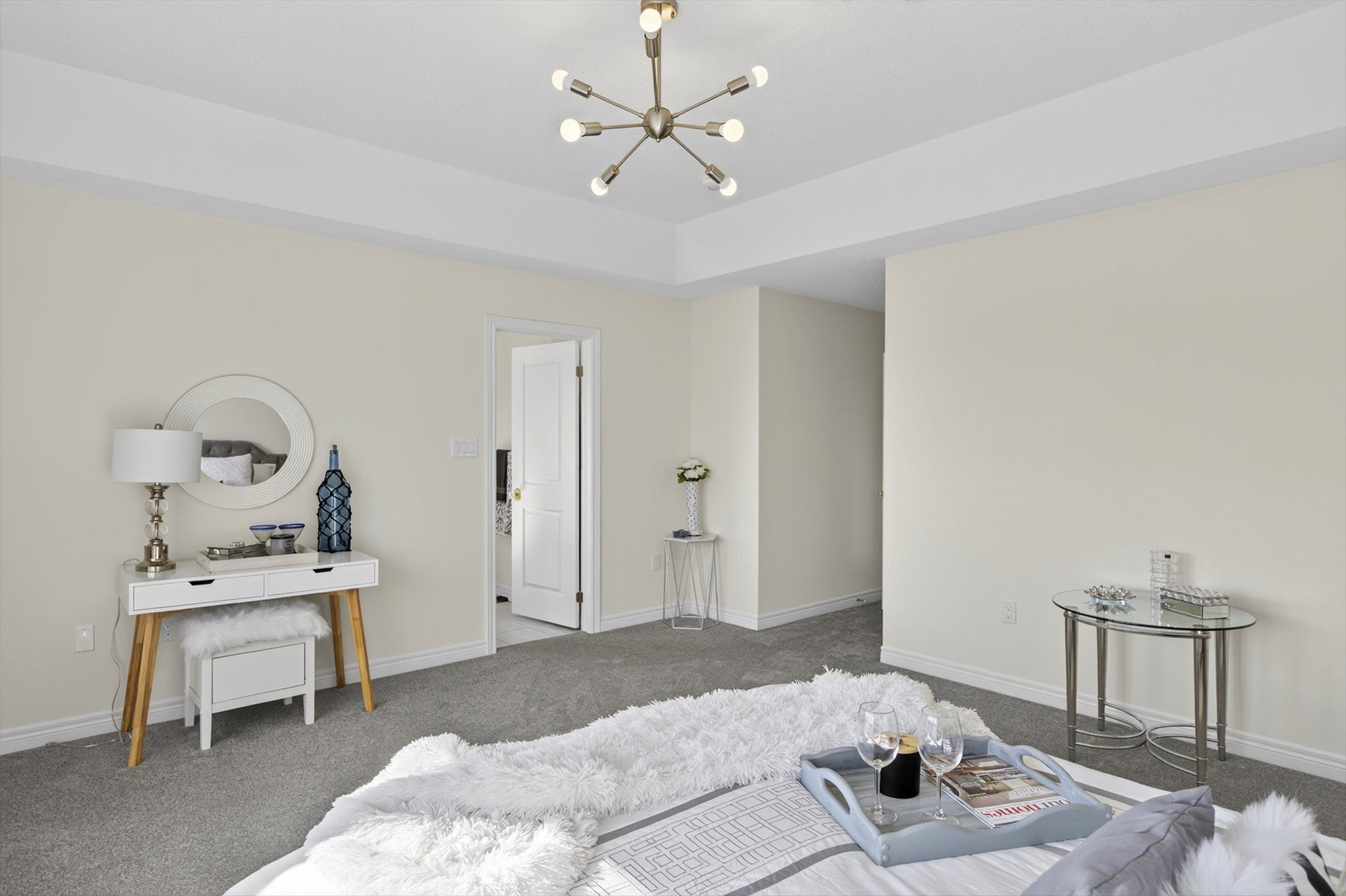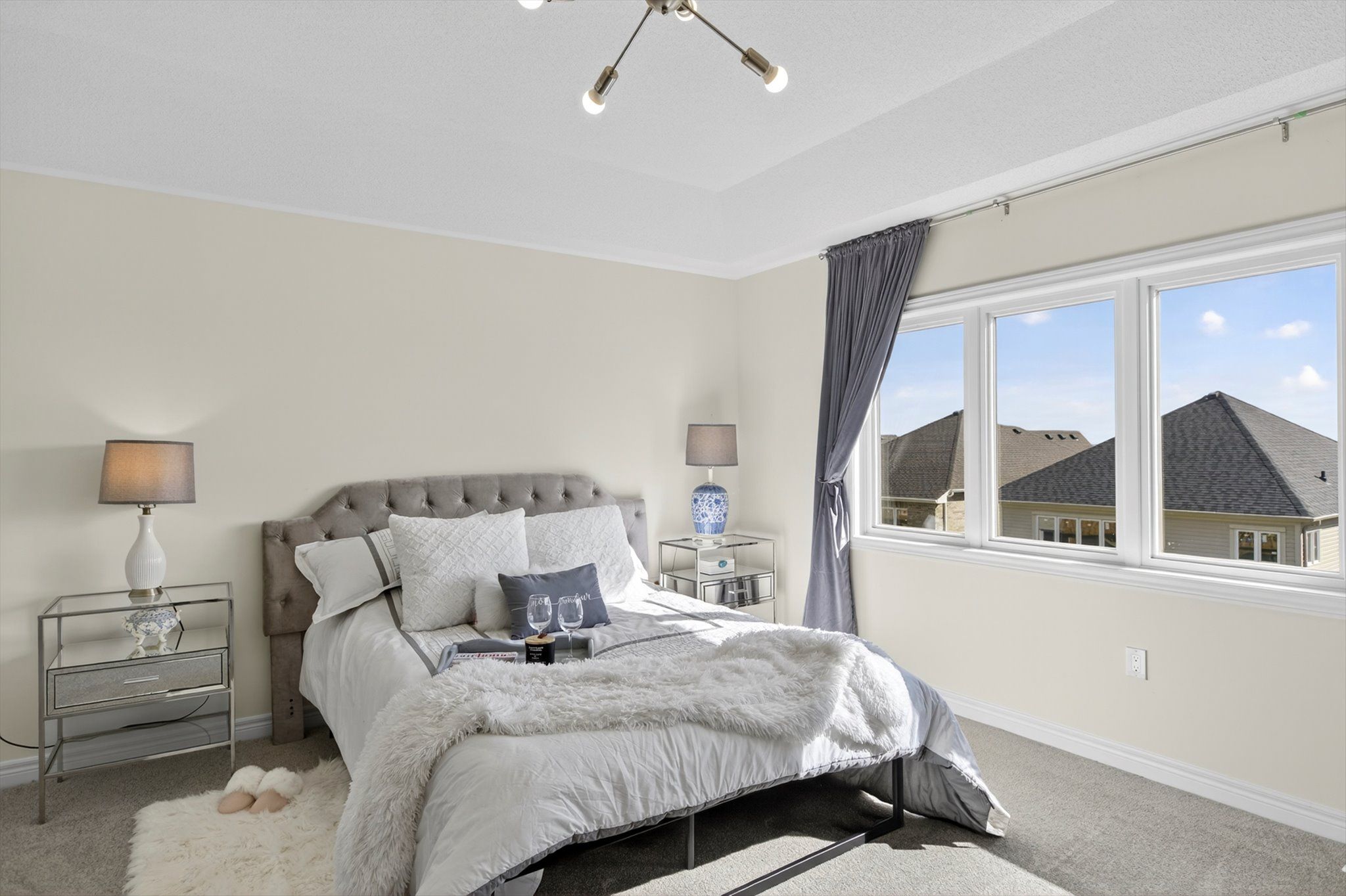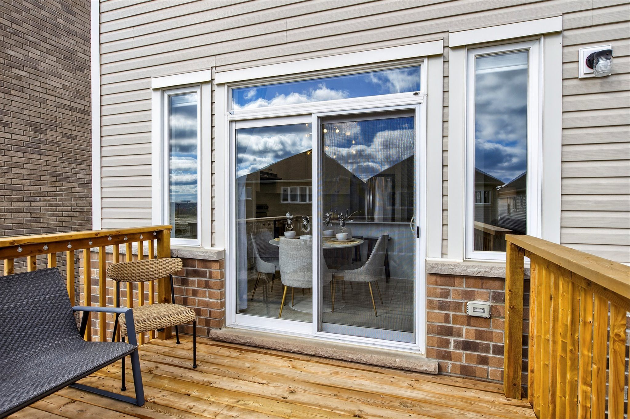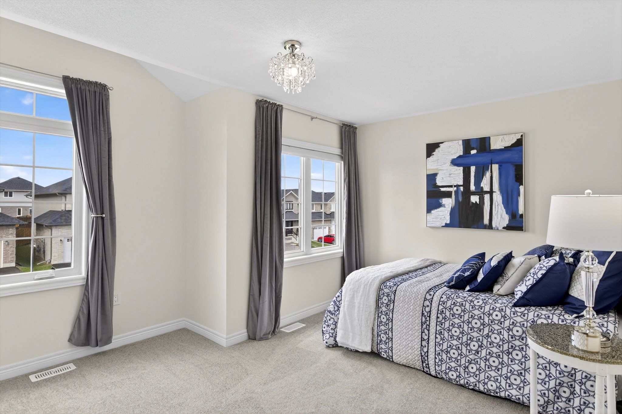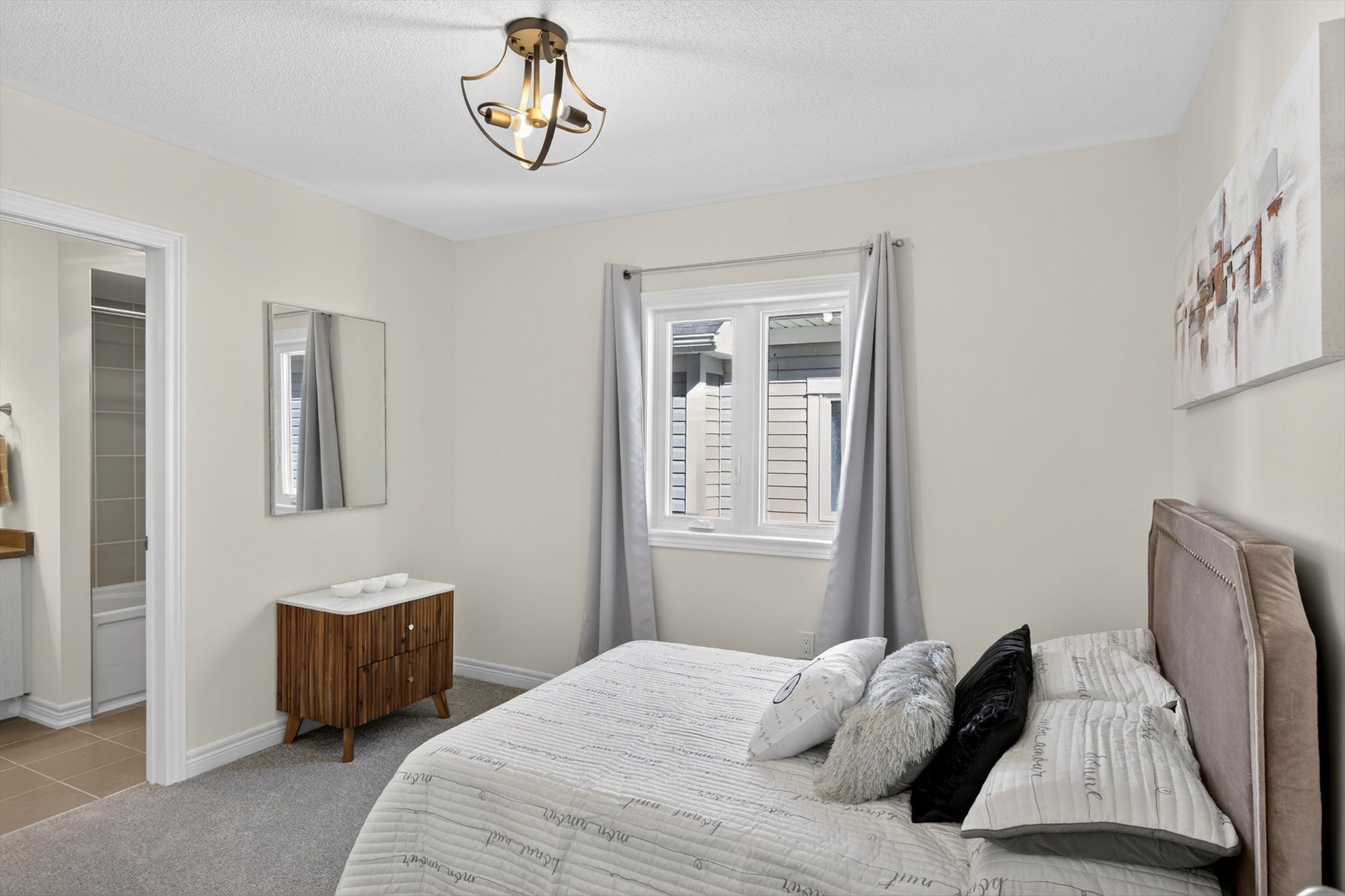 Welcome to 203 o'neil street - the warrington model built in 2024, this stunning 4-bedroom, 4-bathroom home offers 2,490 sq. Ft. Of thoughtfully designed living space. Step inside to discover 9-foot coffered ceilings on the main floor that create a spacious and elegant atmosphere. Main floor offers a spacious main floor family room with gas fireplace. Large bright eat-in kitchen with lots of cupboards and quartz countertops. Fully equipped with brand new stainless appliances. All builder grade lighting has been upgraded with more modern and stylish options. Other main floor features include: a formal dining room, 2nd main floor living space, 2pc bath, spacious foyer and direct access from your double attached garage. This layout is perfect for family living and entertaining. Upgraded solid wood staircase leads to upstairs. The primary bedroom serves as a serene retreat featuring a large 4-piece ensuite and a walk-in closet. The second bedroom also includes its own 4-piece ensuite, ideal for guests or family members seeking added privacy. The third and fourth bedroom share the 3rd - 4 piece bathroom. 2nd floor laundry provides a necessary convenience. Enjoy outdoor living on the 10' x 10' deck overlooking your backyard, or take advantage of the unfinished walk-out basement, offering endless possibilities for future customization. The private double-wide driveway will be paved soon, adding to the home's curb appeal and convenience. Situated in a desirable neighborhood, this property is close to shopping, parks, and scenic trails. Offering the perfect balance of comfort and lifestyle. Don't miss your chance to own this beautiful modern home - book your showing today!