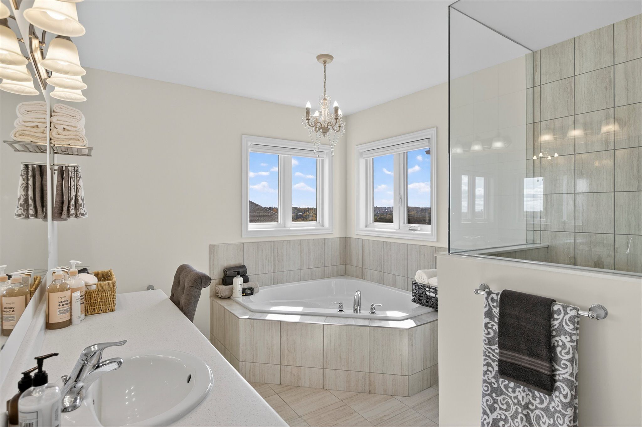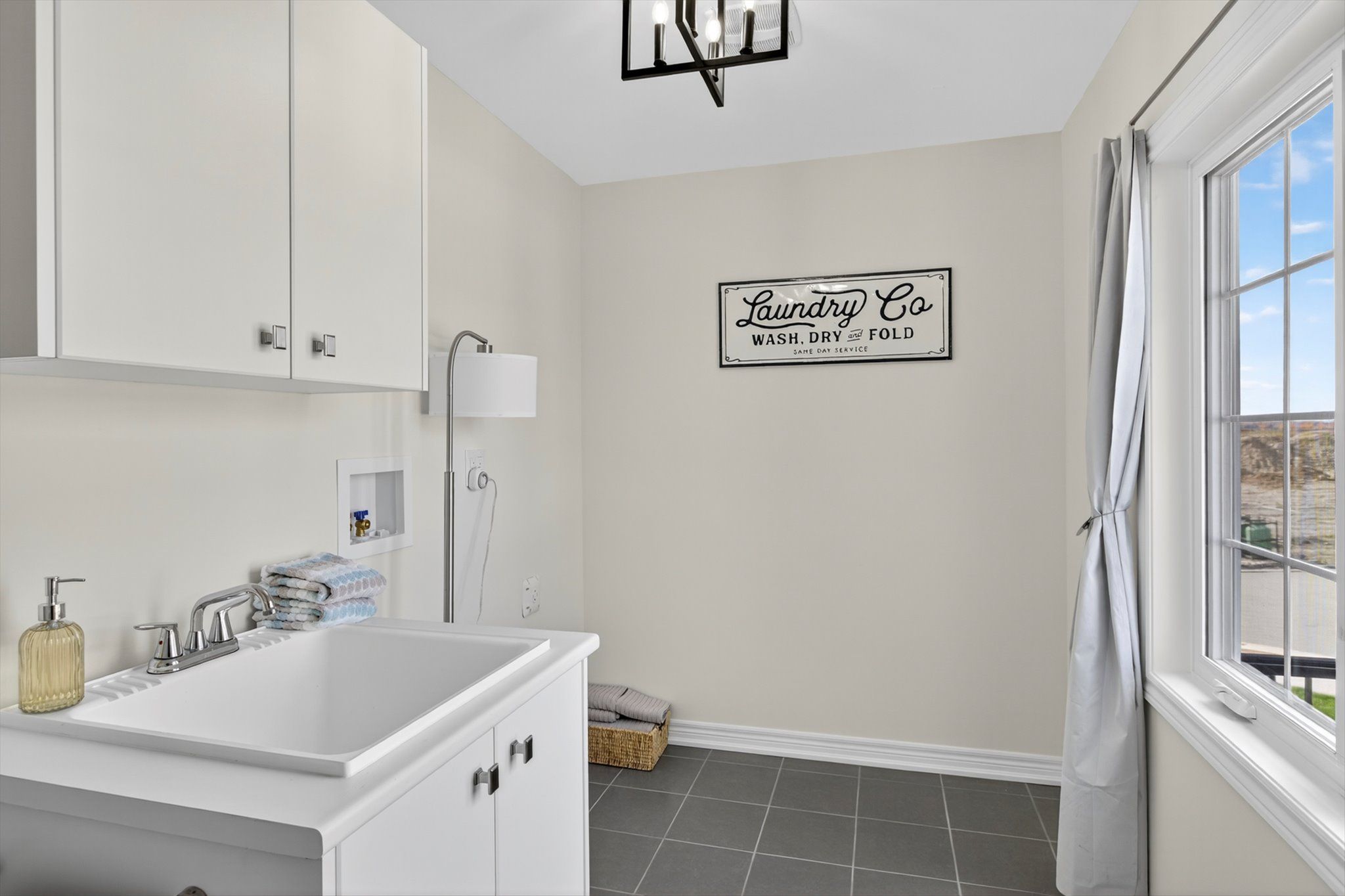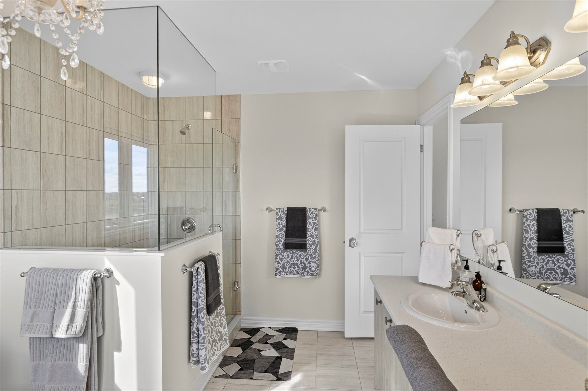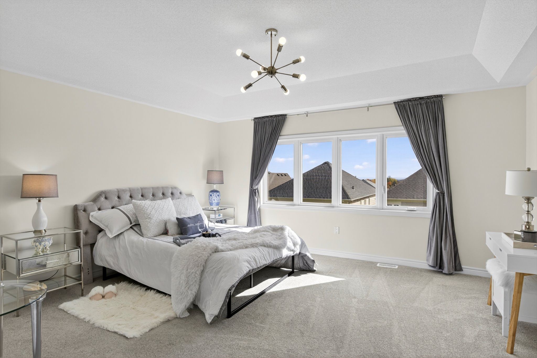 Welcome to 203 o'neil street - the warrington model built in 2024, this stunning 4-bedroom, 4-bathroom home offers 2,490 sq. Ft. Of thoughtfully designed living space. Step inside to discover 9-foot coffered ceilings on the main floor that create a spacious and elegant atmosphere. Main floor offers a spacious main floor family room with gas fireplace. Large bright eat-in kitchen with lots of cupboards and quartz countertops. Fully equipped with brand new stainless appliances. All builder grade lighting has been upgraded with more modern and stylish options. Other main floor features include: a formal dining room, 2nd main floor living space, 2pc bath, spacious foyer and direct access from your double attached garage. This layout is perfect for family living and entertaining. Upgraded solid wood staircase leads to upstairs. The primary bedroom serves as a serene retreat featuring a large 4-piece ensuite and a walk-in closet. The second bedroom also includes its own 4-piece ensuite, ideal for guests or family members seeking added privacy. The third and fourth bedroom share the 3rd - 4 piece bathroom. 2nd floor laundry provides a necessary convenience. Enjoy outdoor living on the 10' x 10' deck overlooking your backyard, or take advantage of the unfinished walk-out basement, offering endless possibilities for future customization. The private double-wide driveway will be paved soon, adding to the home's curb appeal and convenience. Situated in a desirable neighborhood, this property is close to shopping, parks, and scenic trails. Offering the perfect balance of comfort and lifestyle. Don't miss your chance to own this beautiful modern home - book your showing today!